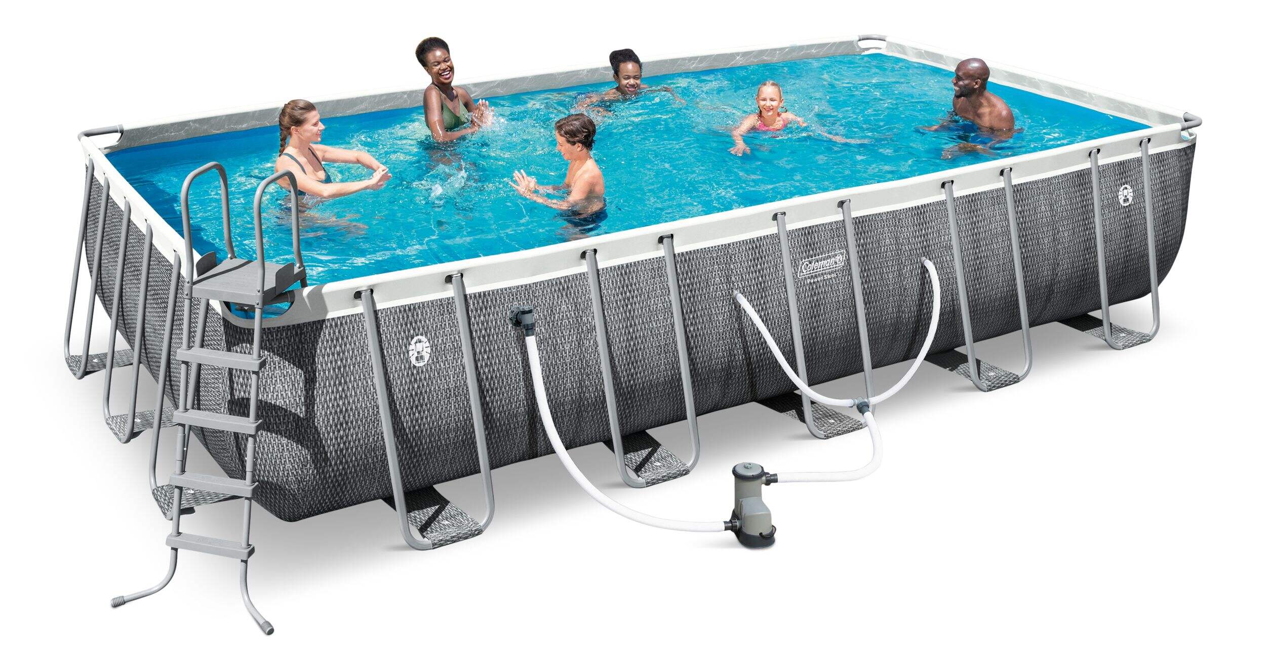 Enjoy endless summer fun with the Coleman® Rectangular Steel Frame Swimming Pool, a reliable and easy-to-assemble above-ground pool that accommodates the whole family. This pool is designed for durability and stability, season after season. The pool comes complete with all necessary accessories so you can start enjoying your pool right away. This pool provides ample space for cooling off, splashing, and relaxing.