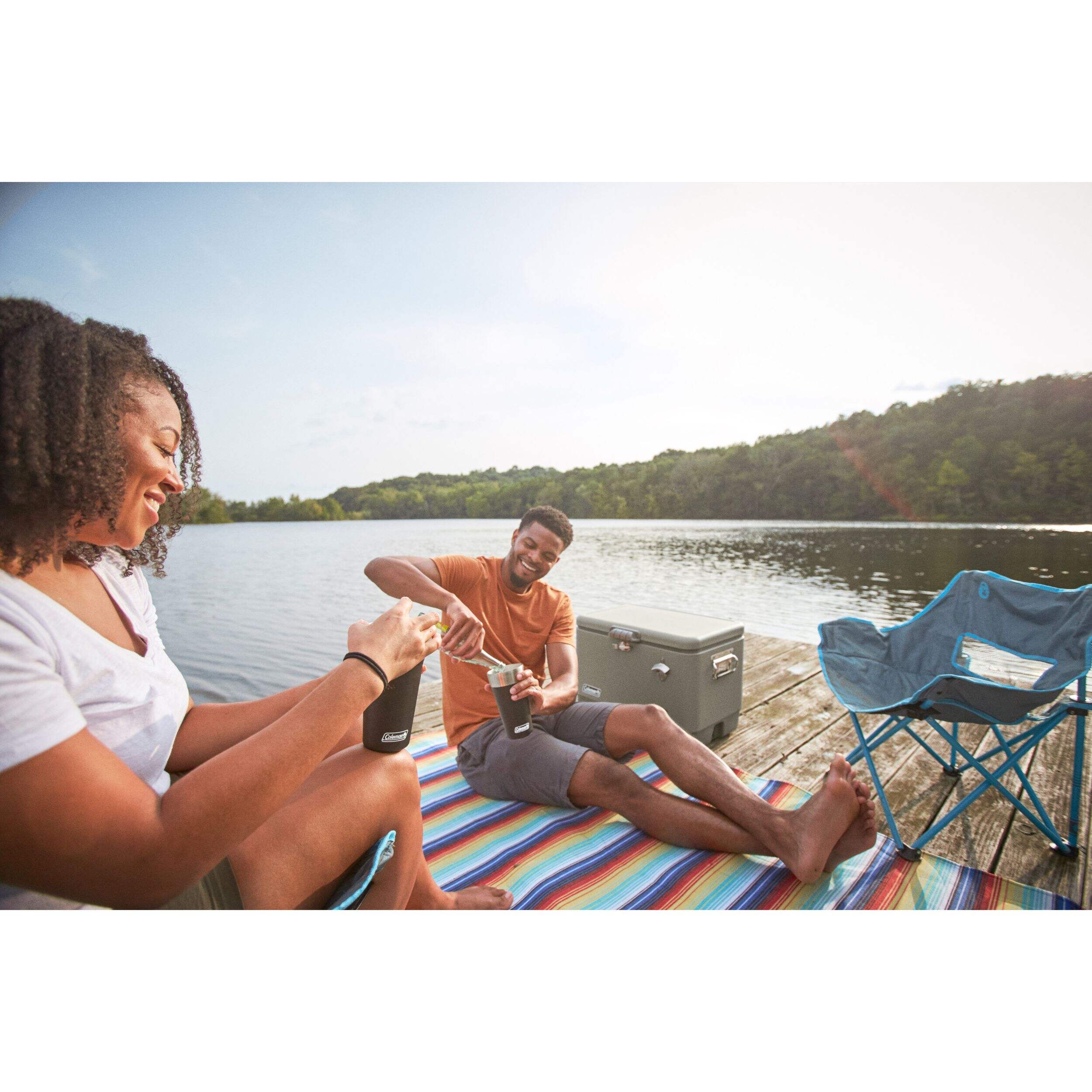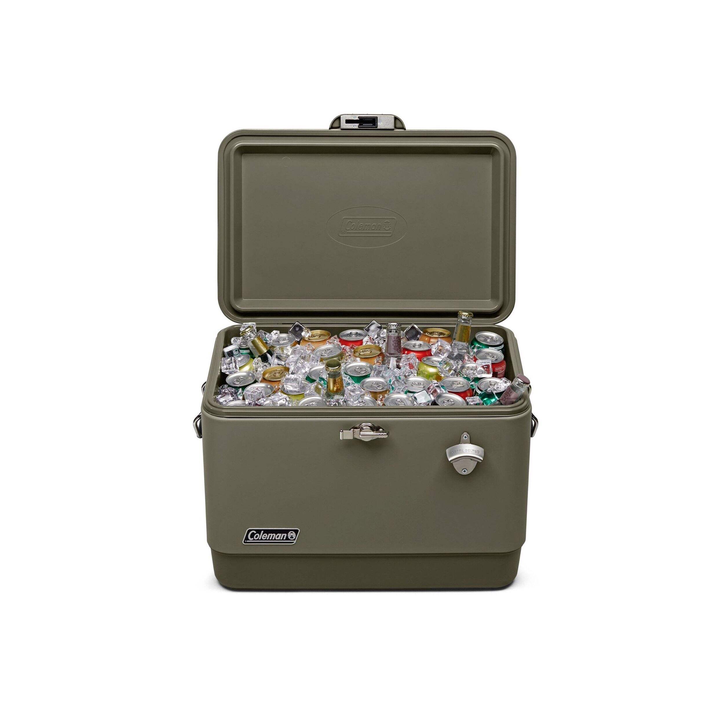 How do you reimagine an icon that’s been in the family since 1954? Meet the Coleman Reunion 54-Quart Steel Belted Cooler, which has everything you love plus modern twists like a cool matte finish and an always-there, built-in bottle opener. Comfort-grip handles make it easier to carry out to the backyard tailgate, kids’ birthday party in the park, or family beach day. Extra guests show up? The Have-A-Seat lid can be used as an additional seat that supports up to 250 lbs. The built-in stainless steel bottle opener lets you pop open a cold drink at the tailgate with one hand while grabbing snacks with the other. Large enough to hold up to 85 cans, there’s plenty of drinks to go around and the cooler Keeps the Ice for up to 4 days in temperatures as high as 32°C (90°F). When the fun is winding down, the rustproof and leak-resistant channel drain offers no-tilt draining for easy cleanup.