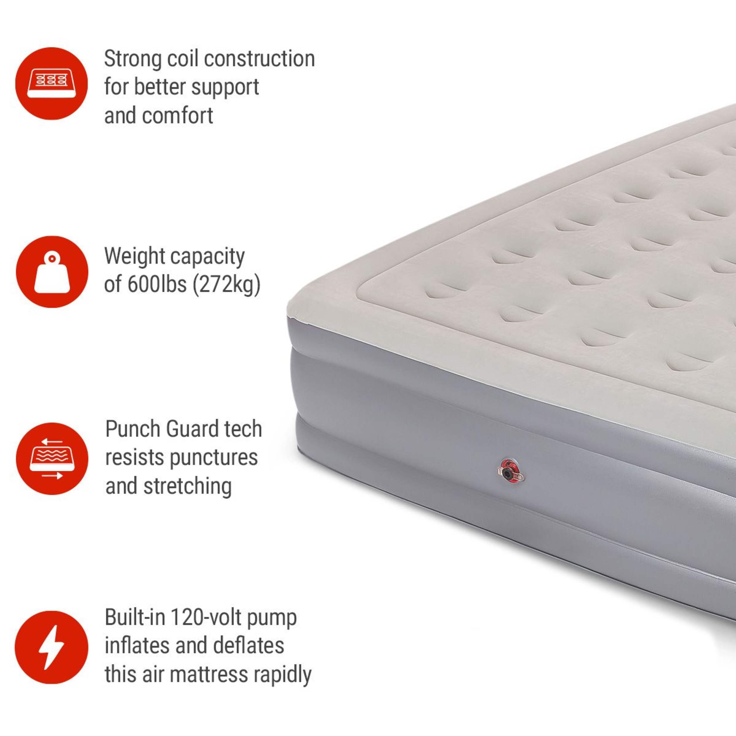 Included handheld electric pump inflates the bed in 3 minutes