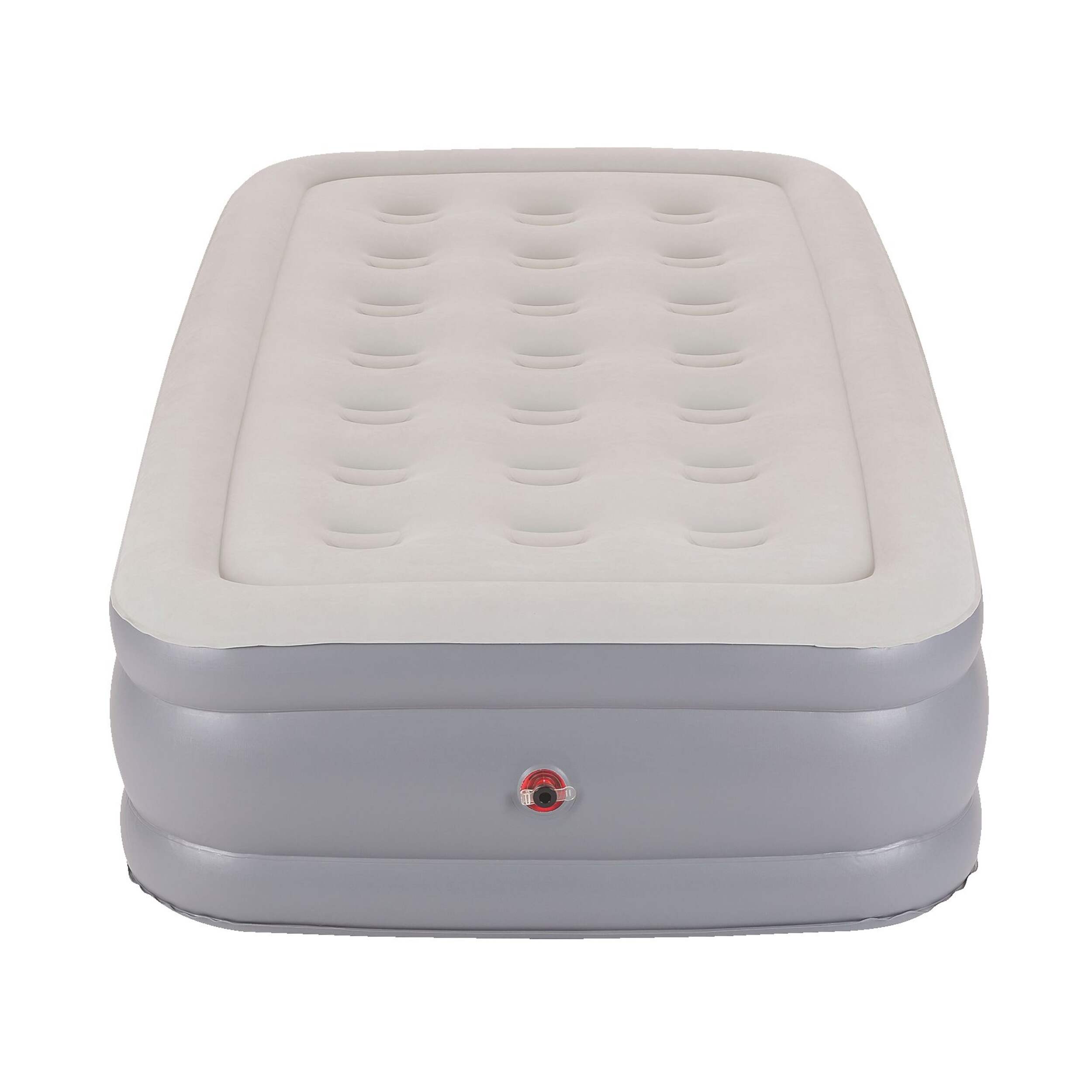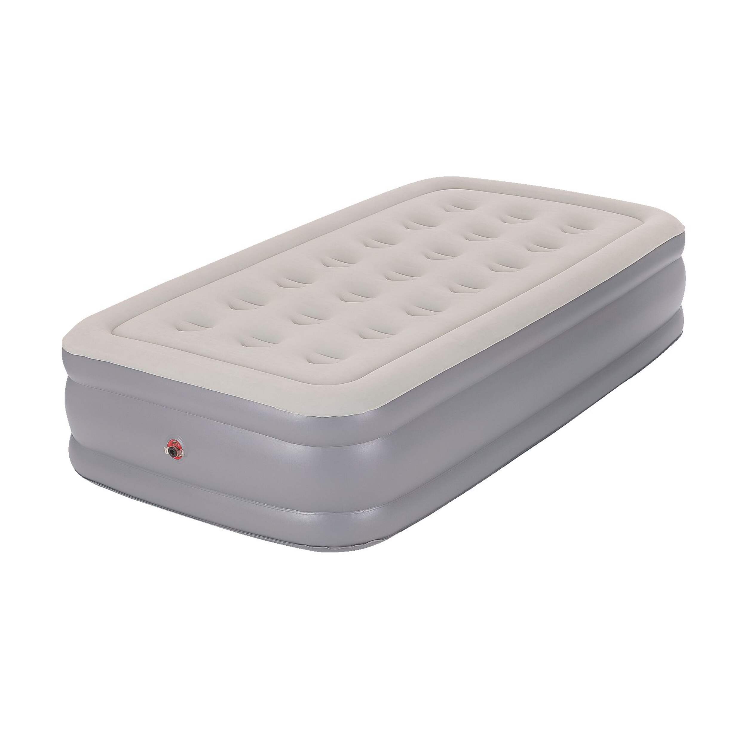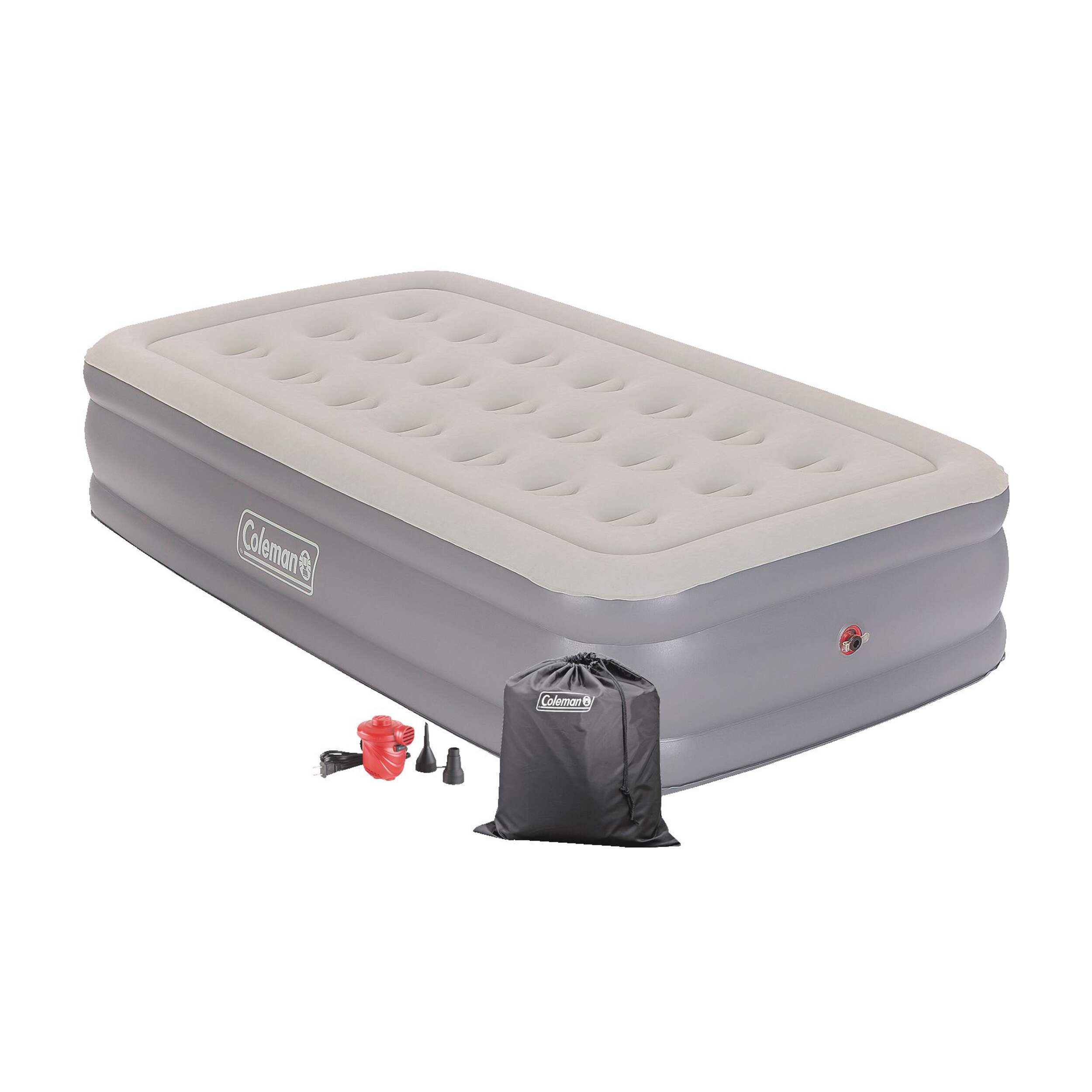 Get a good night’s rest on the Coleman Twin Double-High Inflatable Air Mattress. This air mattress inflates quickly and easily with the included 120V Coleman air bed pump to provide an extra-comfortable sleep surface with a durable finish that resists punctures. Handy for campouts, sleepovers and surprise overnight guests, this convenient air mattress includes a carry bag for easy transport and storage.