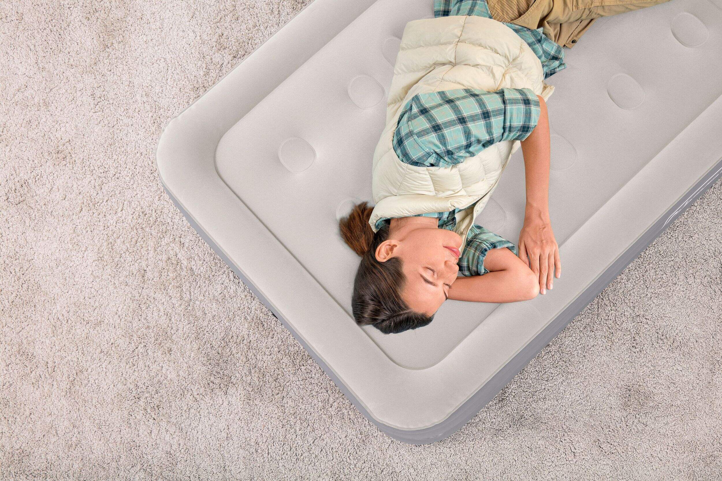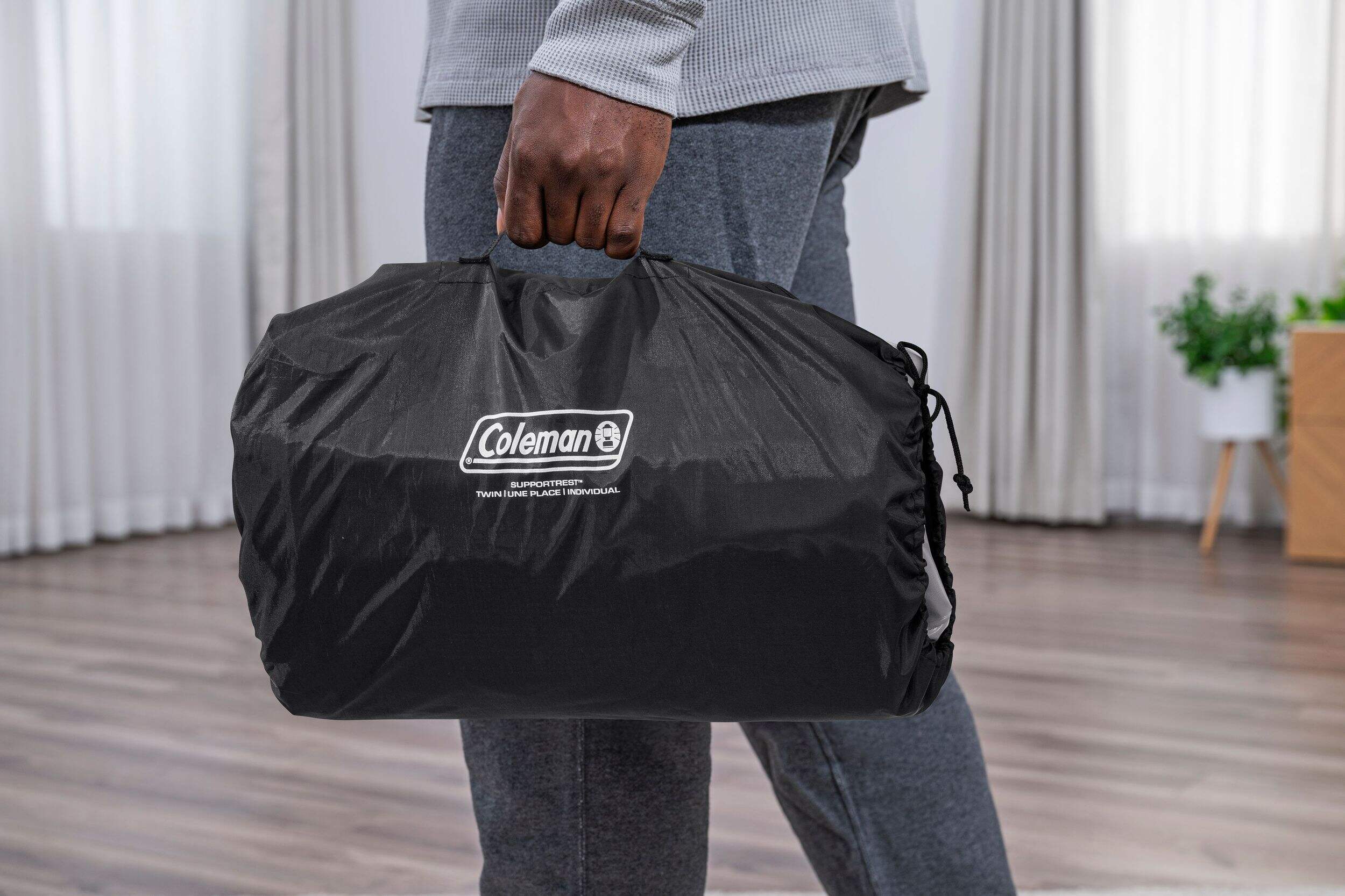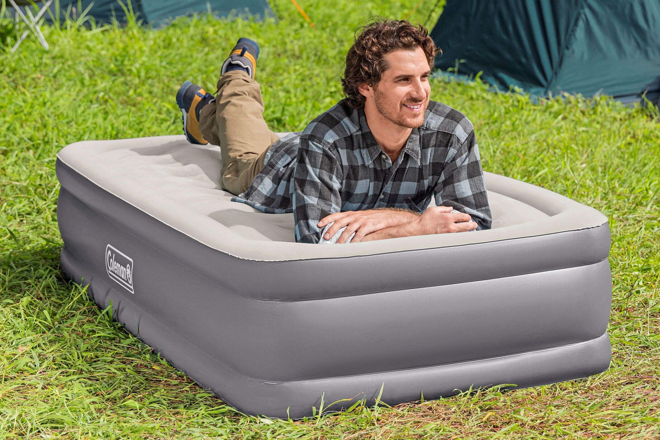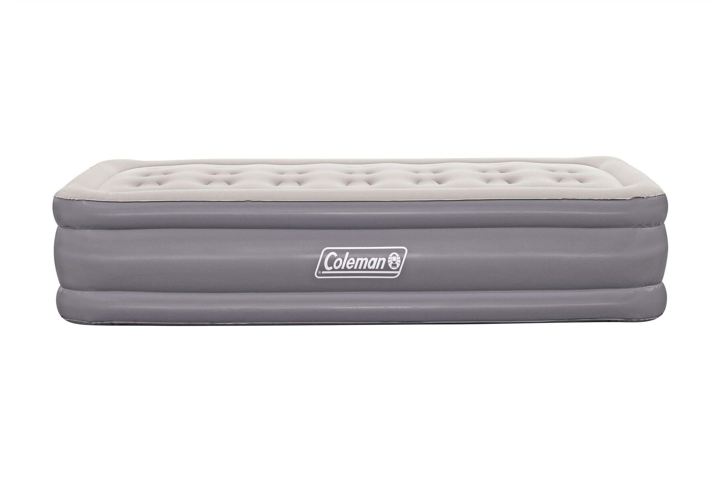Get a good night’s rest on the Coleman Twin Double-High Inflatable Air Mattress. This air mattress inflates quickly and easily with the included 120V Coleman air bed pump to provide an extra-comfortable sleep surface with a durable finish that resists punctures. Handy for campouts, sleepovers and surprise overnight guests, this convenient air mattress includes a carry bag for easy transport and storage.