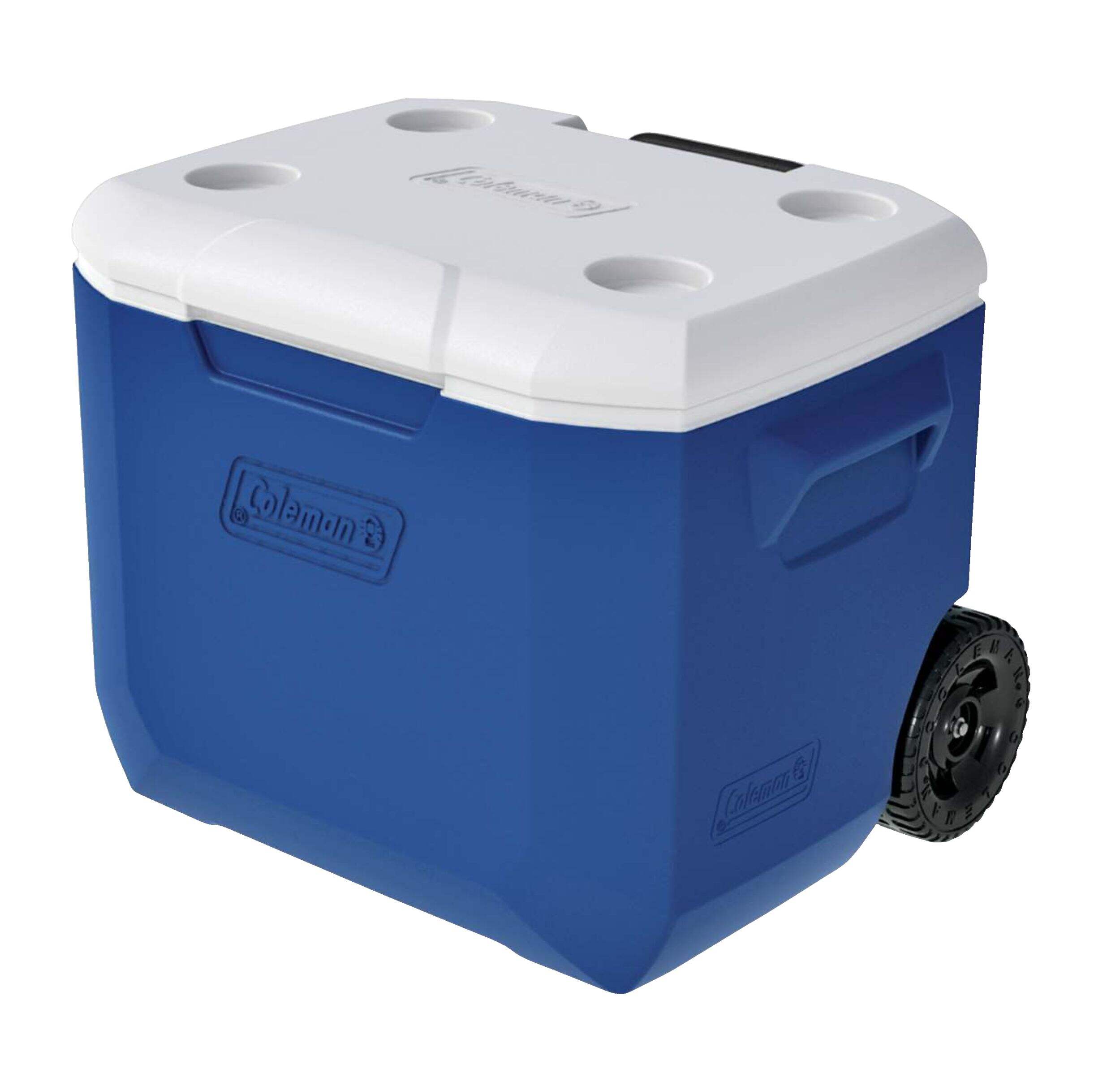 Coleman Wheeled Cooler is a heavy-duty cooler with wheels and a telescopic handle for easy handling