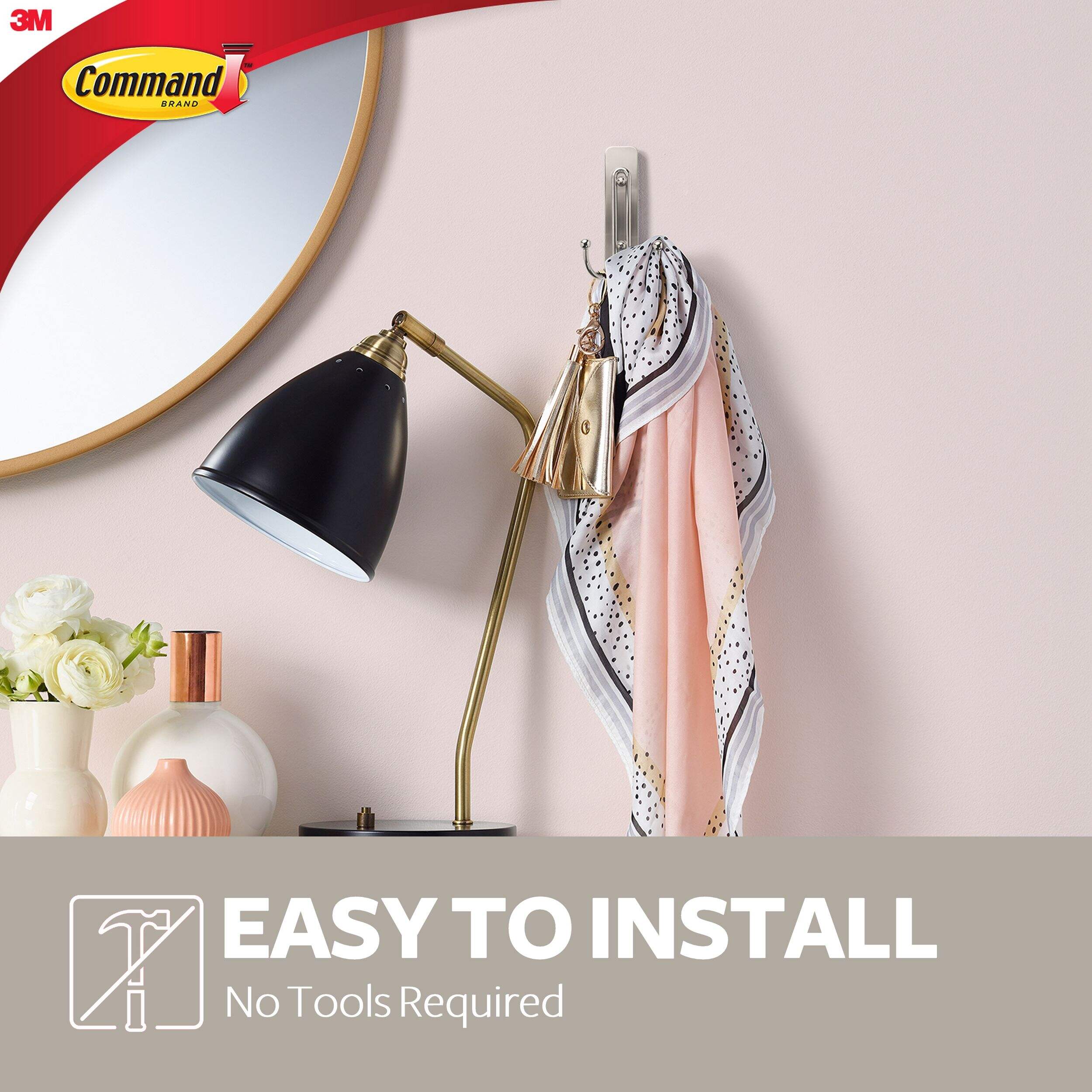 Command® Double Hooks hold strongly on a variety of surfaces, including paint, wood, tile and more. When you are ready to remove your Command™ Hook, it comes off cleanly without damaging surfaces with holes, marks, sticky residue or stains.