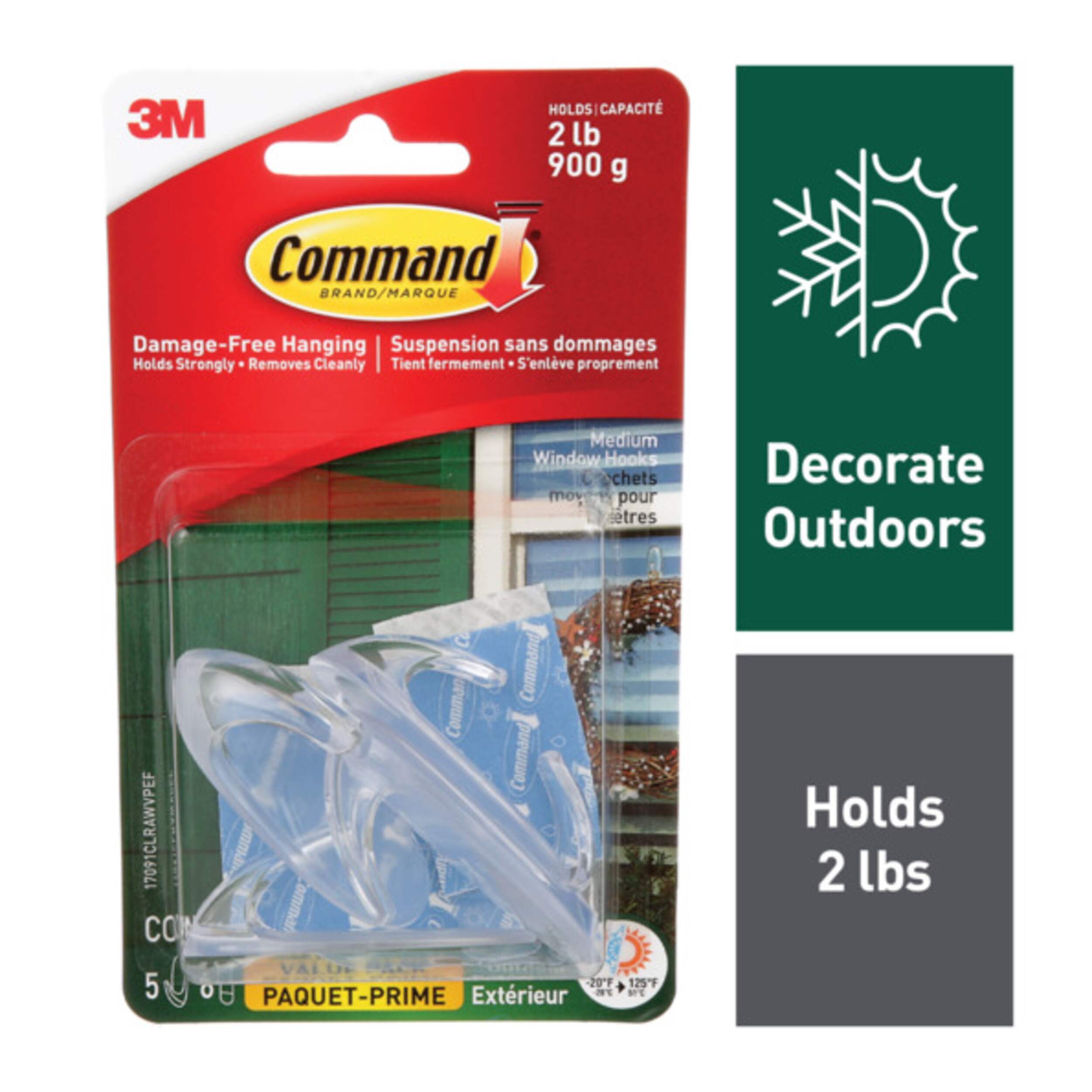 Command™ Outdoor Window Hooks give you the freedom to decorate the outside of your home for every season, holiday or event. They are perfect for hanging signs, artwork, or other decorations on a variety of smooth outdoor surfaces, such as doors, siding, or trim. Command™ Hooks are easy to apply and remove, without damaging surfaces with holes or sticky residue.
