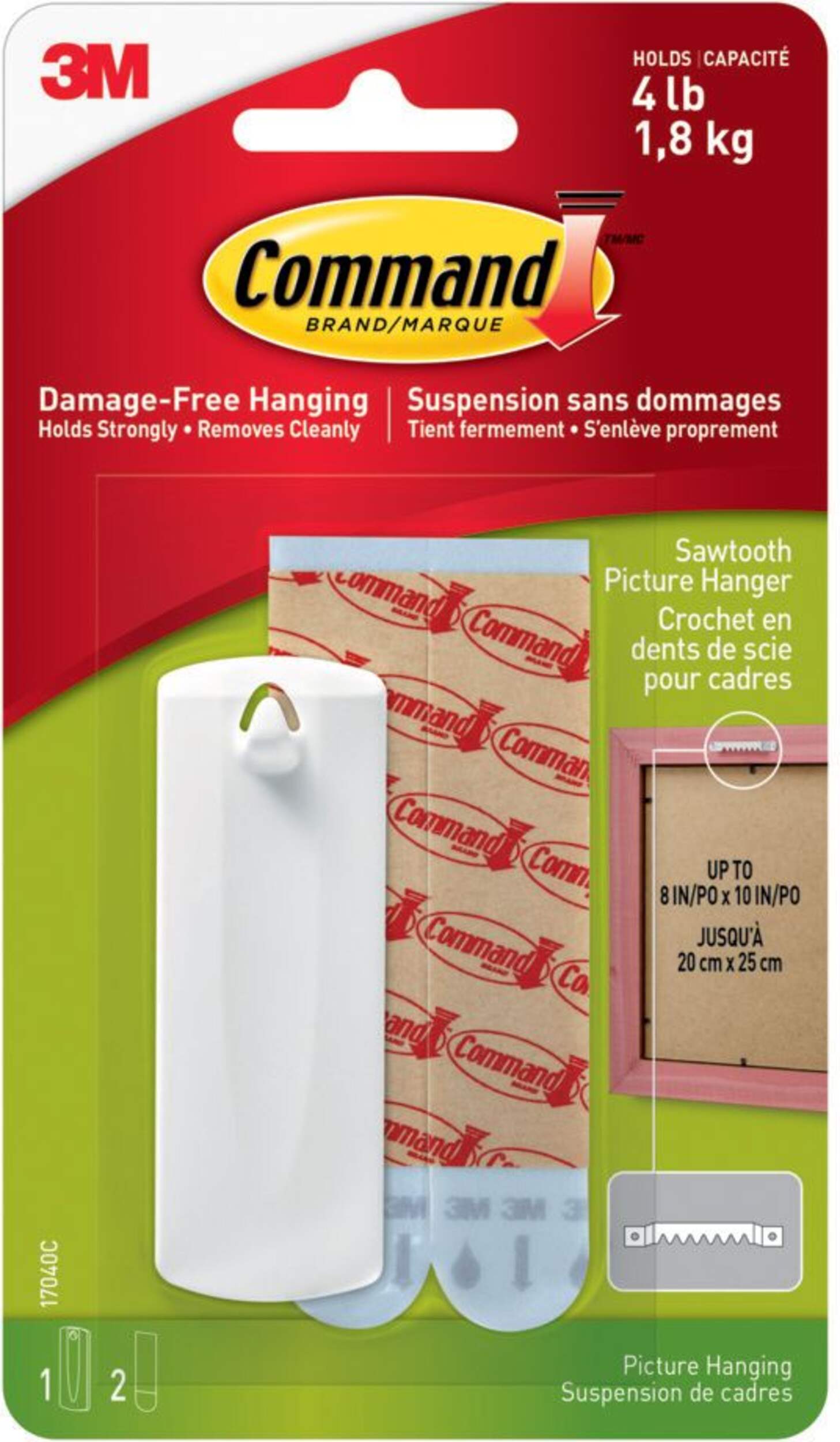 Command™ Sawtooth Picture Hangers make decorating quick and easy. One click tells you the Command™ Picture Hanging Strips are locked in and holding tight. Best of all, when you are ready to take down or move your pictures, they come off cleanly without leaving nail holes, cracked plaster or sticky residue. Command™ Picture Hangers are designed for sawtooth, D-ring and keyhole hanging frames.