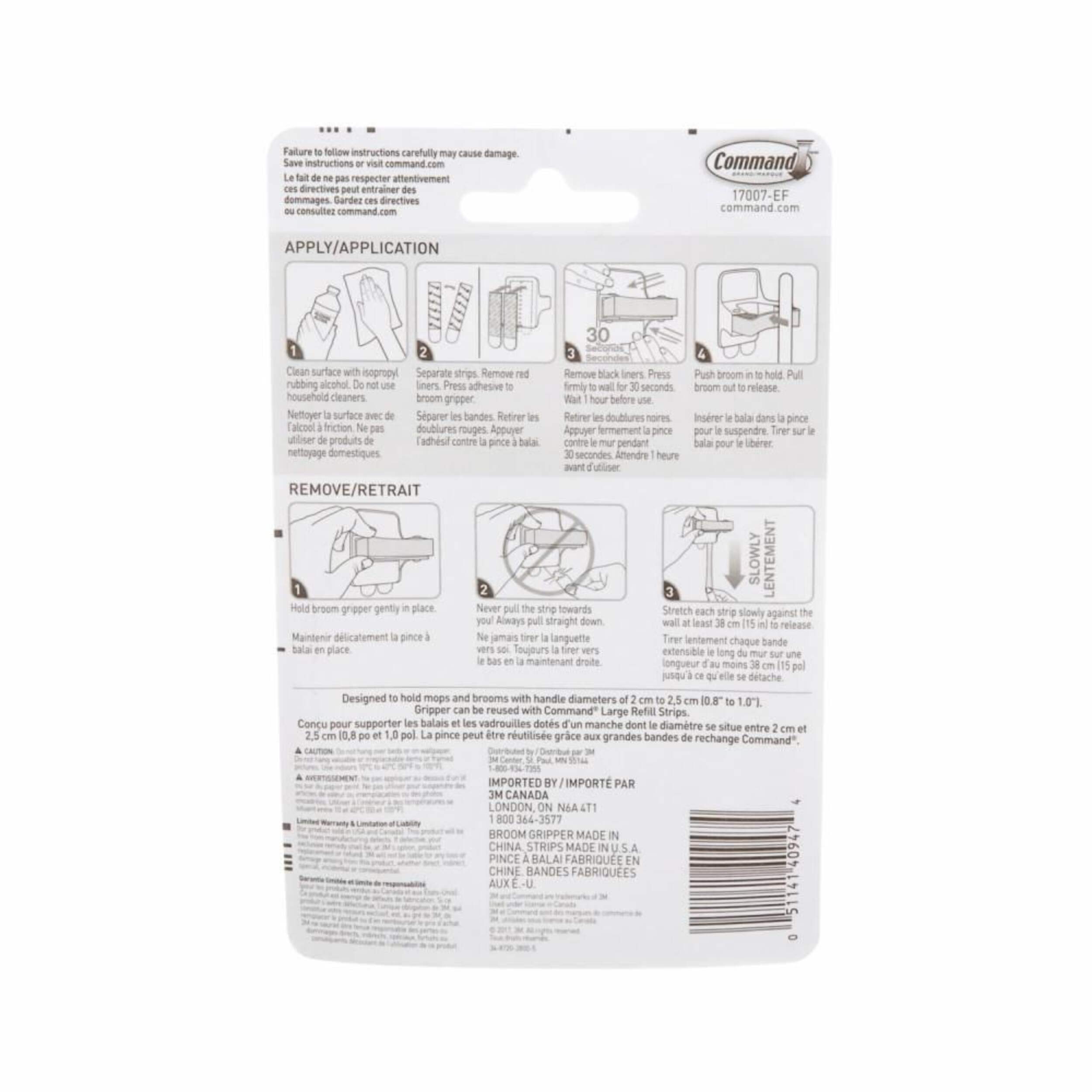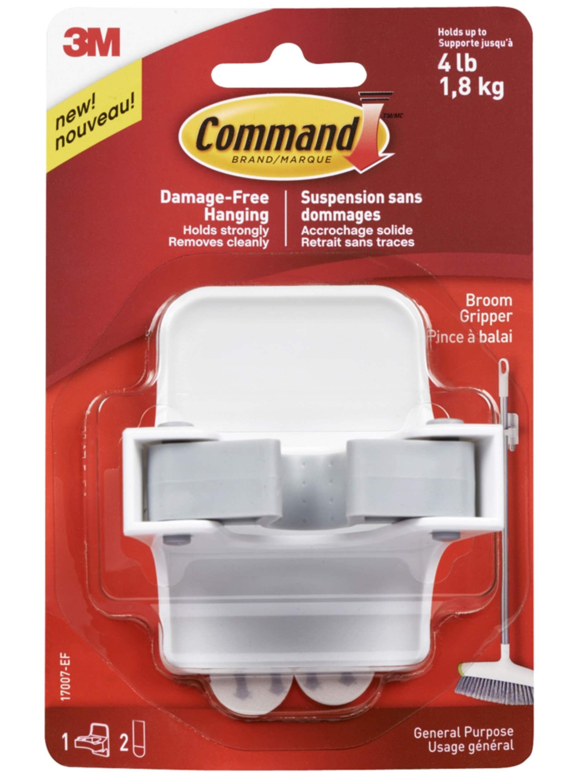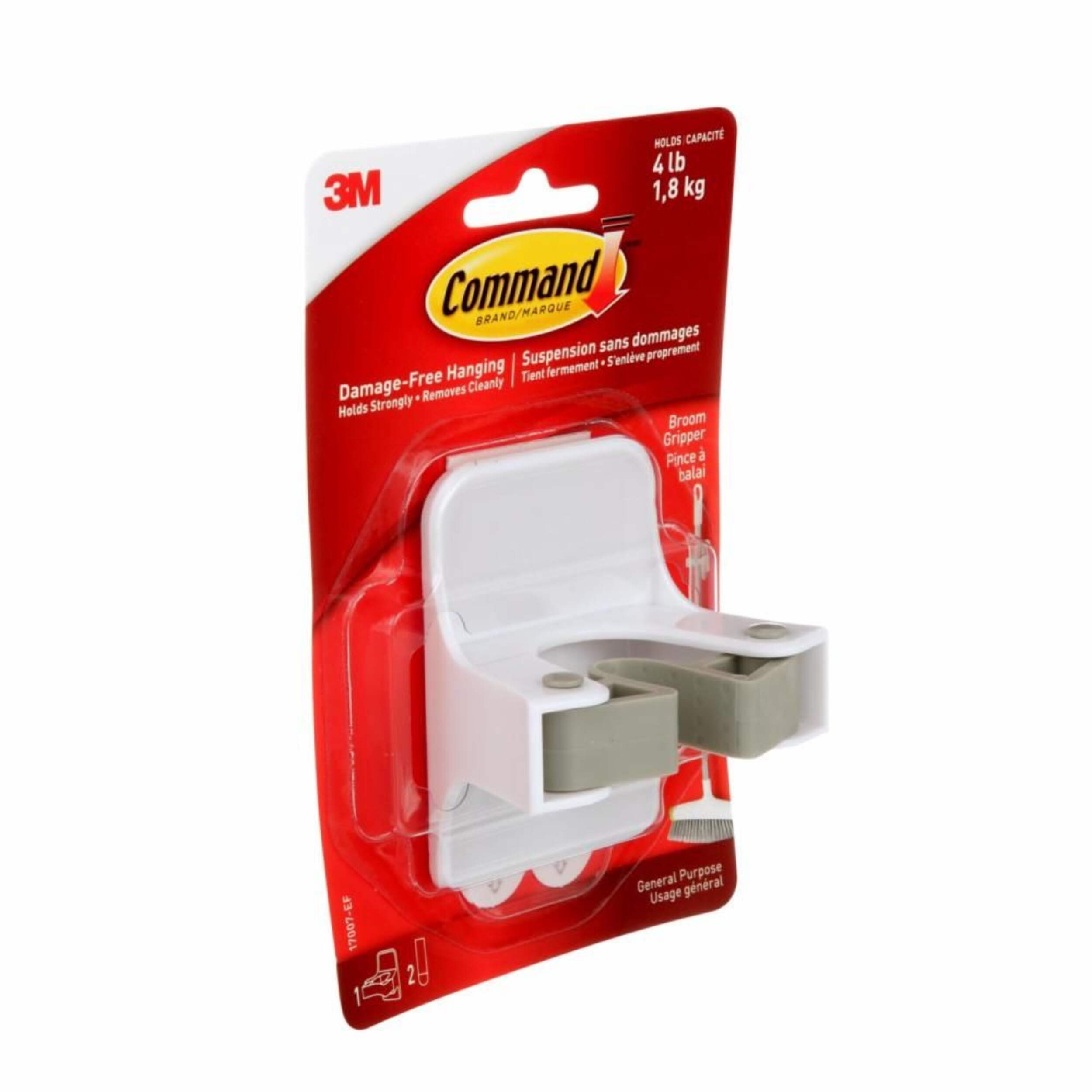 The Command Wall-Mounted Mop & Broom Gripper is fast and easy to hang. Using the Command Adhesive, the Command Broom Gripper holds strongly on a variety of surfaces, including paint, wood, tile and more. It also removes cleanly — no holes, marks, sticky residue or stains. Rehanging items is as easy as applying a Command Refill Strip, so you can take down, move and reuse items again and again.