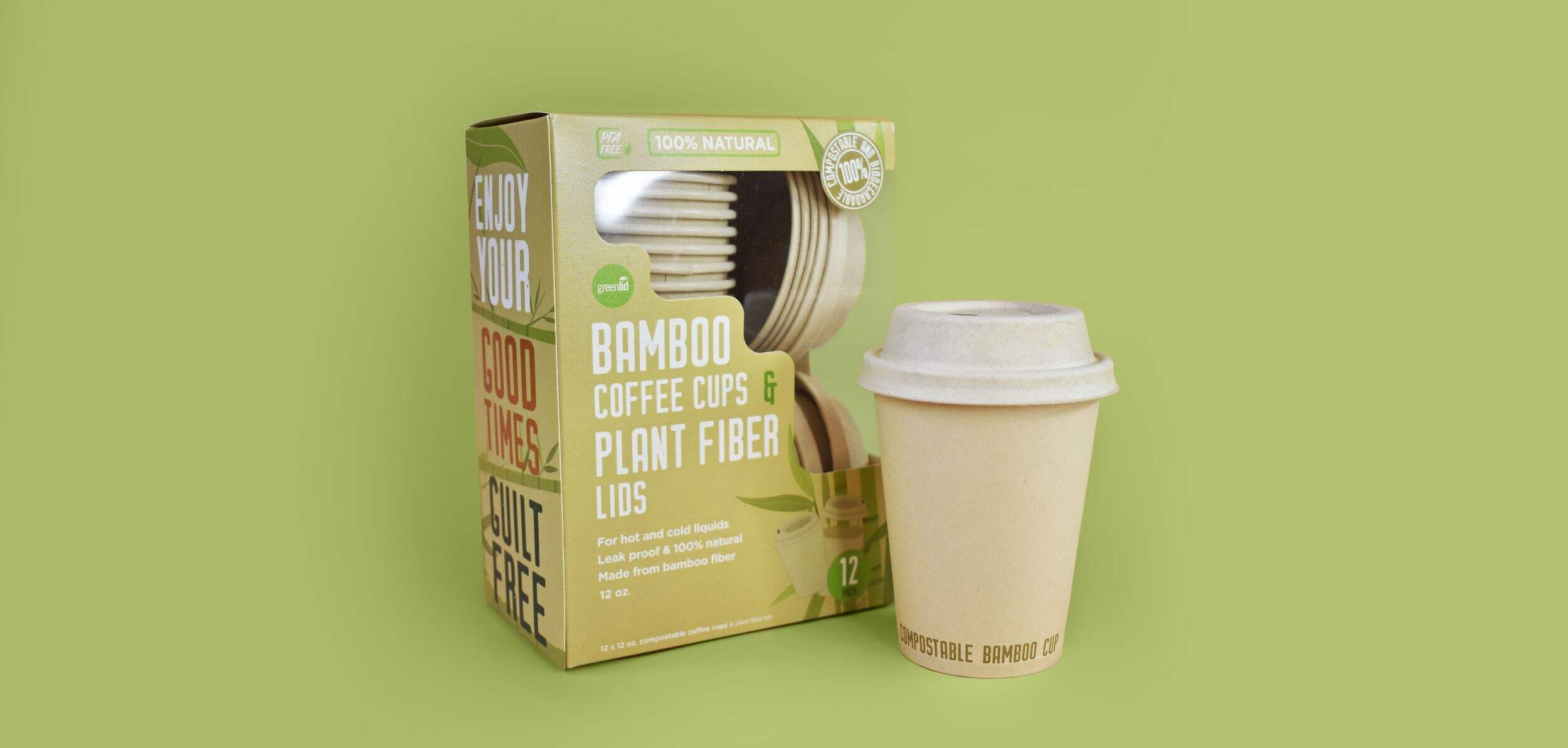 Compostable Bamboo Cups and Lids is made from bamboo fiber with a thin PLA layer