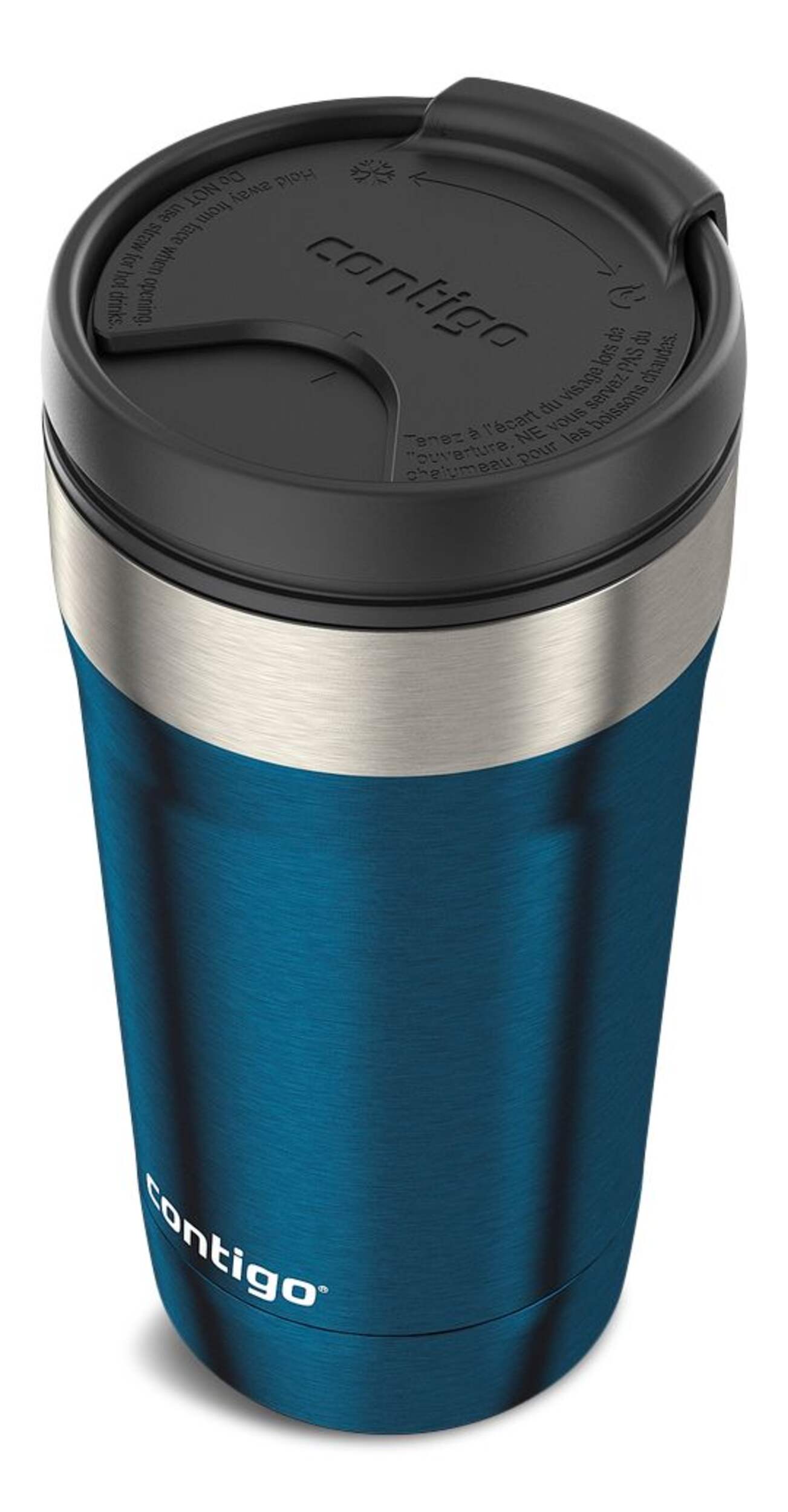 Twist lid to sip cold drinks using integrated straw, twist again to sip hot drinks from spout