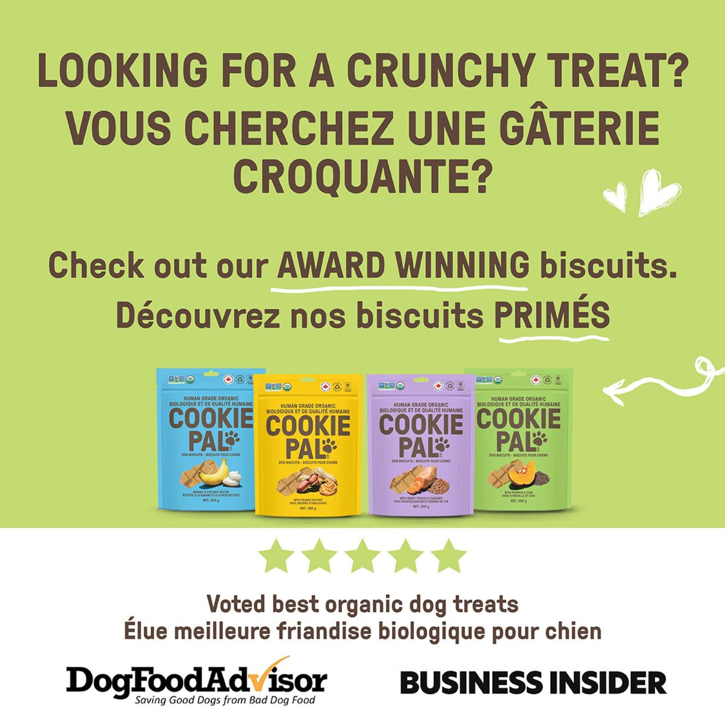The Cookie Pal Human Grade Organic Peanut Butter Dog Biscuits, 300-g, will leave your pet asking for more. Made with human-grade, USDA-certified organic ingredients, these vegan pet treats support your furry friend's mobility, skin health, and digestive function. The non-GMO peanut butter blend packs a tasty punch while the 300g size ensures plenty of snacking satisfaction. Ditch the artificial fillers and give your loyal companion the wholesome, nourishing bites they crave. Cookie Pal's Peanut Butter Biscuits are a tail-wagging good time you can feel good about.