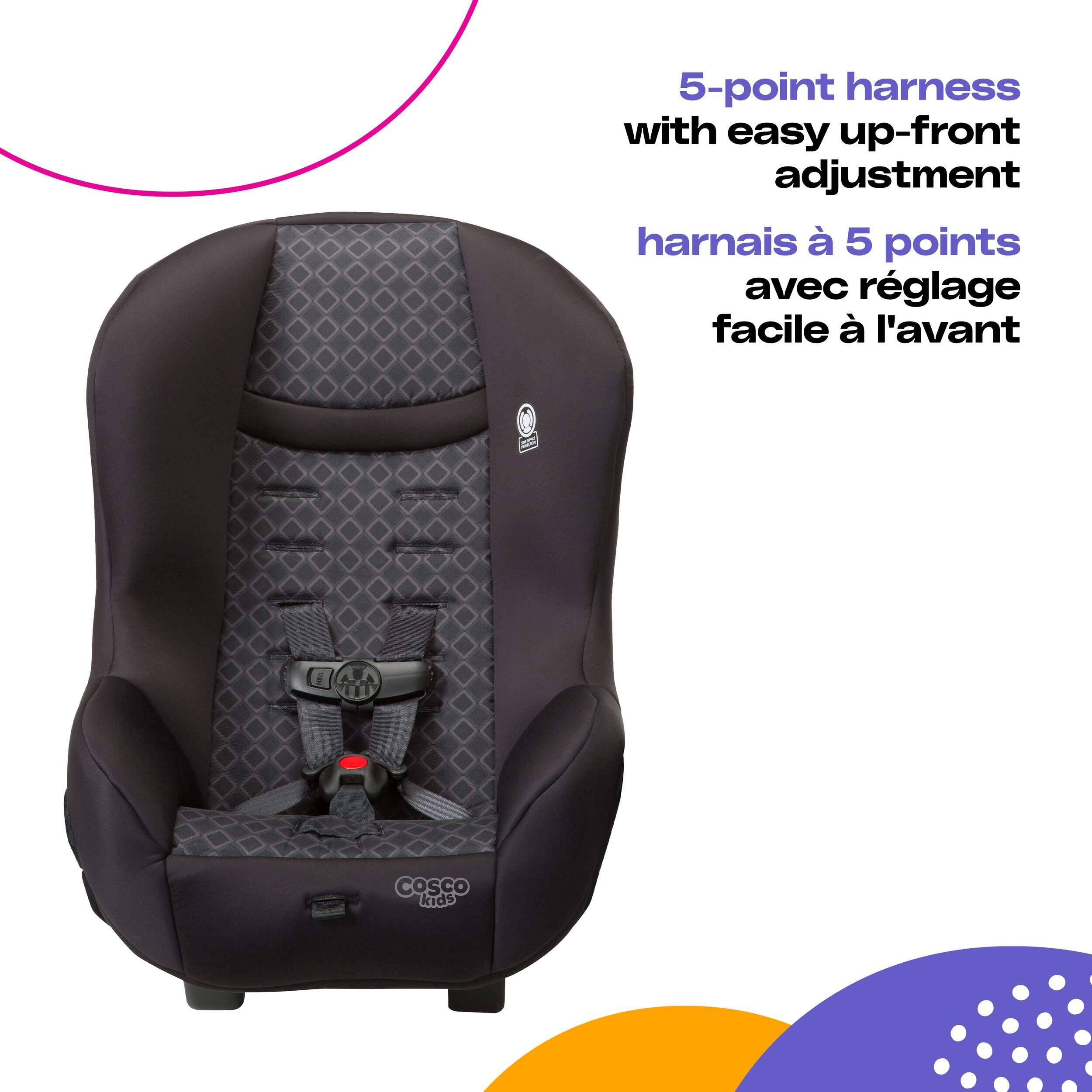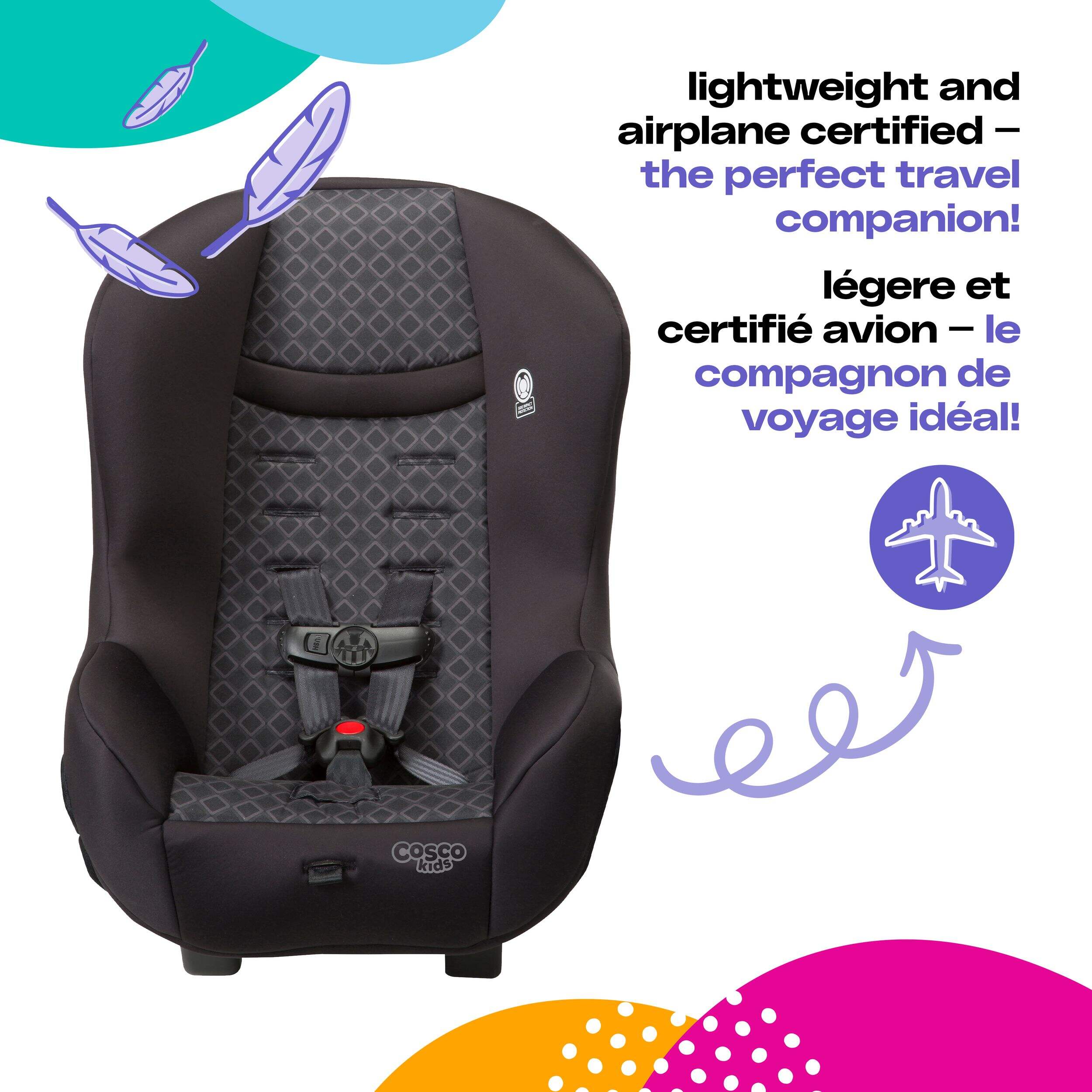 The Cosco Scenera® NEXT Convertible Car Seat, Boulder is the smarter choice for families. It accommodates children in rear-facing mode from 5-40 pounds and forward-facing from 22-40 pounds, providing both safety and comfort as your child grows. This convertible car seat features three buckle locations, ensuring the best fit for any situation. It's also lightweight, compact, and certified for use on airplanes.