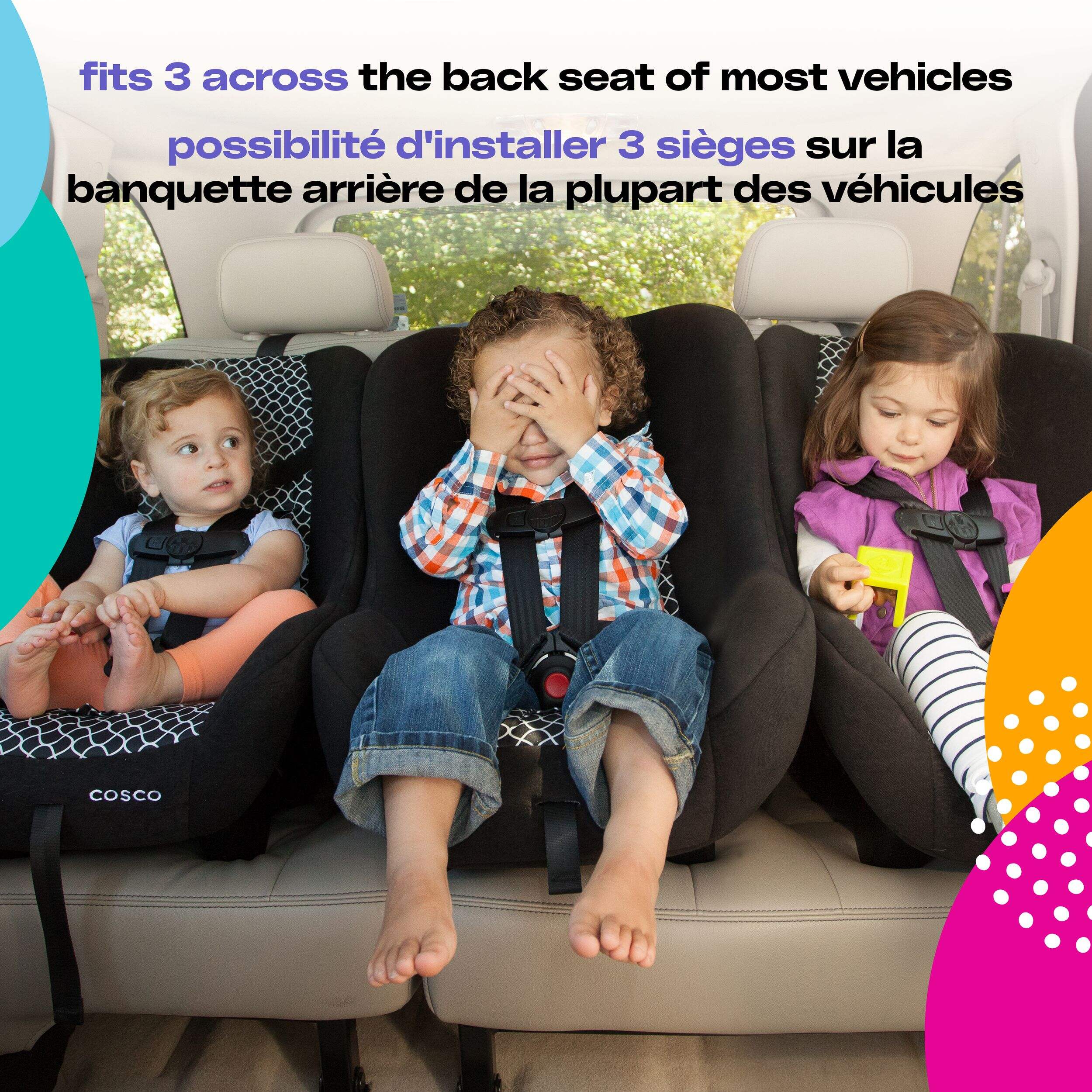 Designed to fit 3 across in most vehicles