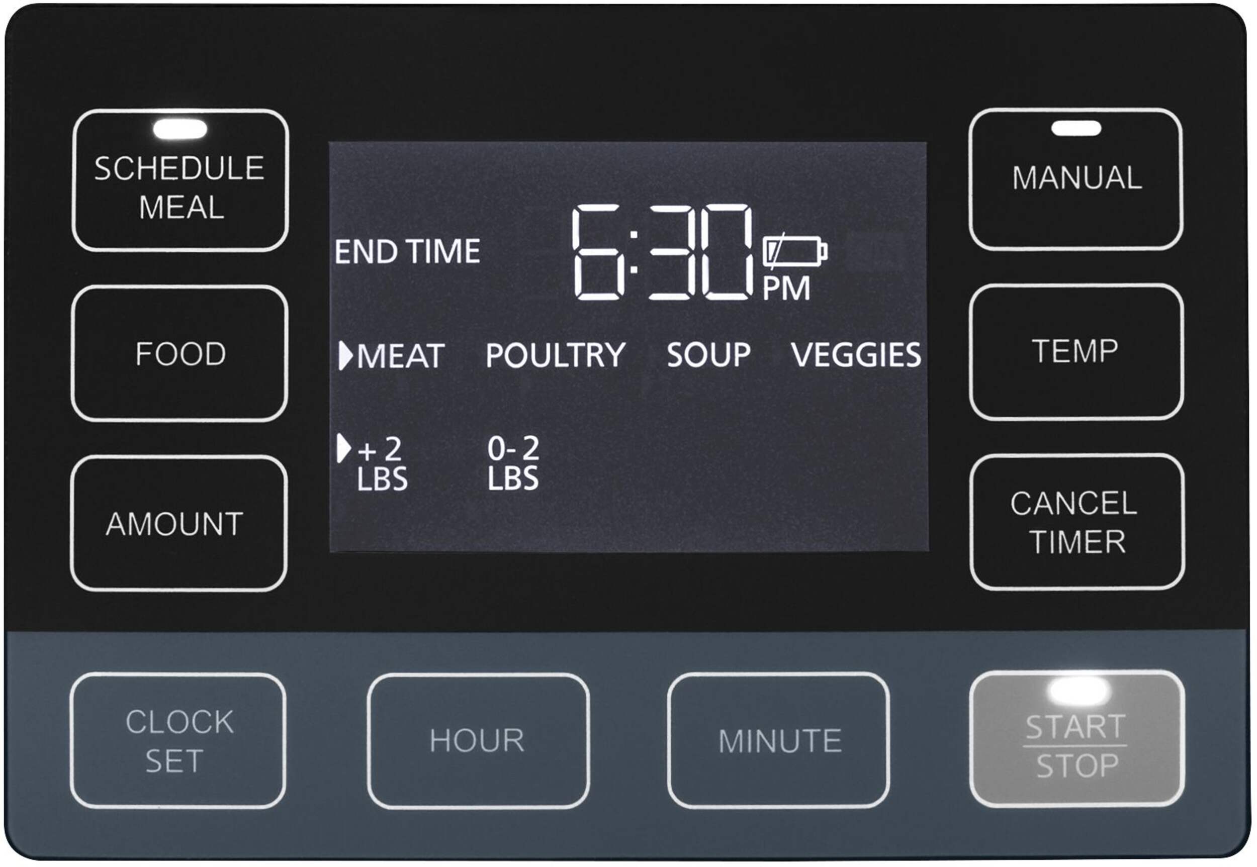 Flat digital countdown control screen lets you easily schedule your desired mealtime, monitor meal progress, and manually control your cook time and temperature