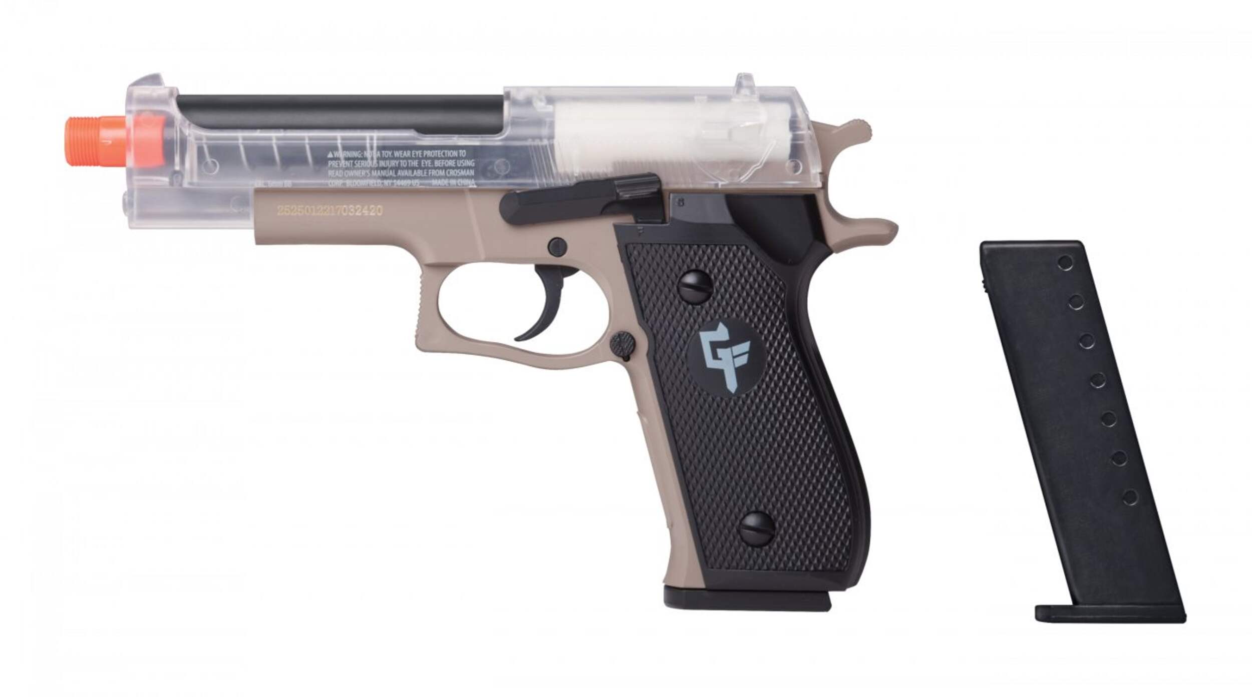 The Crosman® P9 Spring-Powered Airsoft Pistol is designed for reliability and ease of use, making it perfect for backyard target practice and casual airsoft enthusiasts. With its spring-powered mechanism, the P9 fires 6mm BBs at up to 275 fps. The pistol features a 15-round magazine for continuous action and includes a convenient holster for quick access and storage. The fixed front and rear sights provide improved accuracy for both beginners and seasoned airsoft players alike.