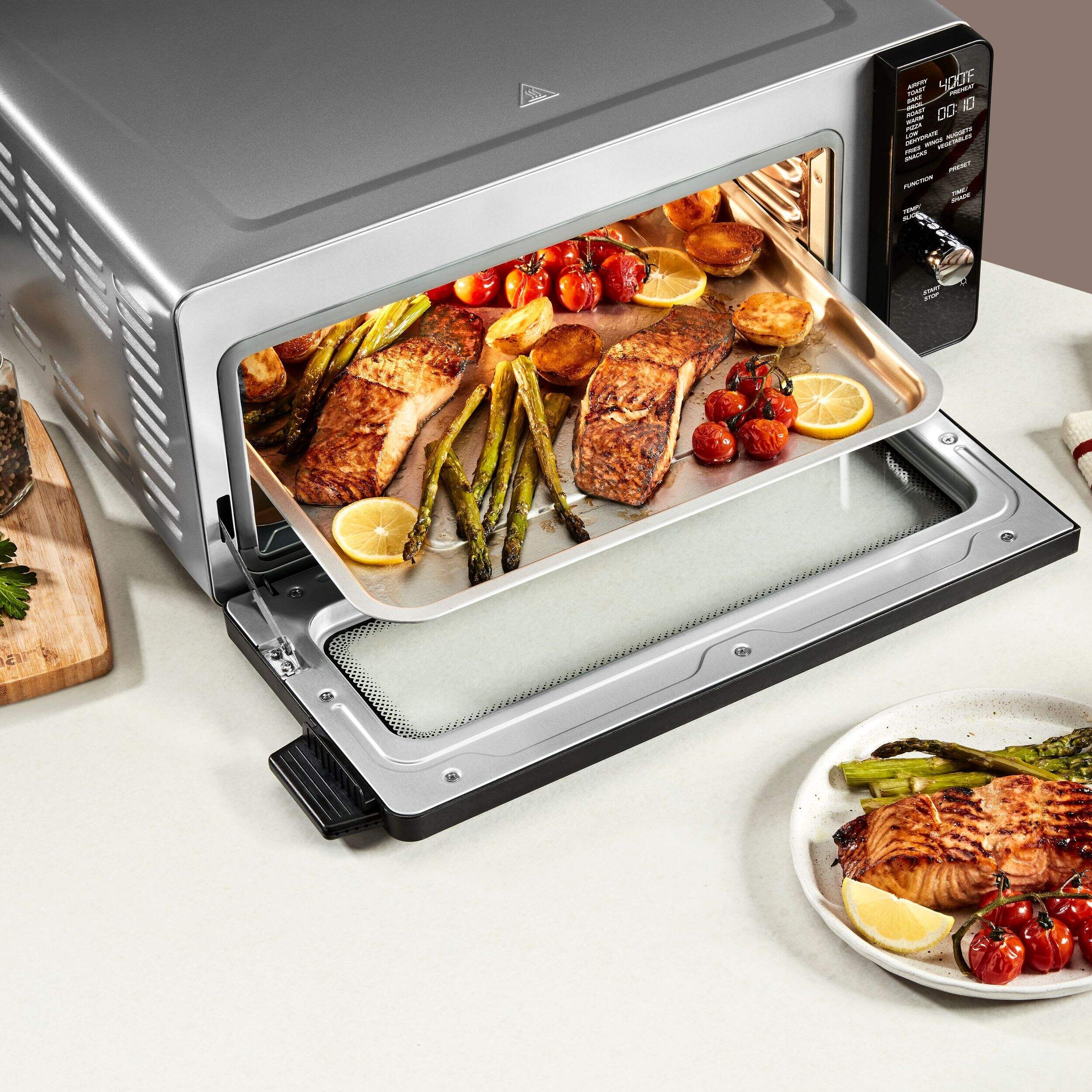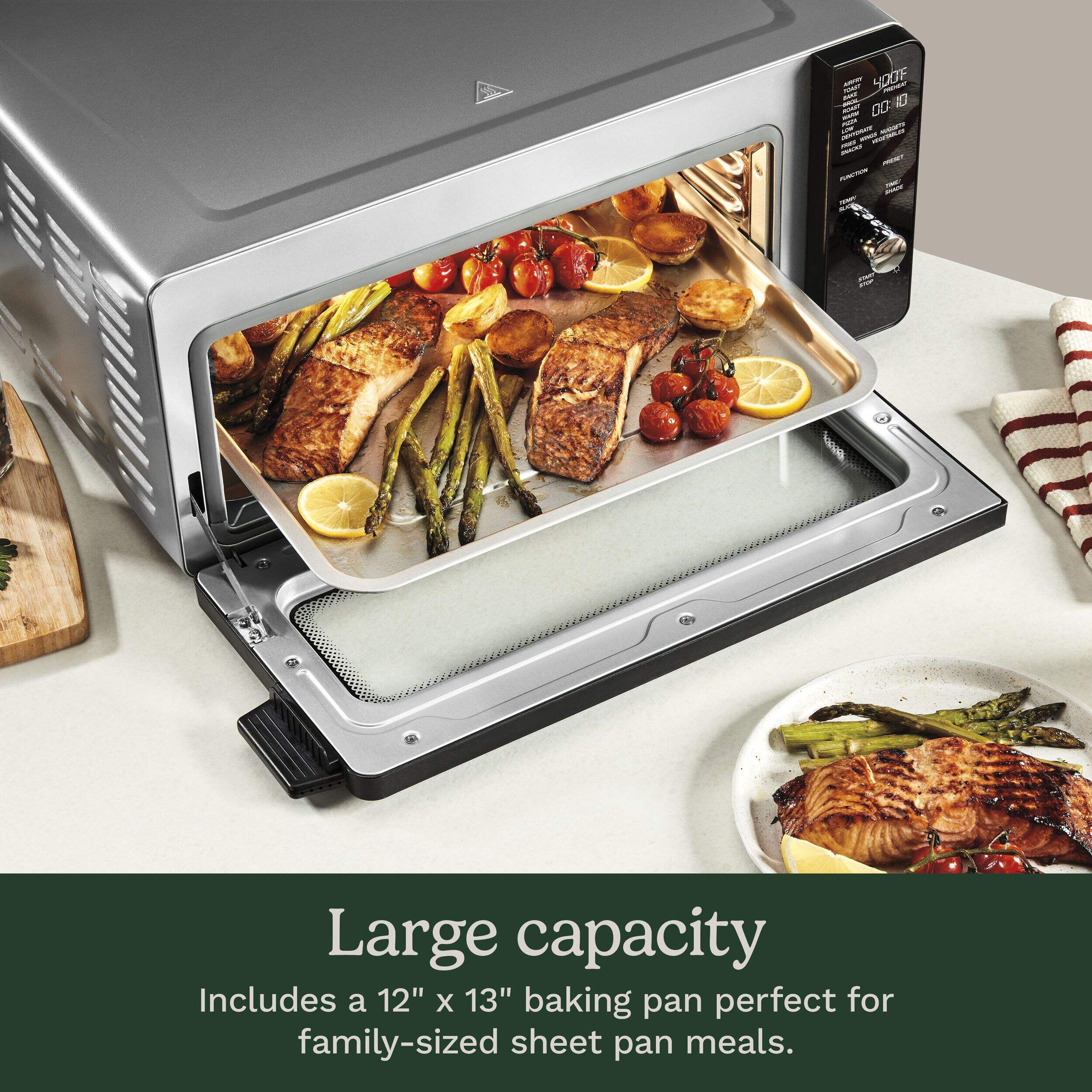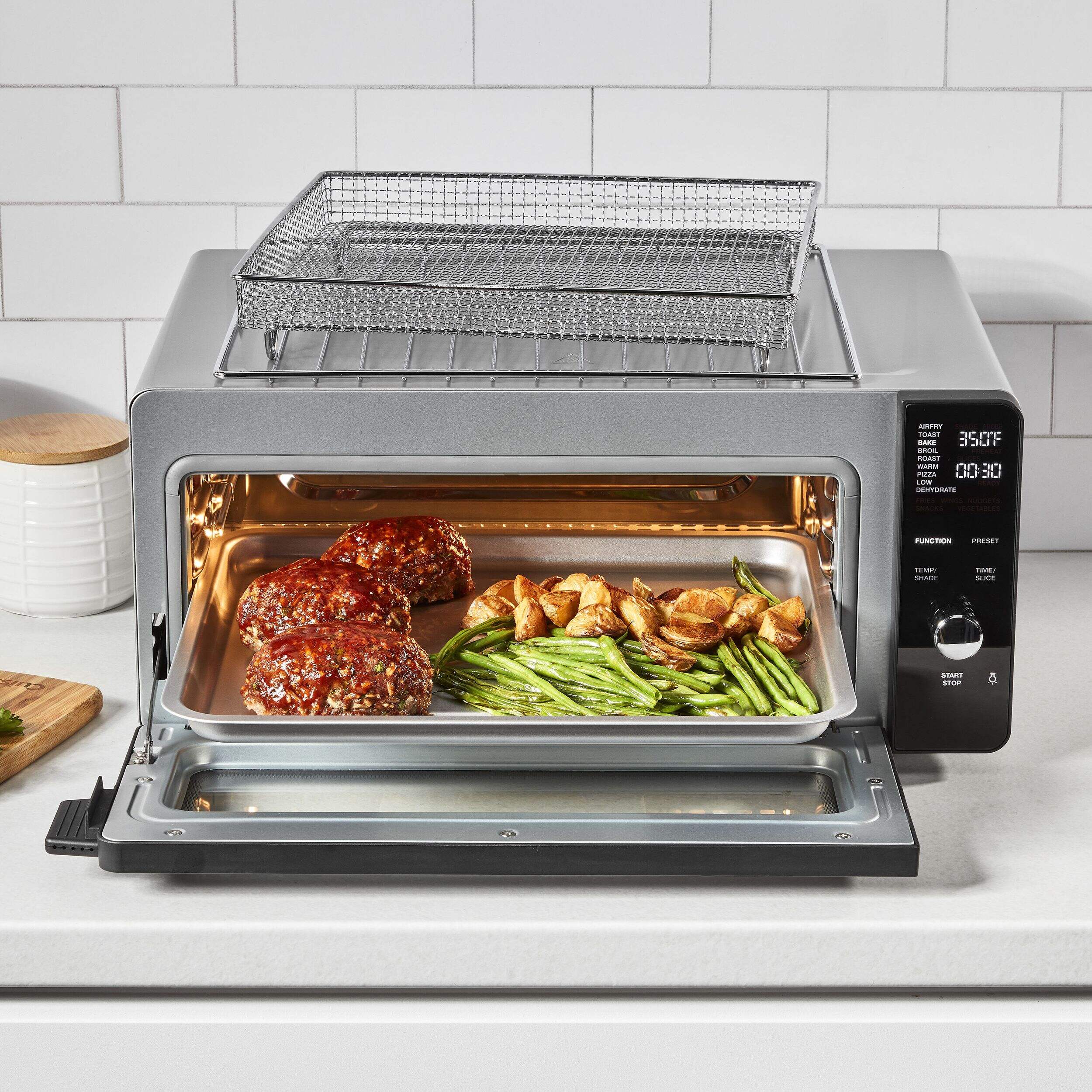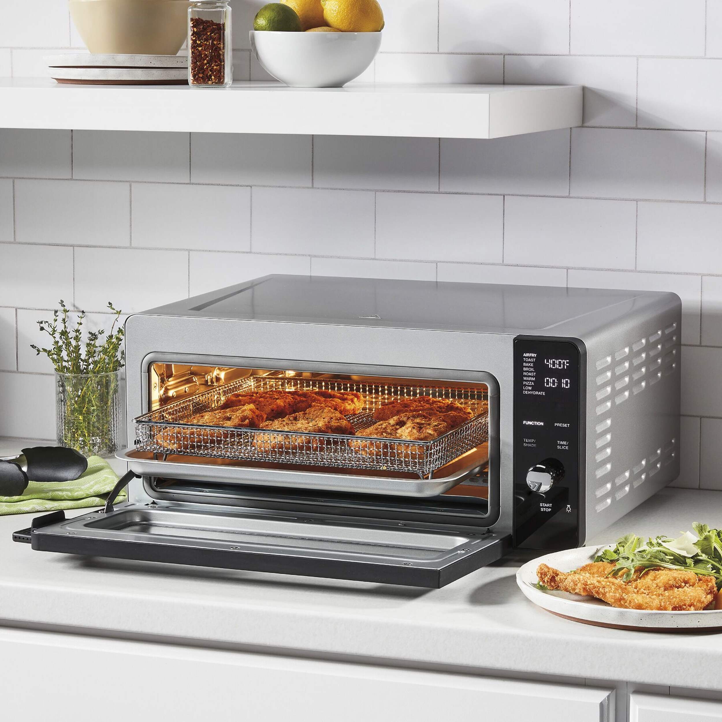 • Stainless steel oven interior Includes: oven rack, baking pan, AirFryer basket, removable crumb tray