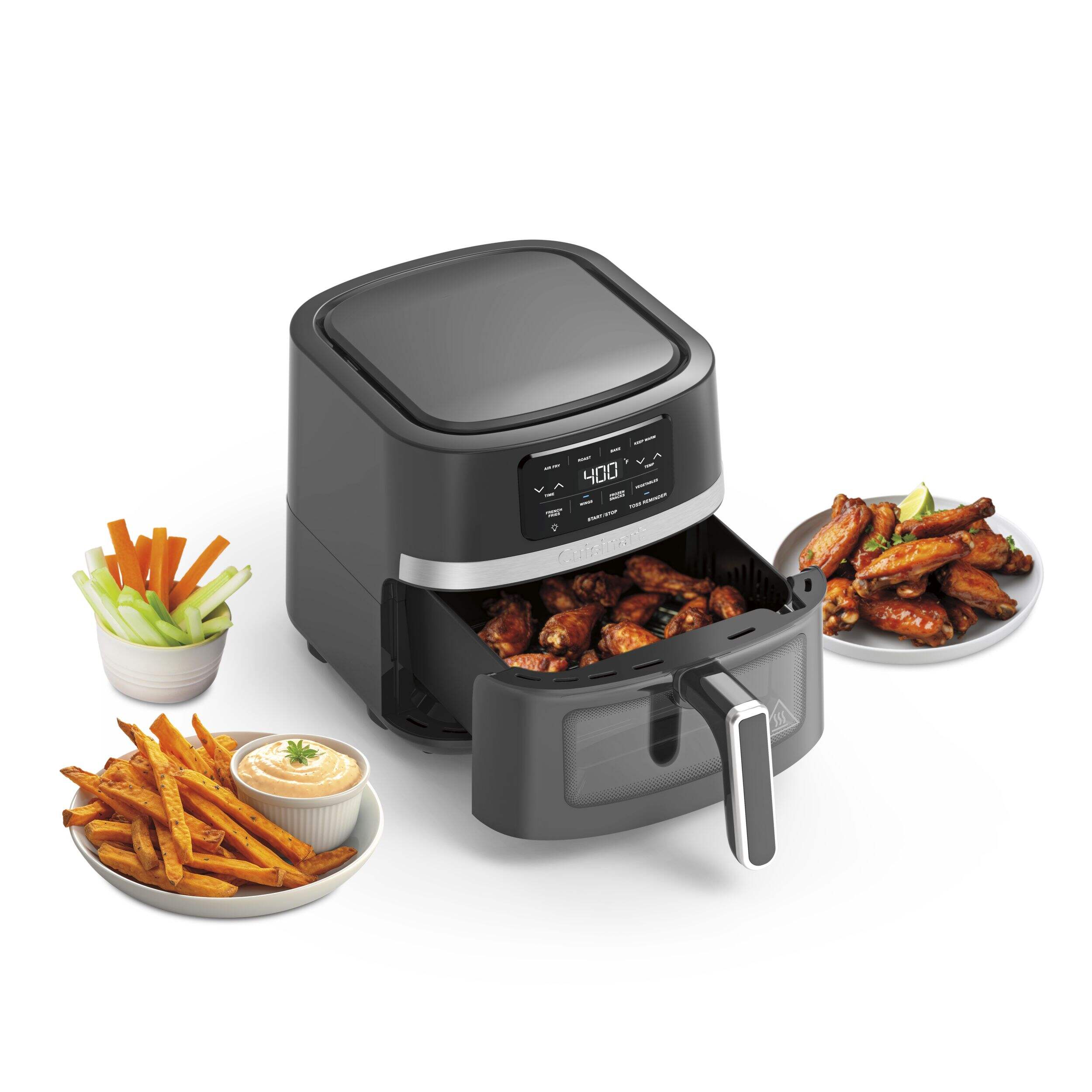 Digital display with 4 Air Fry presets: French Fries, Wings, Frozen Snacks and Vegetables