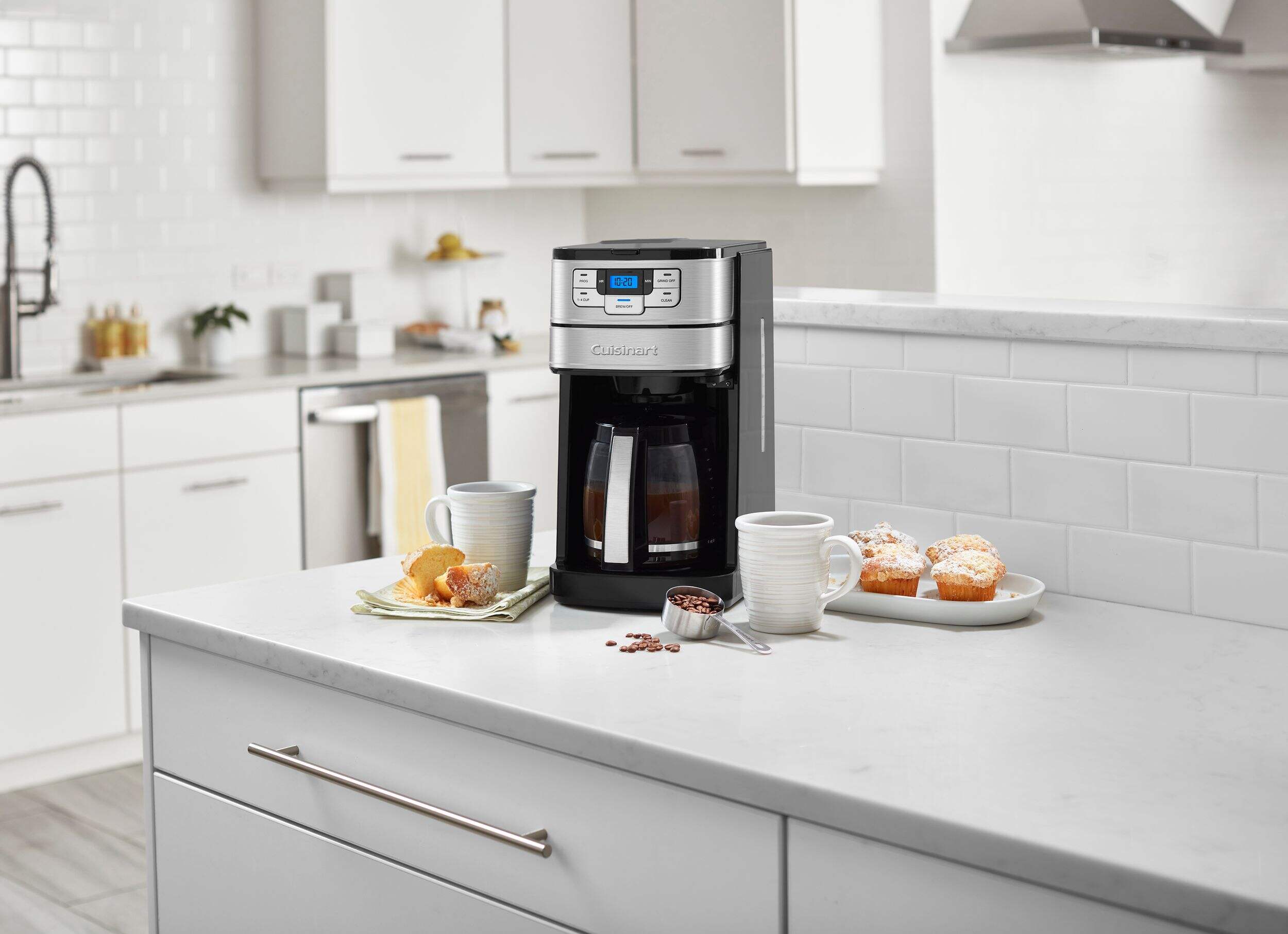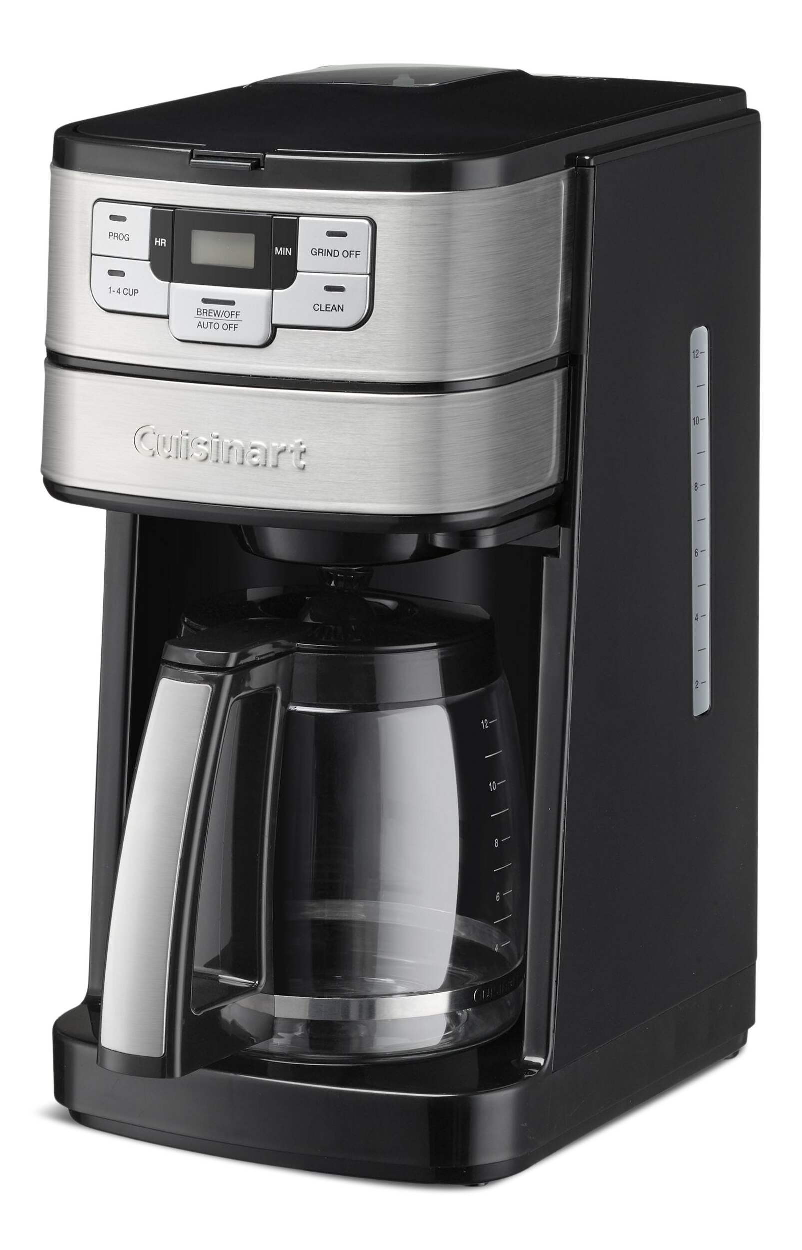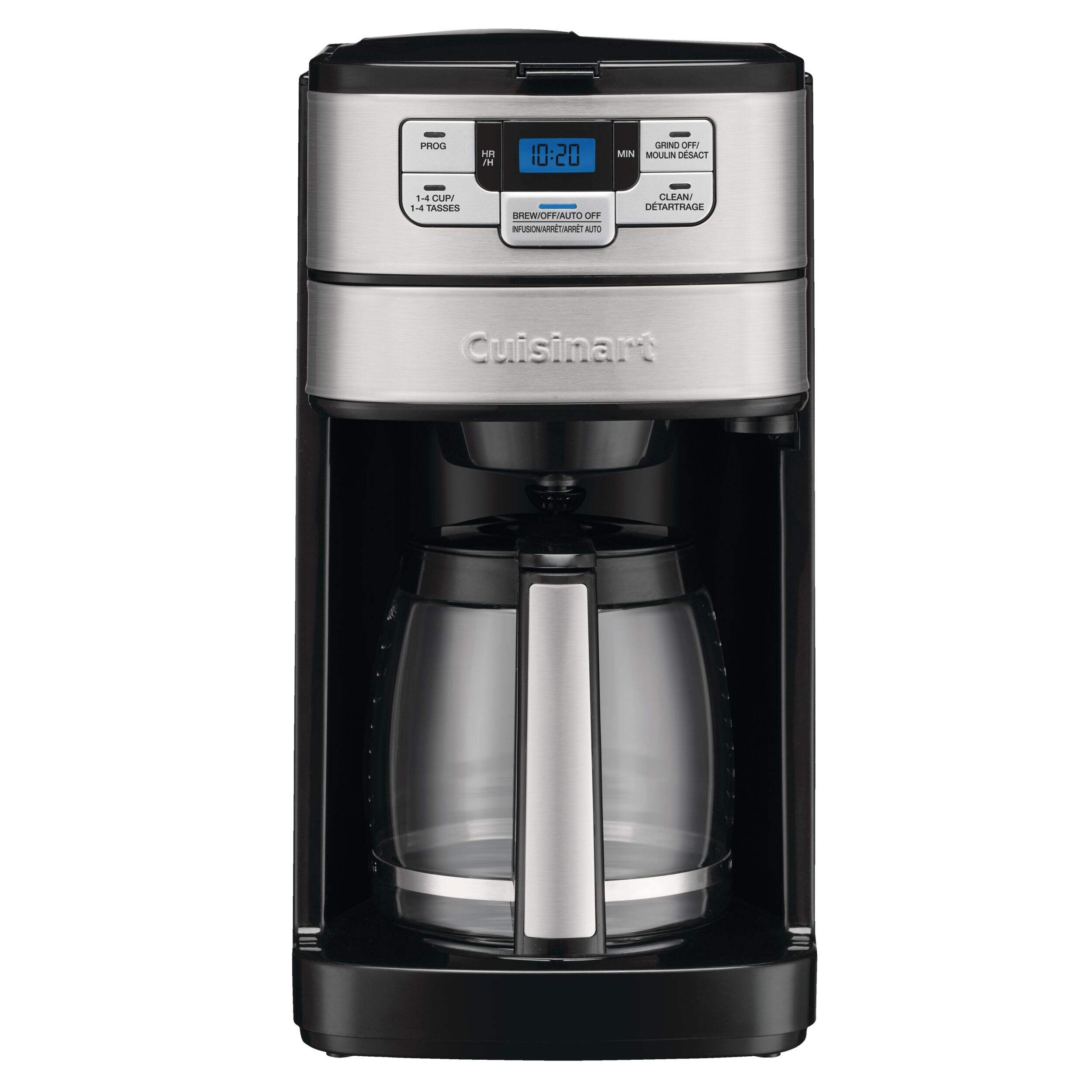 Making fresh-ground coffee at home is easy with the Cuisinart Automatic Grind & Brew 12-Cup Coffeemaker. Designed with a powerful blade grinder that automatically grind beans just before brewing, it does all the work for you with programmable 24-hour brew start, adjustable auto-off, and 1-4 cup setting options. Preset to have a pot of hot, delicious coffee ready first thing in the morning. Don't want to wait for a full pot to brew? Use the Brew Pause™ feature to enjoy a cup without interrupting the brew cycle. Have pre-ground coffee? Use the grind-off option to brew it to perfection. Versatile and simple to use, the Automatic Grind & Brew spare you the trip to the coffee shop. Maximum convenience and fresh, full-bodied flavour assured!