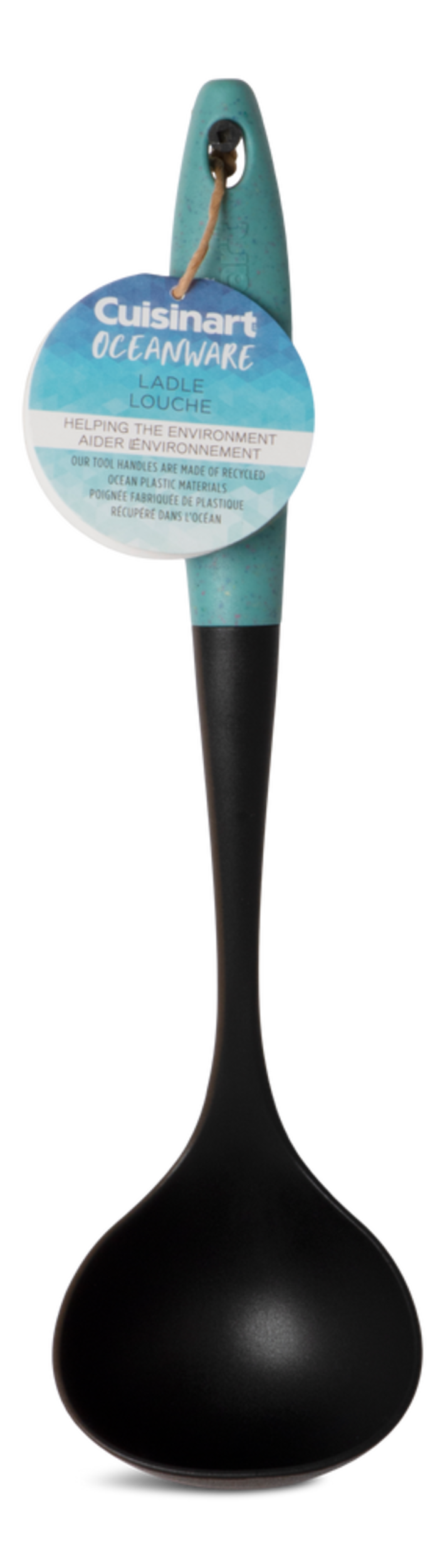 Cuisinart Oceanware Ladle uses handles made from 98% recycled ghost nets pulled from the ocean and features sustainable packaging made from biodegradable and compostable material