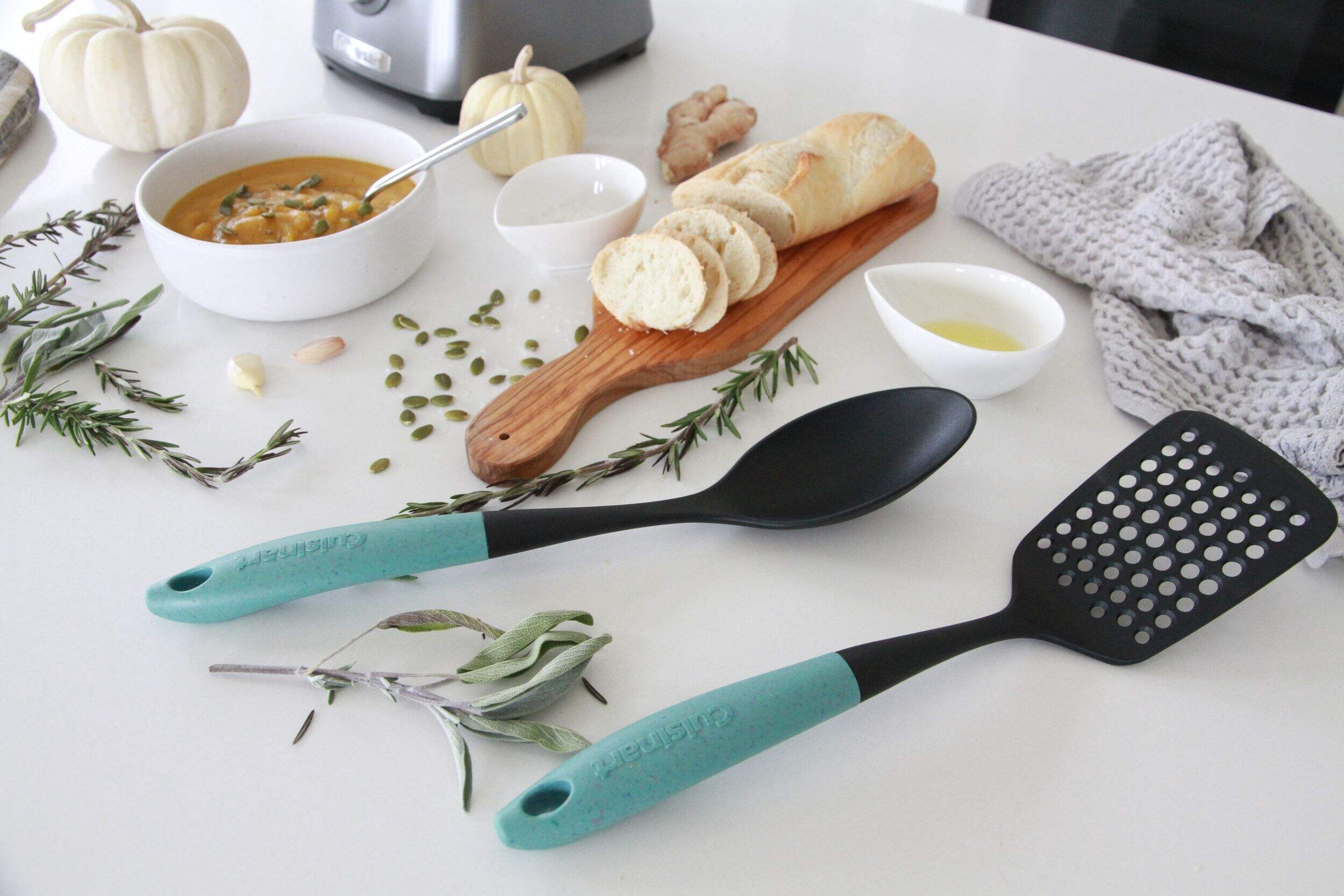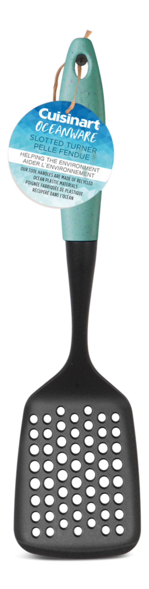 Cuisinart Oceanware Slotted Turner uses handles made from 98% recycled ghost nets pulled from the ocean and features sustainable packaging made from biodegradable and compostable material