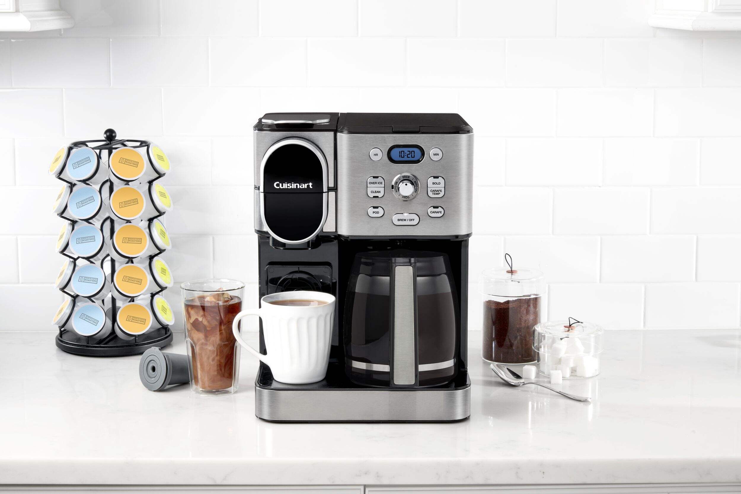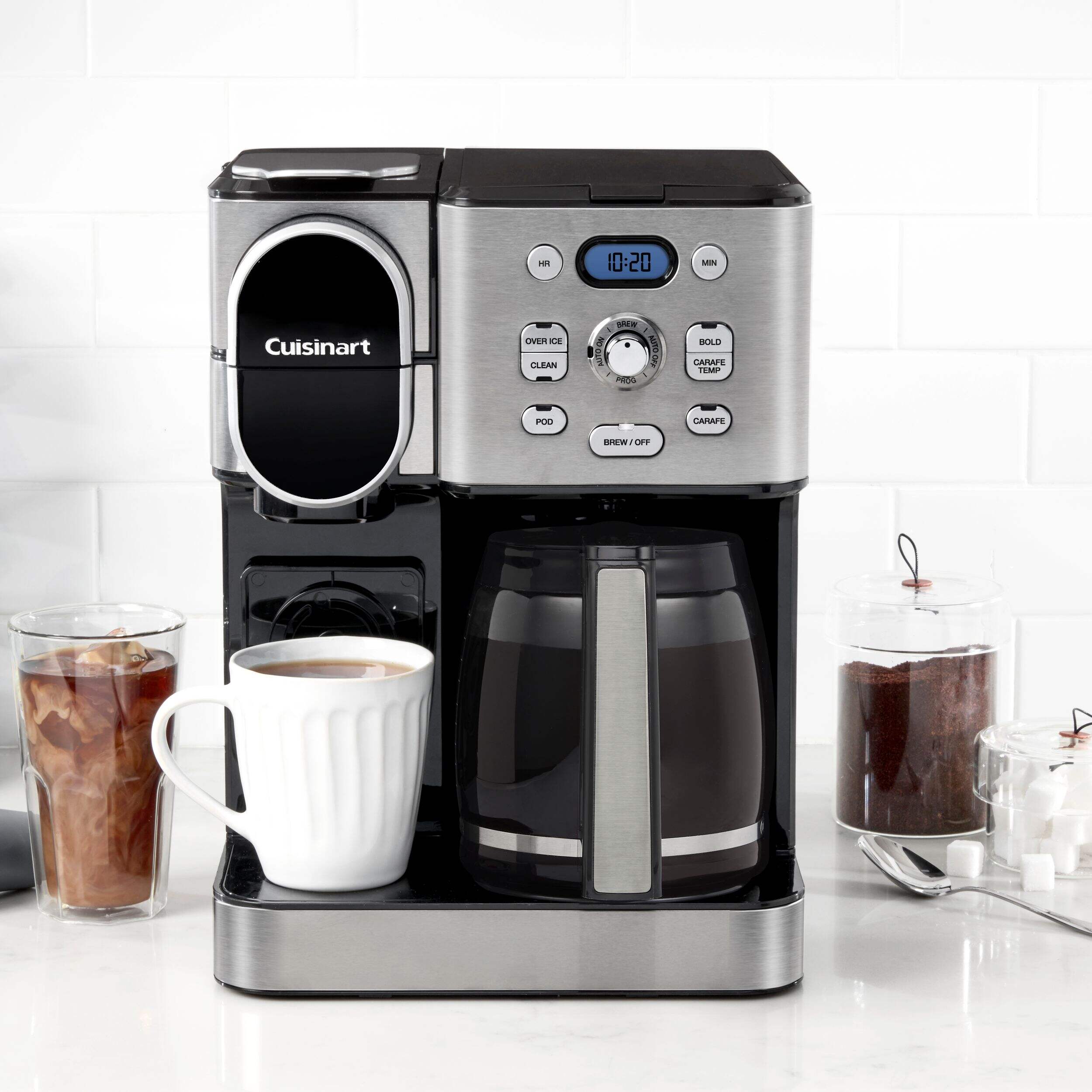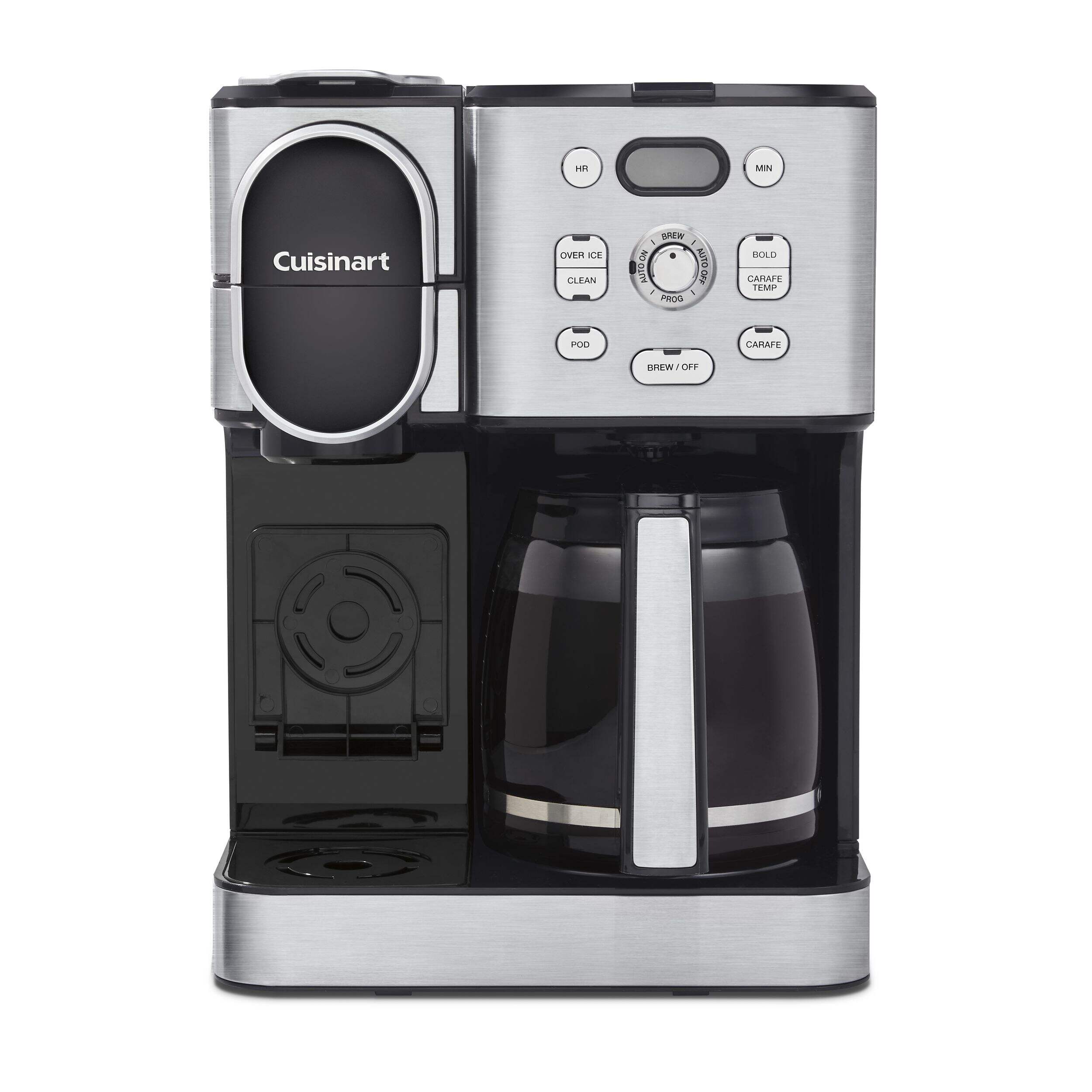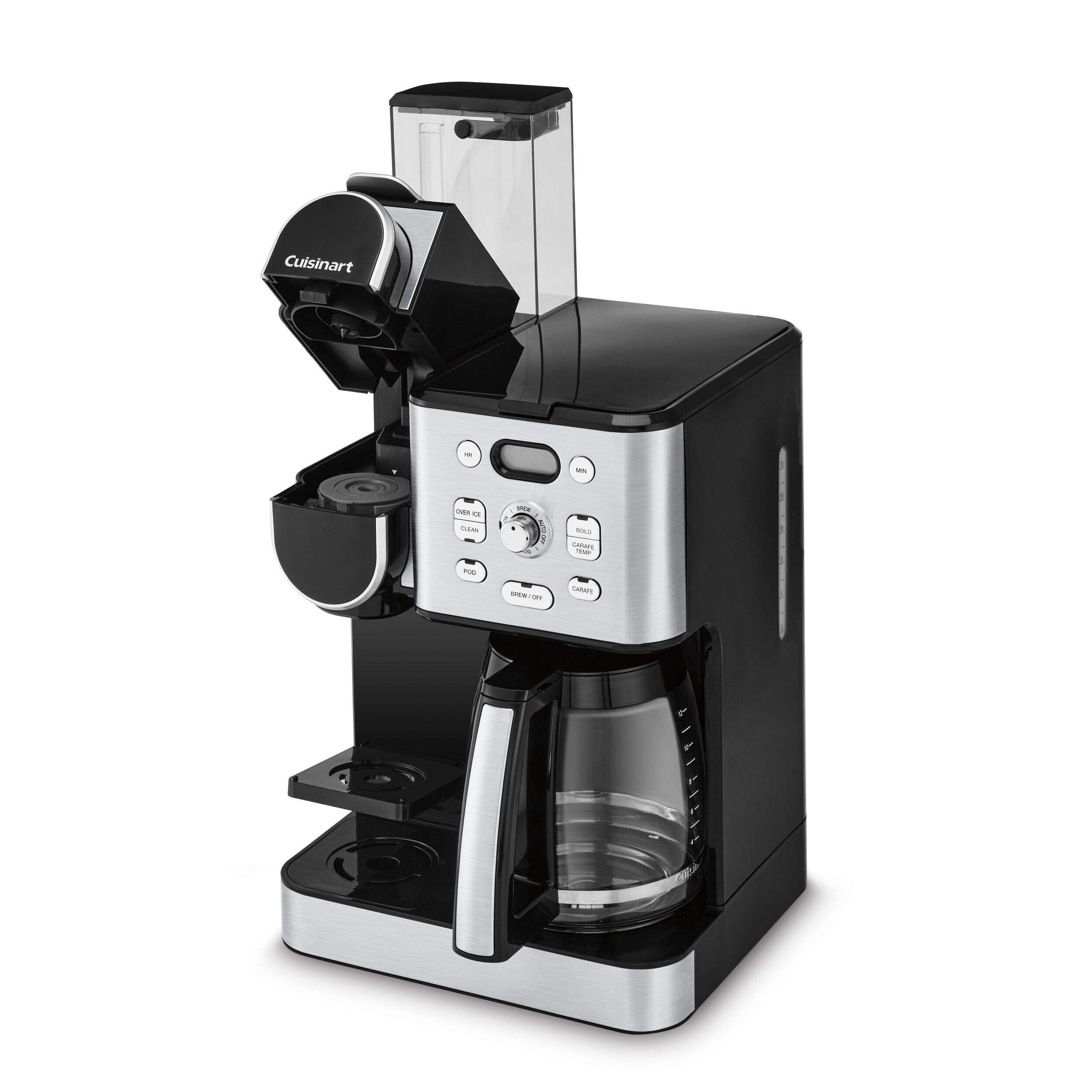 Cuisinart Programmable Single Serve Drip Coffee Maker offers an unmatched brewing experience with the flexibility of both a 12-cup carafe and single-serve brewing options. Perfect for coffee enthusiasts, it allows you to brew hot or iced coffee using any pod, including Keurig K-Cup, or the reusable HomeBarista filter. Advanced features such as Extreme Brew technology deliver coffee 25% faster, while the fully automatic functions include a 24-hour brew start, auto-off, and self-clean. Compact and versatile, this coffeemaker ensures convenience and quality in every brew.