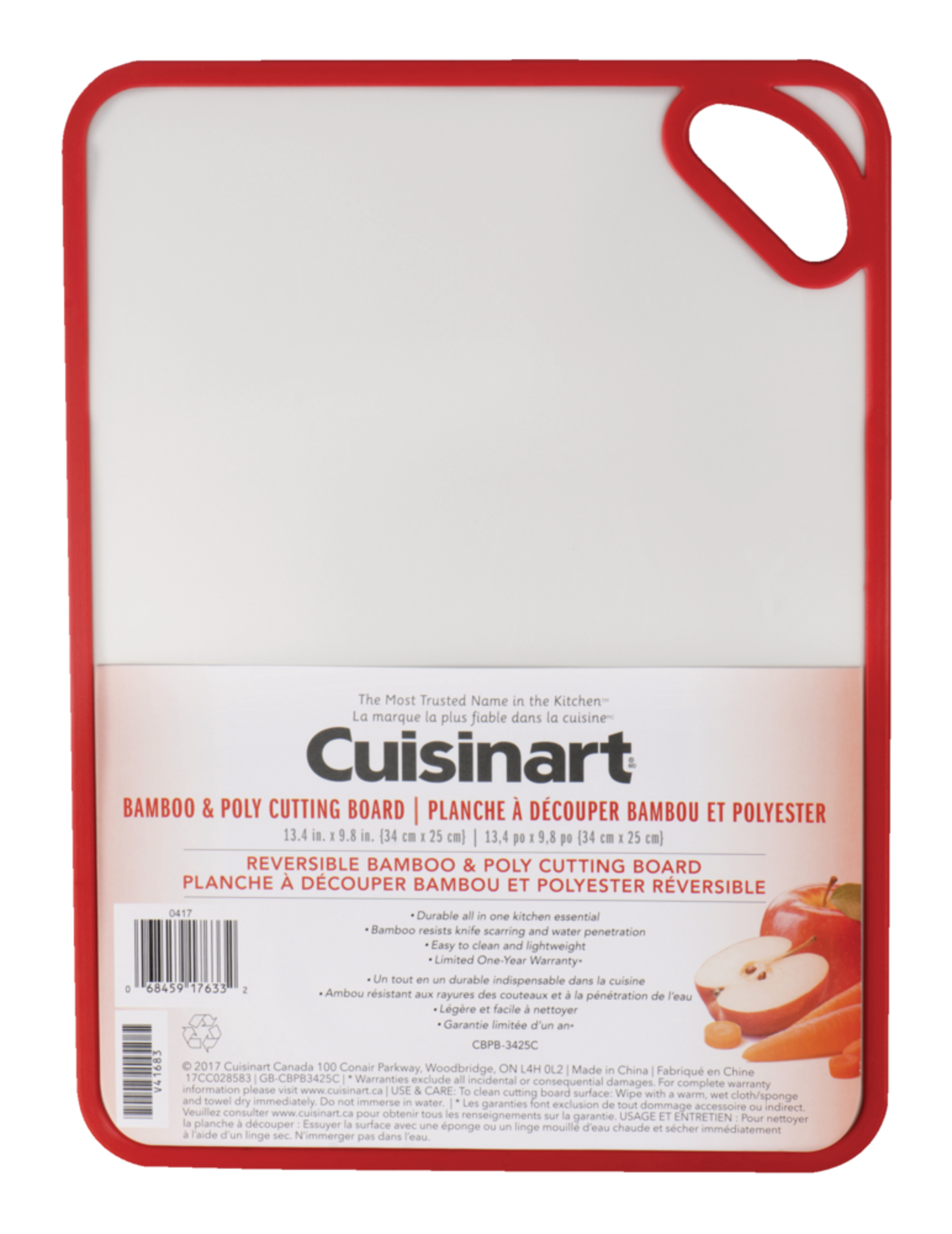 Cuisinart Reversible Cutting board features a bamboo finish on one side and a poly finish on the other