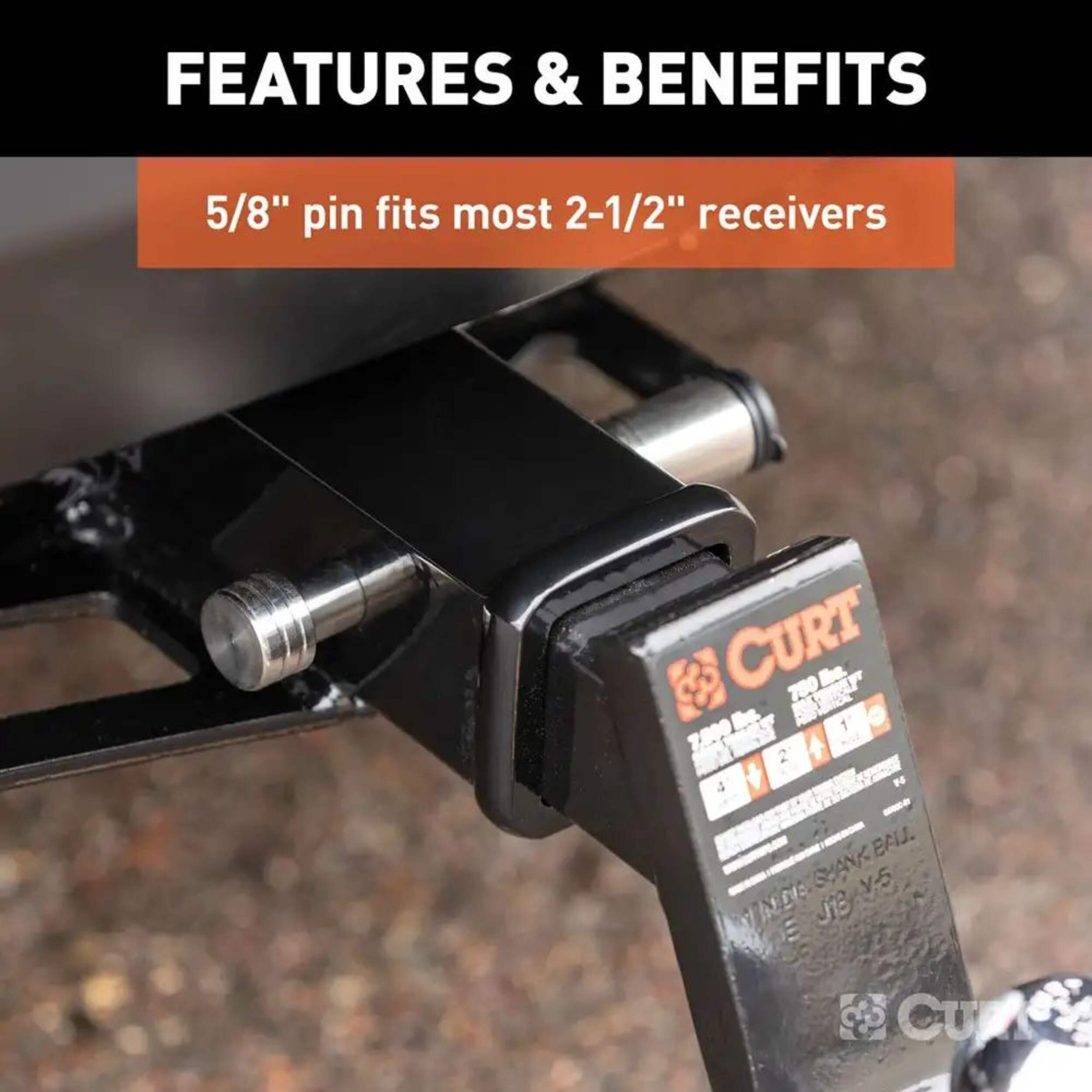 5/8" diameter pin fits 2" or 2-1/2" receiver tubes