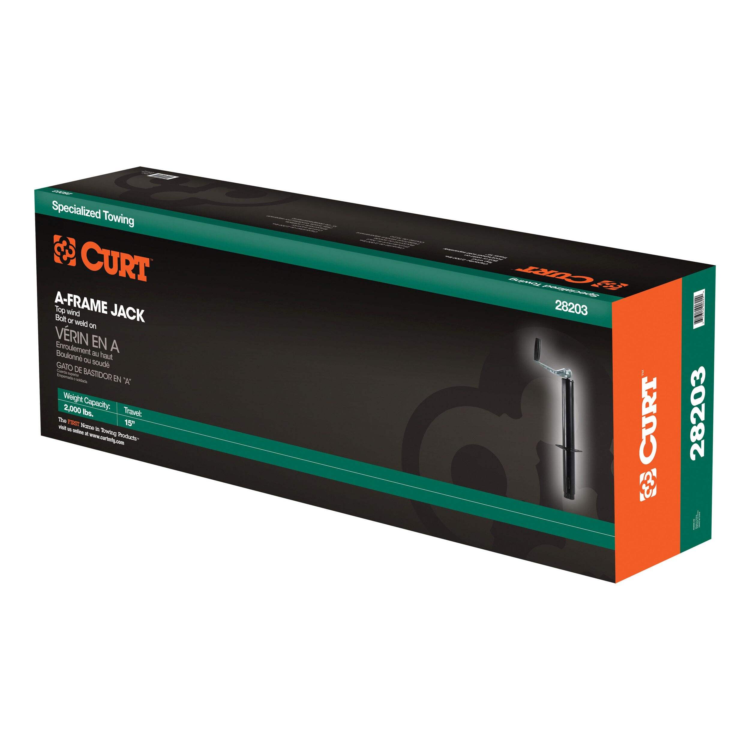 In our goal of being your best source for all things towing, the CURT line of trailer jacks is designed with care and manufactured with pride. CURT jacks are made with quality to promote the life and function of your trailer, and they come in several different styles to accommodate your needs, whether you are a frequenter of the boat landing, the campground, the racetrack or the field. CURT A-frame jacks are designed specifically for A-frame trailers. They can be bolted or welded directly onto the trailer frame. Though they are not able to swing up and out of the way like CURT swivel jacks, A-frame jacks are made to retract completely to ensure enough clearance for safe travel. This CURT A-frame trailer jack features a weight capacity of 2,000 lbs., a travel of 15" and a top-wind handle. It does not matter what kind of trailer you tow -- a boat trailer, utility trailer, livestock hauler or recreational vehicle trailer -- if you have a receiver-style trailer, you will want a jack that complements its function. For a trailer jack that will not steer you wrong, CURT has the answer.