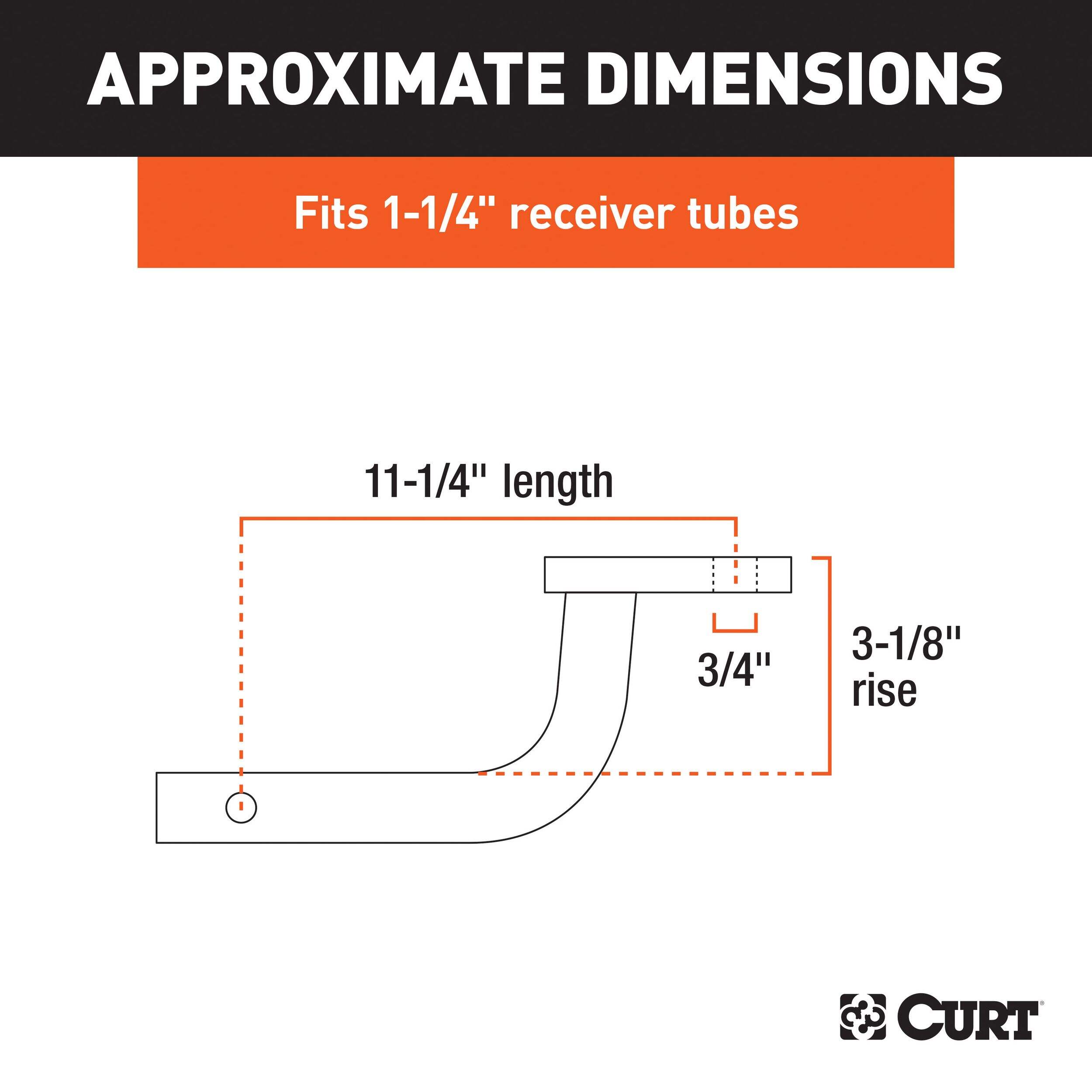 CURT class 2 ball mounts are designed to be fast, easy and reliable for your light-duty or standard-duty towing needs. We produce our class 2 ball mounts using state-of-the-art CNC machinery and robotic welding. This provides the accuracy and consistency in our ball mounts that we pride ourselves on and ensures that you receive the exact towing product you expect from an industry-leading manufacturer. Like our class 1 ball mounts, CURT class 2 ball mounts are all made with 1-1/4" x 1-1/4" shanks and have a 3/4" trailer ball hole. A CURT class 2 ball mount is an excellent choice for full-size sedans, minivans, crossover SUVs and other vehicles that commonly use a class 2 trailer hitch. They are ideal for towing small boat trailers and utility trailers, popup campers and some recreational vehicle trailers such as those used to haul dirt bikes, motorcycles and ATVs (NOTE: Never exceed the lowest weight capacity of any towing component; i.e. the vehicle, hitch, trailer, etc).This CURT class 2 ball mount has a gross trailer weight capacity of 3,500 lbs. and a tongue weight capacity of 350 lbs. It measures 11-1/4" long and has a rise of 3-1/8". To give our class 2 ball mounts the edge they need to go wherever the road takes you, we coat each one in a highly durable black powder coat that provides a long-lasting defense against rust, UV damage, scratching, scuffing and chipping.