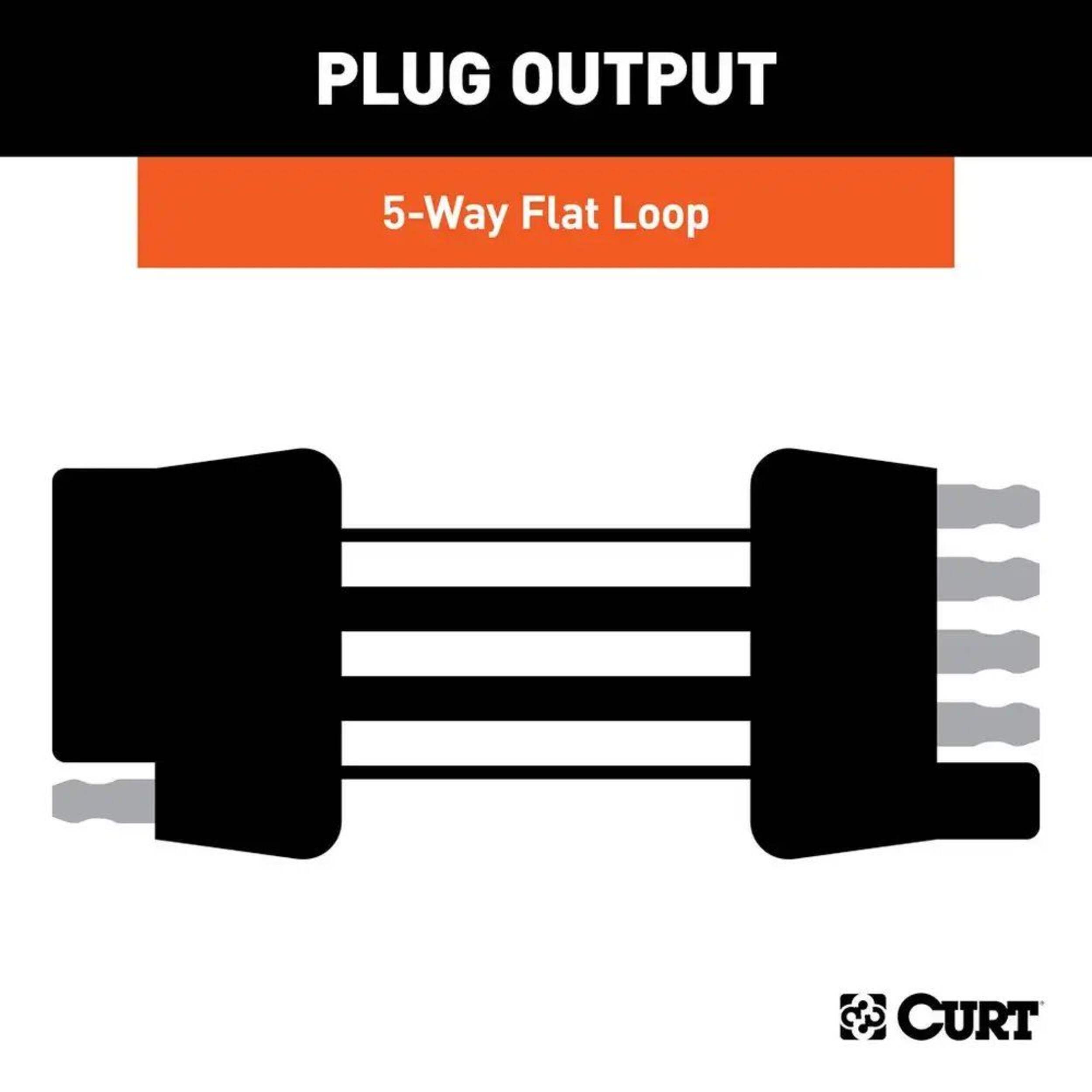 Like trailer hitches and ball mounts, electrical connectors range all over the board in shape, size and capability, but no matter what your trailer's electrical functions are, you need a solid connection to keep the power flowing and ensure safety on the road. CURT electrical connectors are designed and manufactured to give you a reliable connection every time you plug in your trailer. This 5-way flat connector is designed to supply power for tail lights, turn signals, reverse lights and brake lights, as well as a ground connection. It features durable rubber-molded construction and is made with 72" of standard color-coded, bonded loop wire to easily splice into your vehicle's wiring system. It includes both a vehicle-end and trailer-end connector and can be cut to splice into existing wiring or left as a loop to serve as a useful extension harness. 5-way flat connectors are commonly used on boat trailers with surge brakes.