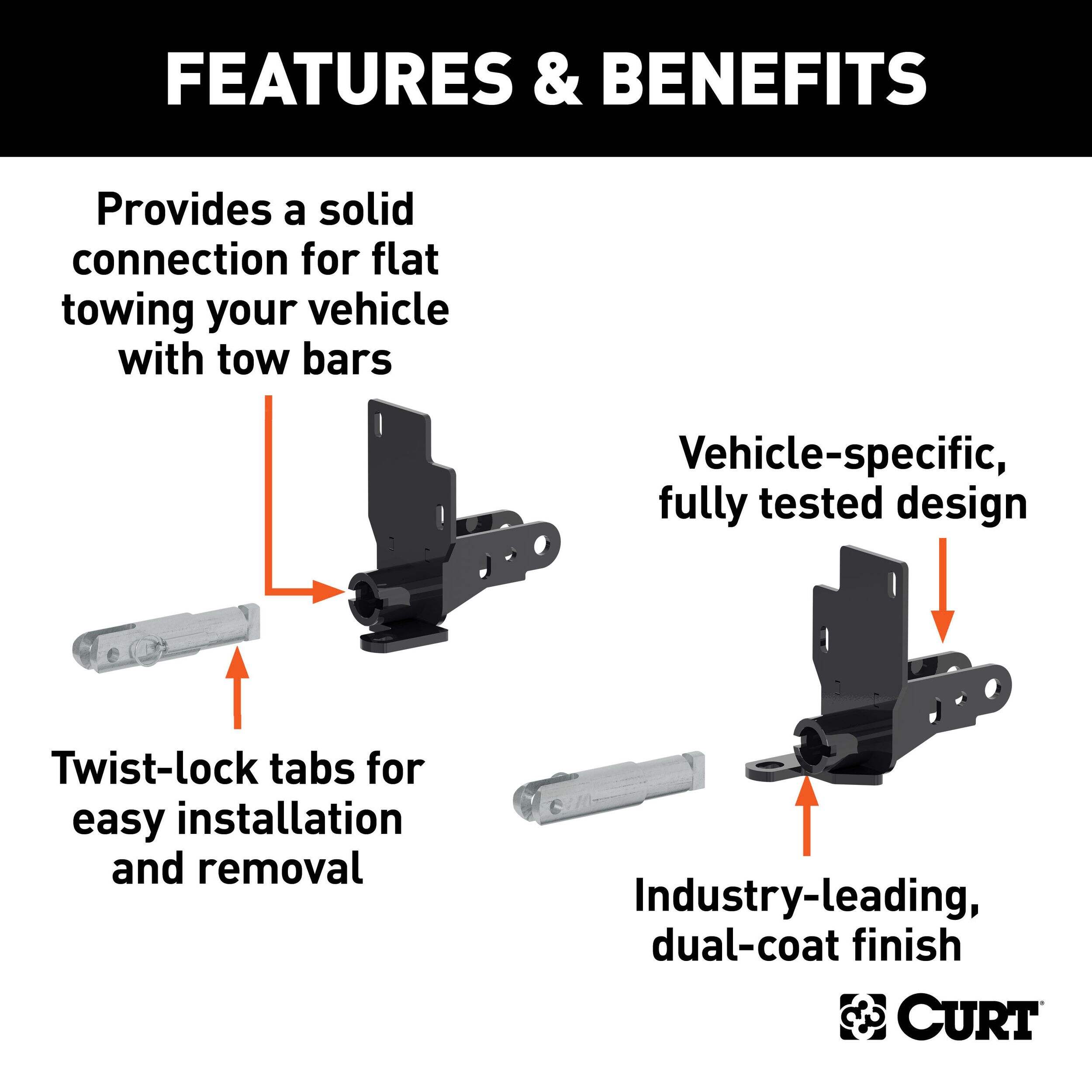 This CURT tow bar base plate for the Chevrolet Colorado and GMC Canyon offers a custom, vehicle-specific fit. It integrates with the vehicle frame, securely bolting into place and providing a solid attachment point for dinghy towing. This base plate fits select model years of the Chevrolet Colorado and GMC Canyon (verify fitment using the application info). The brackets are hidden to help maintain an OEM look and feel on the vehicle.