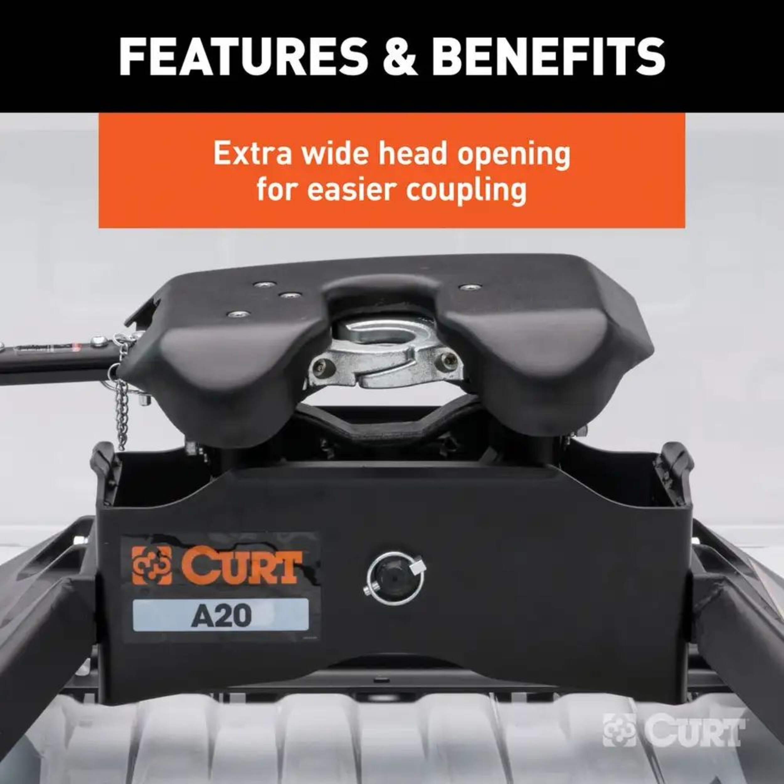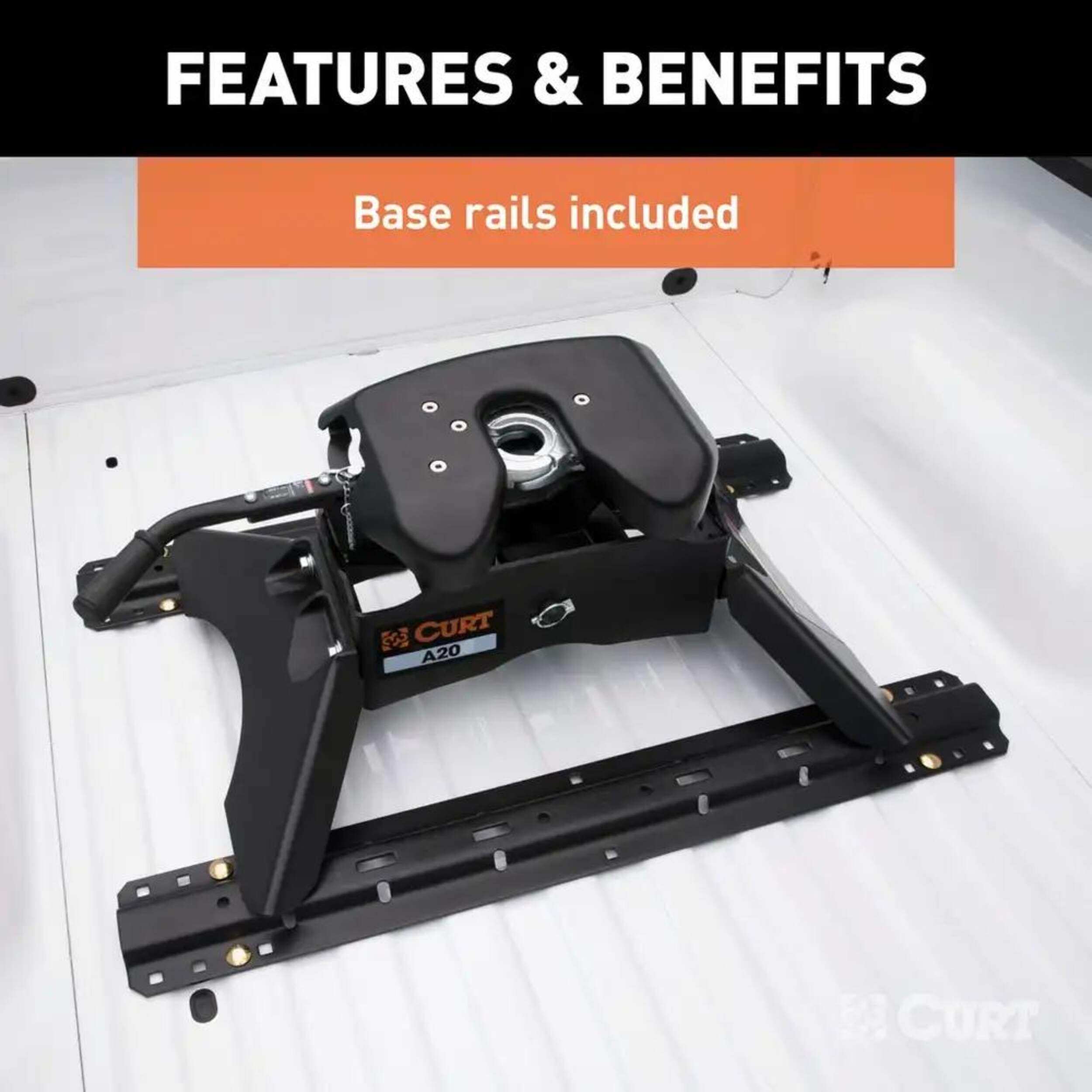 The CURT A20™ 5th wheel hitch offers smoother, quieter towing for your home-away-from-home, combining the patented technology of our A-series™, an easier mounting system and the power of a 20K 5th wheel hitch. Like our A16™ hitch, this 20K 5th wheel hitch uses a patented cast yoke to allow for unimpeded head movement, while providing exceptional stability for the trailer. The yoke has a set of poly-torsion inserts to suppress shock loads and reduce excessive noise, and the head features high-strength, interlocking jaws to give the trailer stability and the freedom to pivot and swivel as needed. The A20™ 5th wheel hitch is also engineered for easier installation. The legs are equipped with two pins to properly align with the mounting holes, and they have easy-access mounting bolts for ergonomic tightening. The 5th wheel head also has a fast, one-pin removal system to make installation and removal from the truck bed easier. This 20K 5th wheel includes a set of industry-standard 5th wheel rails to mount onto custom 5th wheel brackets (brackets sold separately). Once installed, the A20™ is fast and simple to operate. It features an extra-wide head opening to increase the coupling area for the trailer, and it has a lockable, single-throw handle that self-resets to the ready-to-couple position after uncoupling. To make coupling even easier, it is equipped with a coupling indicator that is visible from the truck cab. The indicator shows the status of the connection and eliminates the need for you to check multiple times while coupling. To protect the A20™ 5th wheel hitch against rust, wear and whatever other threats might impede your cross-country tour, it comes with a black carbide powder coat finish and a limited lifetime warranty. We also test the A20™ for safety in accordance with SAE J2638 to ensure reliability for the road ahead.