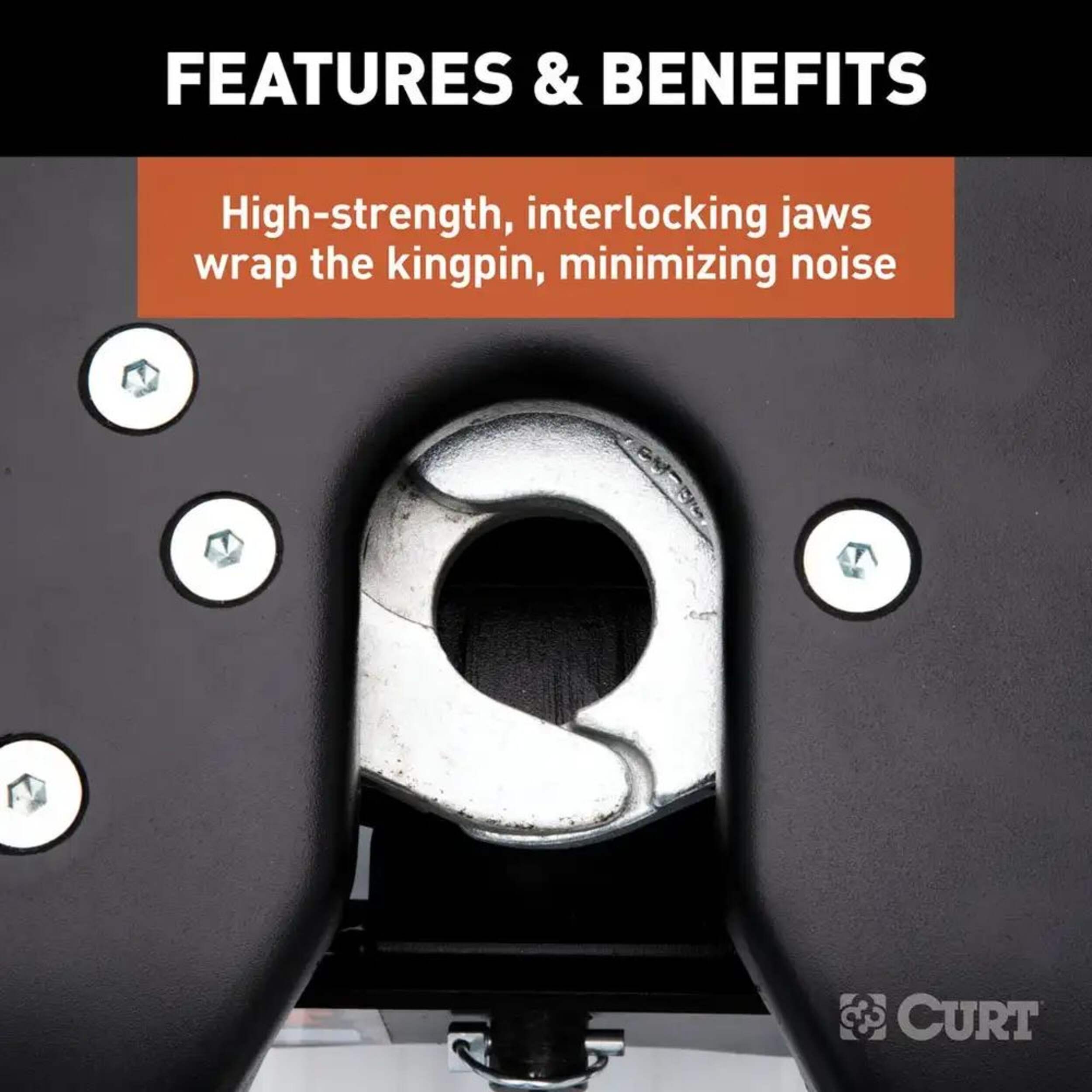 High-strength, interlocking jaws fully wrap the kingpin to minimize noise