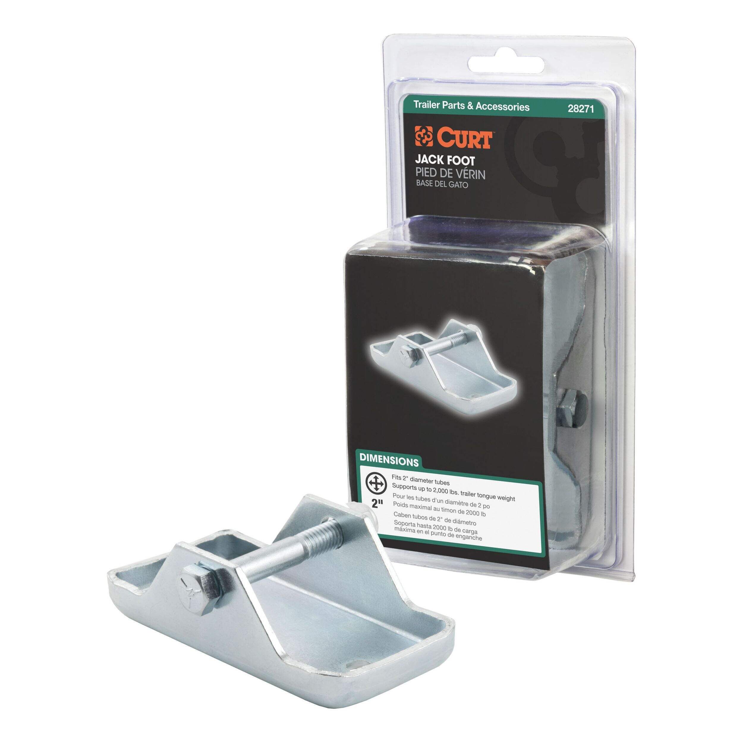 In our goal of being your best source for all things towing, the CURT line of trailer jacks is designed with care and manufactured with pride. CURT jacks are made with quality to promote the life and function of your trailer, and they come in several different styles to accommodate your needs, whether you are a frequenter of the boat landing, the campground, the racetrack or the field. Add stability and support to your trailer jack and trailer with a CURT jack foot. This hardy steel jack attachment features a simple bolt-on mounting system and can be used on a number of CURT jacks and many competitive models. It offers a weight capacity of 2,000 lbs. It does not matter what kind of trailer you tow -- a boat trailer, utility trailer, livestock hauler or recreational vehicle trailer -- if you have a receiver-style trailer, you will want a jack that complements its function. For a trailer jack that will not steer you wrong, CURT has the answer.