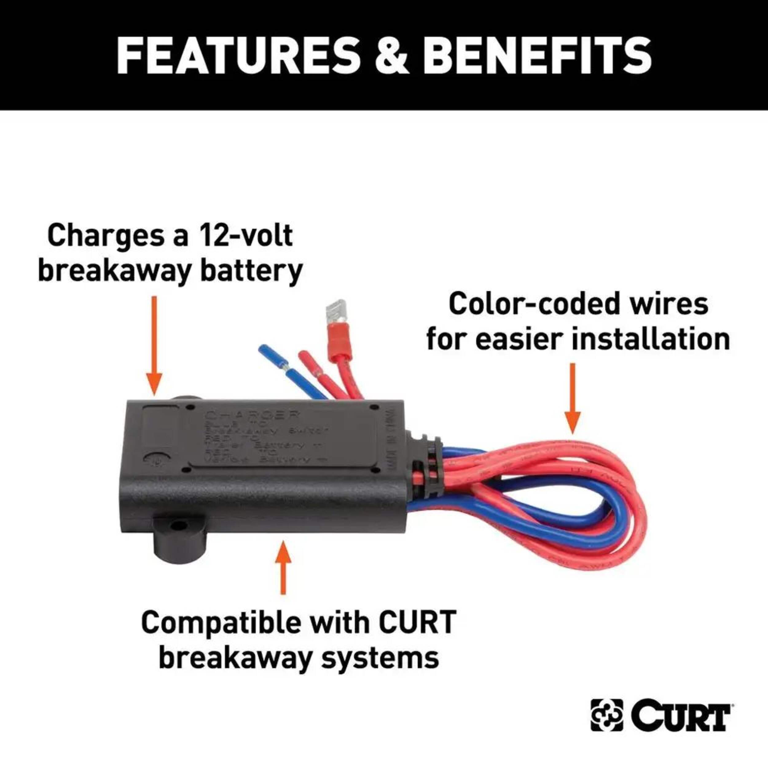 For any and all types of trailers with electric trailer brakes, a CURT breakaway kit provides you with the equipment you need to be prepared. We offers three different complete breakaway systems to accommodate various trailer sizes and meet your specific towing needs. All of our breakaway kits are tested for your safety and meet DOT requirements for holding and breakaway situations. This replacement breakaway battery charger is compatible with CURT Soft-Trac 1 and Soft-Trac 2 rechargeable batteries. It offers 12 volts and helps maintain long-lasting breakaway battery usage. Nobody hitches up a trailer expecting a breakaway, but that doesn't mean you should tow unprepared. Be ready for anything with a CURT breakaway kit.