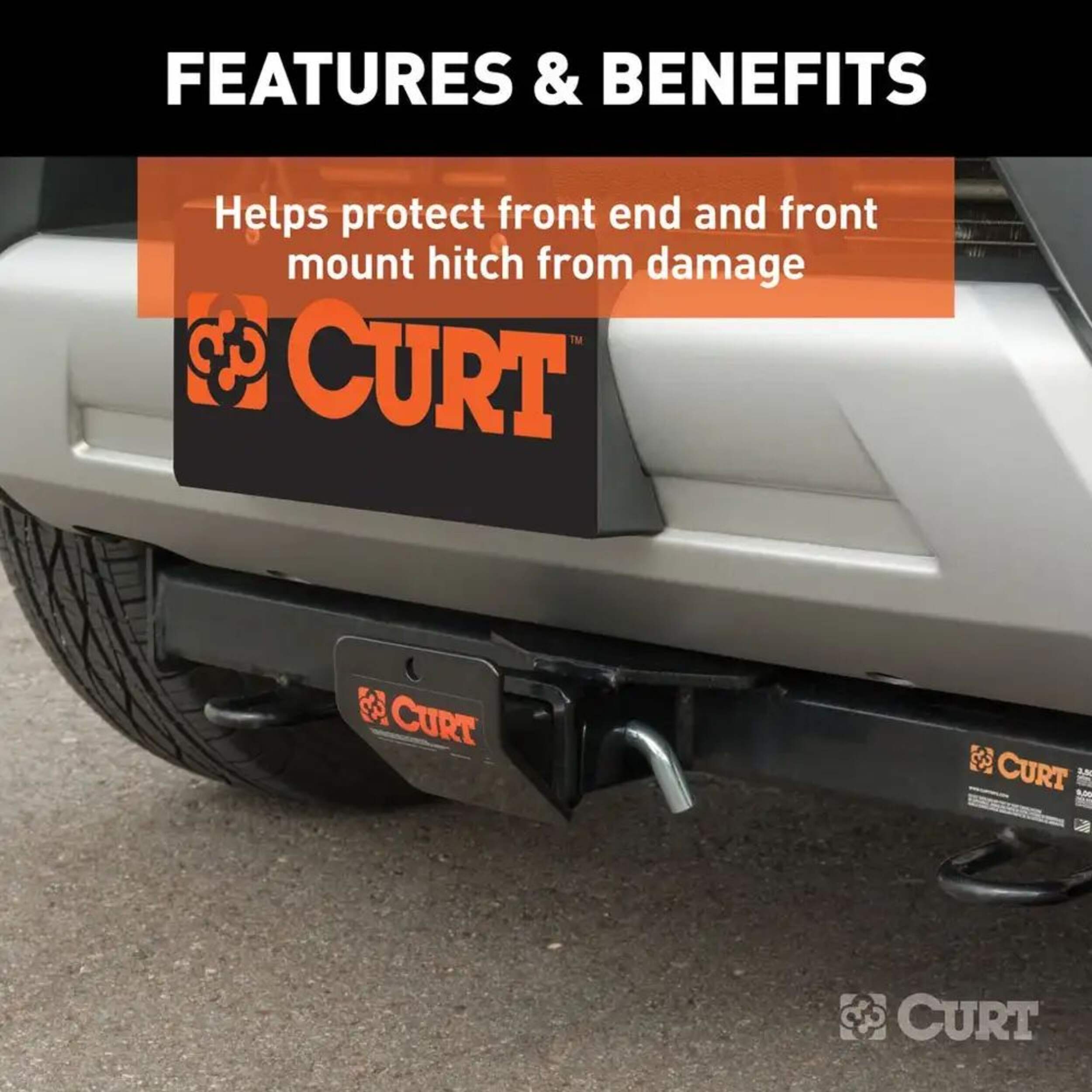 CURT front mount accessories are a unique line of towing accessories that maximize the usefulness of your tow vehicle and give you that added edge on and especially off the road. A CURT front mount trailer hitch is the first step in making your vehicle the ultimate towing machine, and with it comes a variety of towing possibilities you might not even know exist. The CURT skid shield is designed to mount onto your front-mounted trailer hitch and protect the receiver and the underside of your vehicle against rock and obstacle damage. The skid shield is especially useful for off-roading to protect the engine and other systems located near the front end of your vehicle. It is made from solid steel and is coated in a durable gloss black powder coat finish to resist rust and scratches.