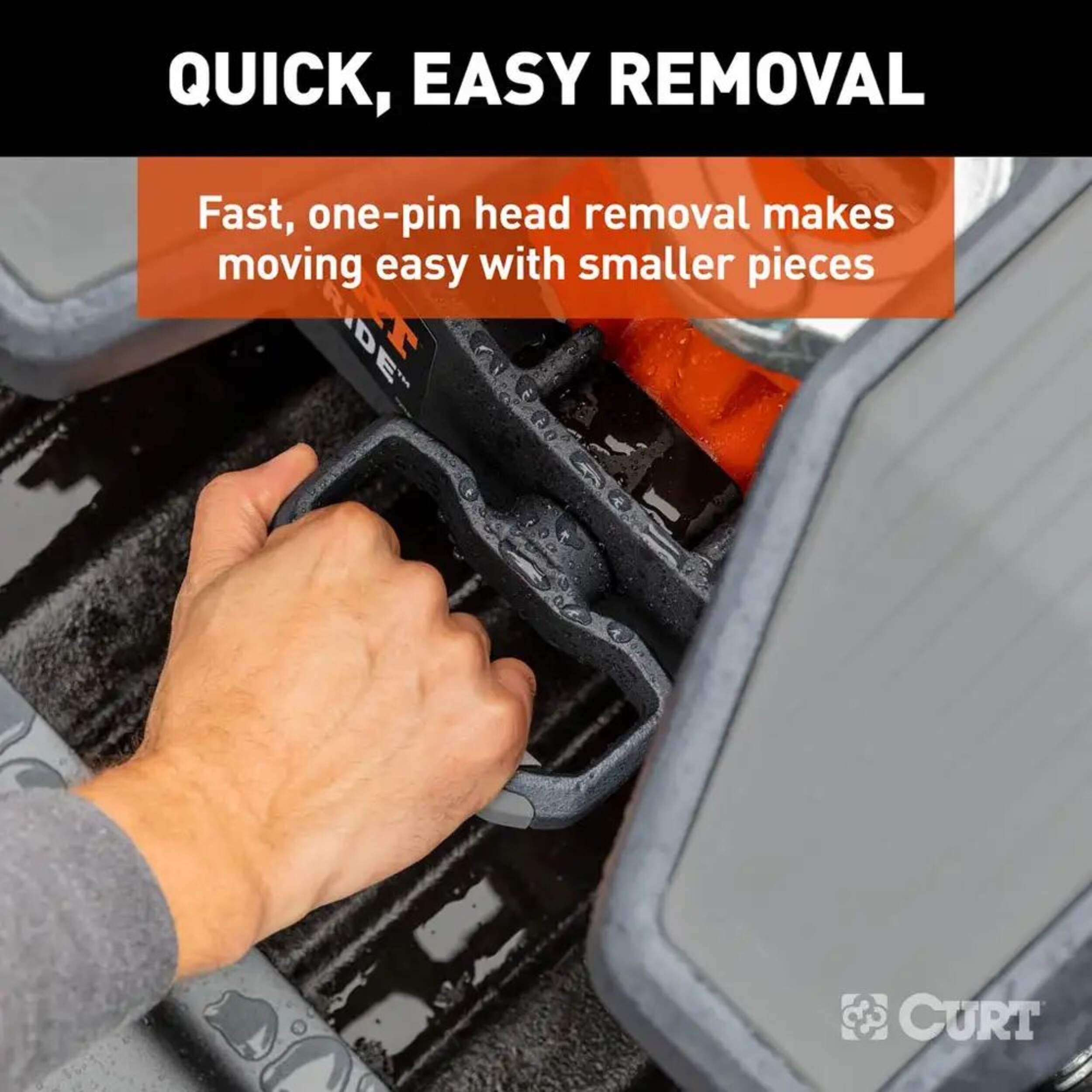Get professional-grade 5th wheel towing power with the CURT PowerRide™. This 30K 5th wheel hitch is engineered to give you industry-leading 5th wheel capacity with ergonomic operation. Some of its advanced features include a self-resetting handle, multi-directional head, one-pin head removal and strategic grip points for easier mobility. It is also fully tested according to SAE J2638 specifications for safety. The CURT PowerRide™ 30K 5th wheel hitch is designed for ease of use while having the capability to tow the largest 5th wheel trailers. It begins with a self-resetting handle and coupling indicator. The sophisticated handle self-resets after uncoupling your trailer, making it ready to couple again, without an extra step. The handle is also easier reach and operate from the side of the truck. The color-coded indicator shows the coupling status, giving you better eyes on the towing connection without having to frequently climb in and out of the truck bed (verify connection before towing). The head of the PowerRide™ 5th wheel trailer hitch is comprised of a cast steel yoke that tilts in multiple directions -- not just front to back -- promoting a smoother ride and quieter connection. The hitch has a cast steel body for exceptional strength and operating precision, and it uses two interlocking jaws to fully wrap the kingpin for less chucking. To ensure long-lasting use, the 5th wheel plate is equipped with wear indicator plates. These indicators also contribute to smoother towing and eliminates the need for messy grease. Installing the PowerRide™ and relocating it for storage is made easier with several unique design enhancements. The head assembly is attached with a single pin, allowing you to quickly dismantle the hitch into smaller, lighter-weight components for easier handling.