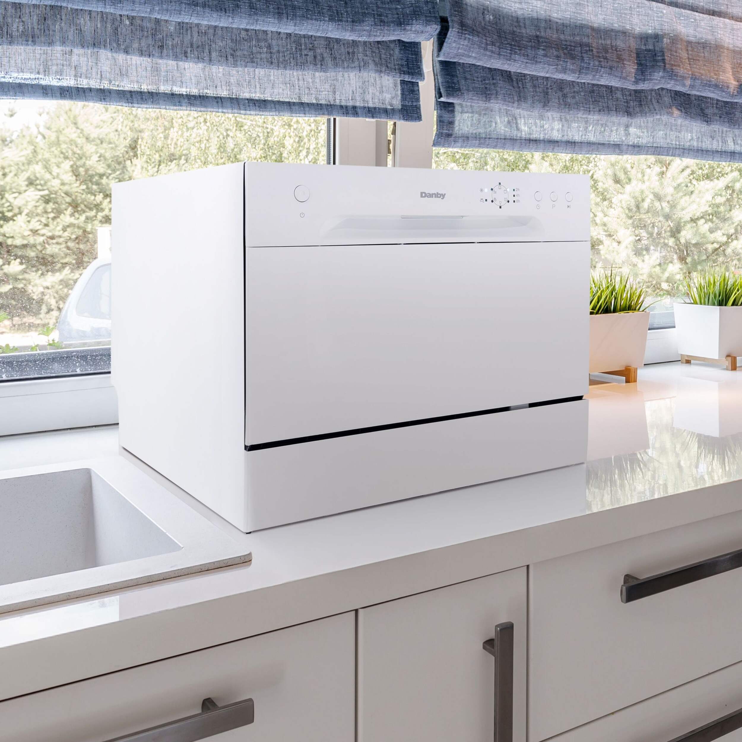 Washing up has never been easier than with this compact Danby Countertop Dishwasher. Using only 3.1 gallons (11.7 liters) of water per normal cycle, it’s efficient and eco-friendly. Choose from six programmable settings, easily controlled and monitored on a sleek LED display. With quick installation, simply hook it up to any kitchen tap for fast setup. Plus, the durable stainless-steel interior keeps it effortlessly clean, while its slim design fits neatly under most kitchen cabinets.