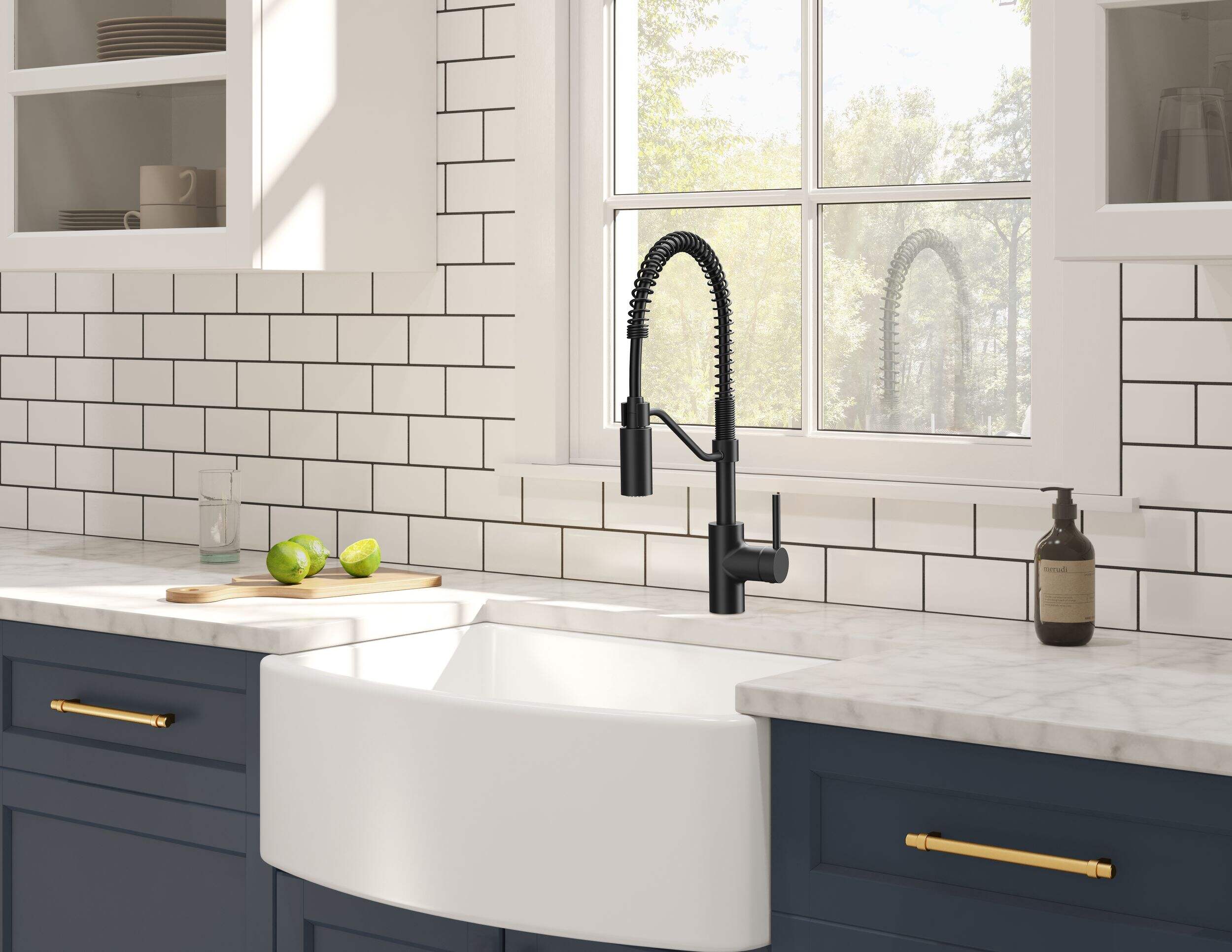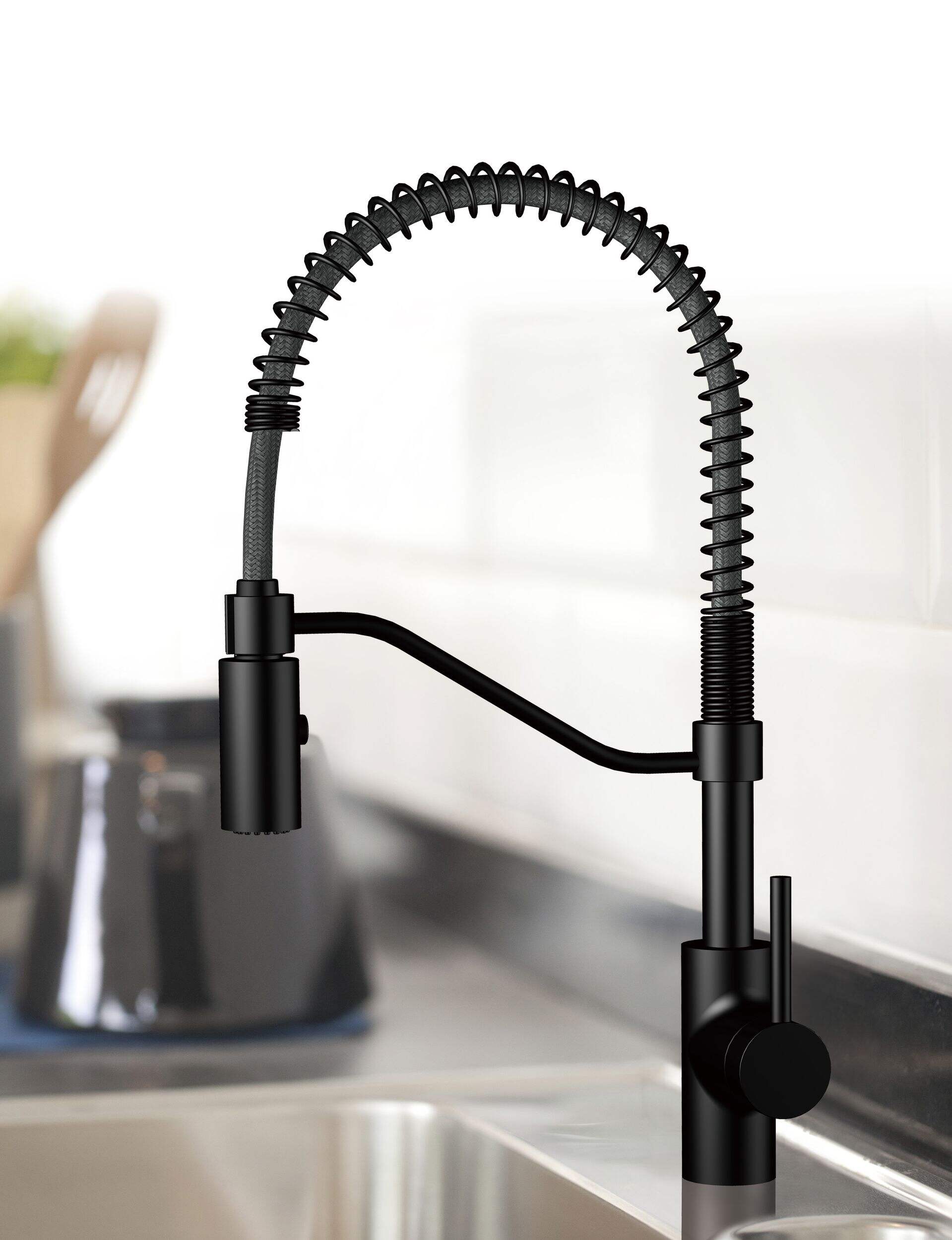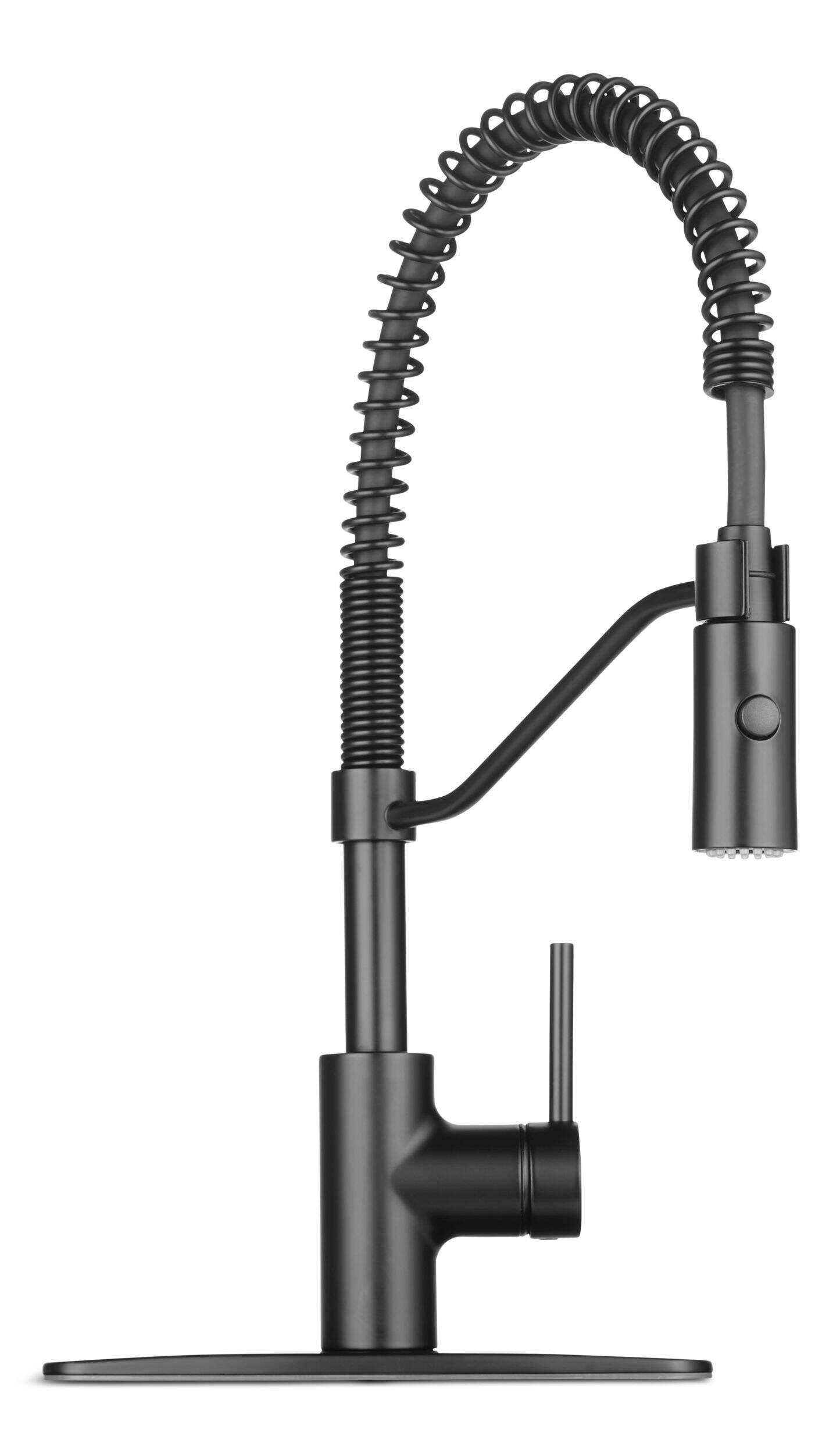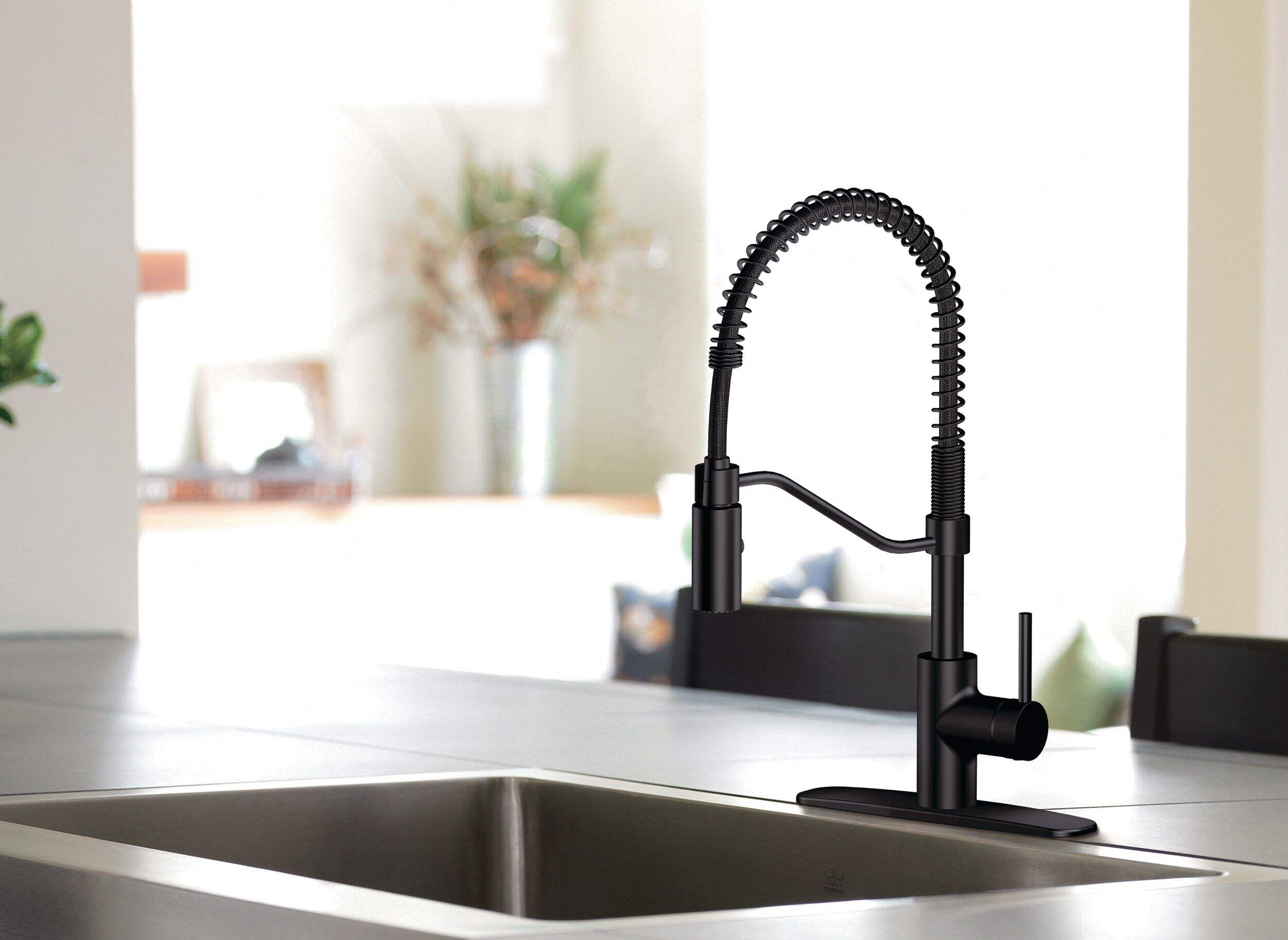 This Danze Jasper Kitchen Faucet adds sophisticated style to your kitchen. Featuring a single handle design and matte black finish, this faucet offers seamless use with a minimalistic look that blends in effortlessly with your existing appliances, finishes and decor. This single-handle kitchen faucet also has a drip-free design and has different functionalities, so you can fill pots and clean up with ease.