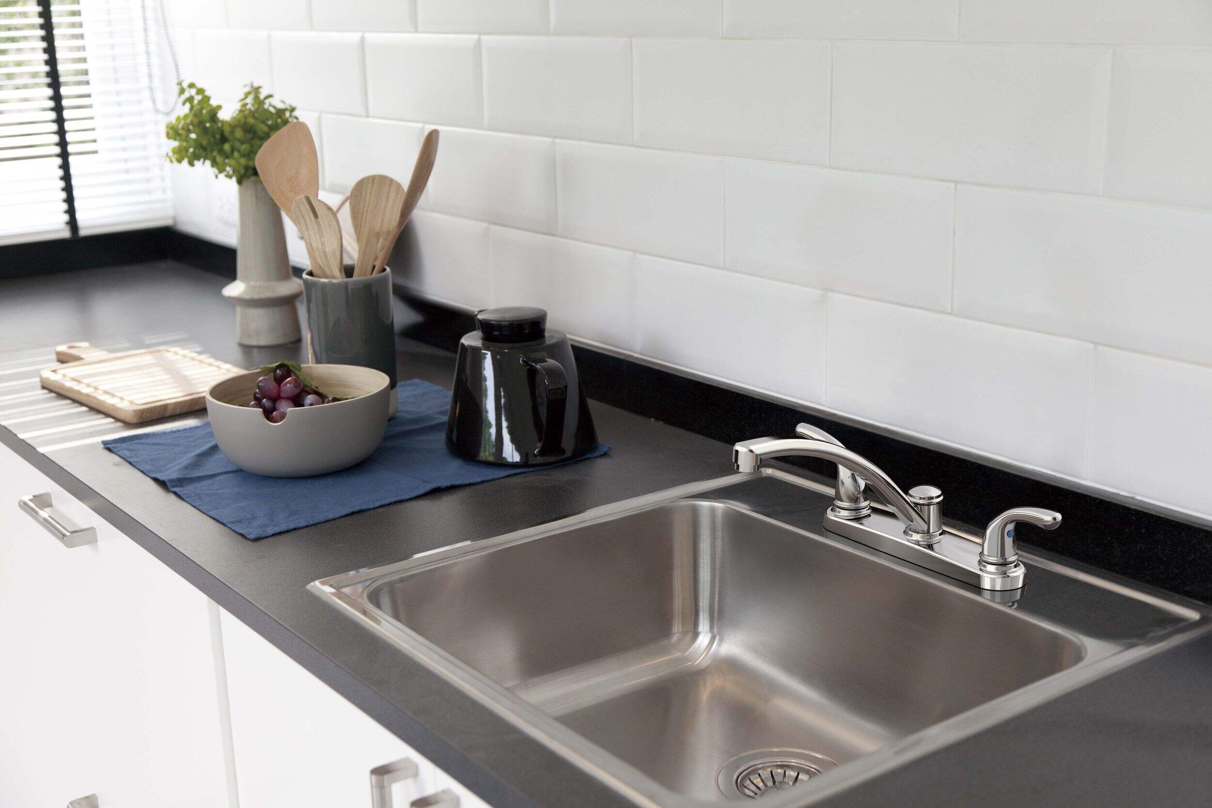The Danze Renovate Double Handle Kitchen Faucet enhances both style and functionality in your kitchen. Designed for 3-hole sinks with an 8-in centre, this faucet offers precise control with its dual handles, making everyday tasks like filling pots or washing dishes a breeze. With its modern design, this faucet is a practical and attractive addition to your kitchen, offering reliable performance and a timeless look that complements a variety of styles.