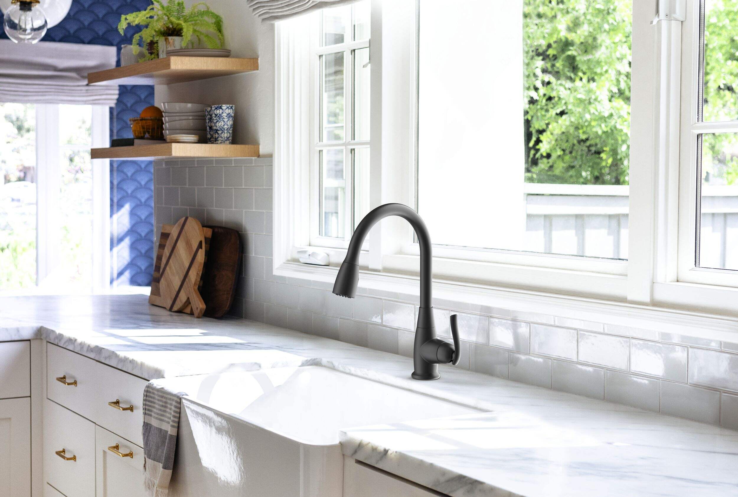Give your kitchen a wow factor with the stunning look of the Danze Terrazo 1-Handle Pull Down Kitchen Faucet. This black matte kitchen faucet adds a stylish, modern look to your kitchen with functional features that help make your kitchen work easier than ever. The unique design of the Terrazo includes a high arc faucet for easier filling, and provides a strong steady flow of water, a handy spray function and water conservation features.