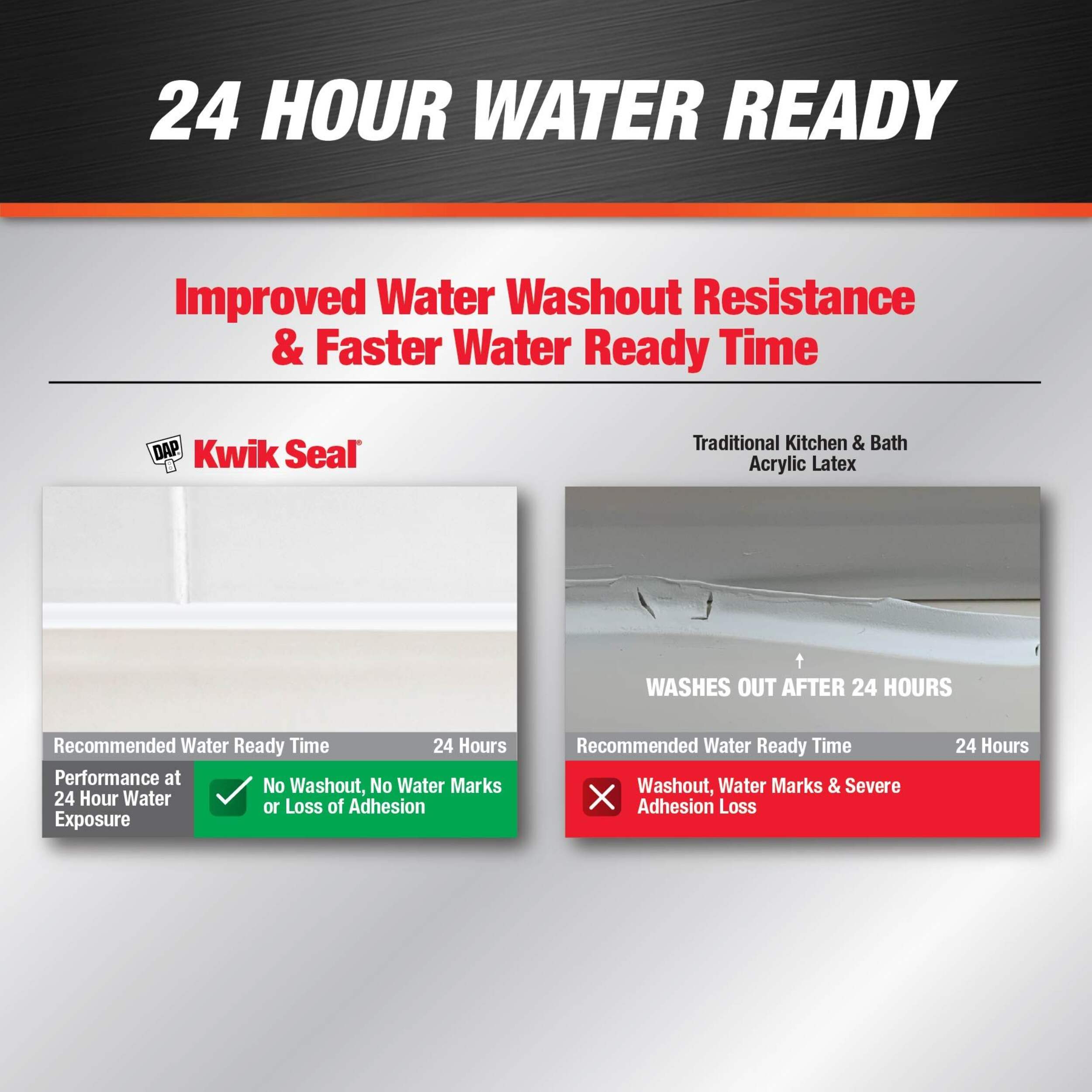 DAP® KWIK SEAL® Kitchen & Bath Adhesive Caulk is 100% waterproof seal
