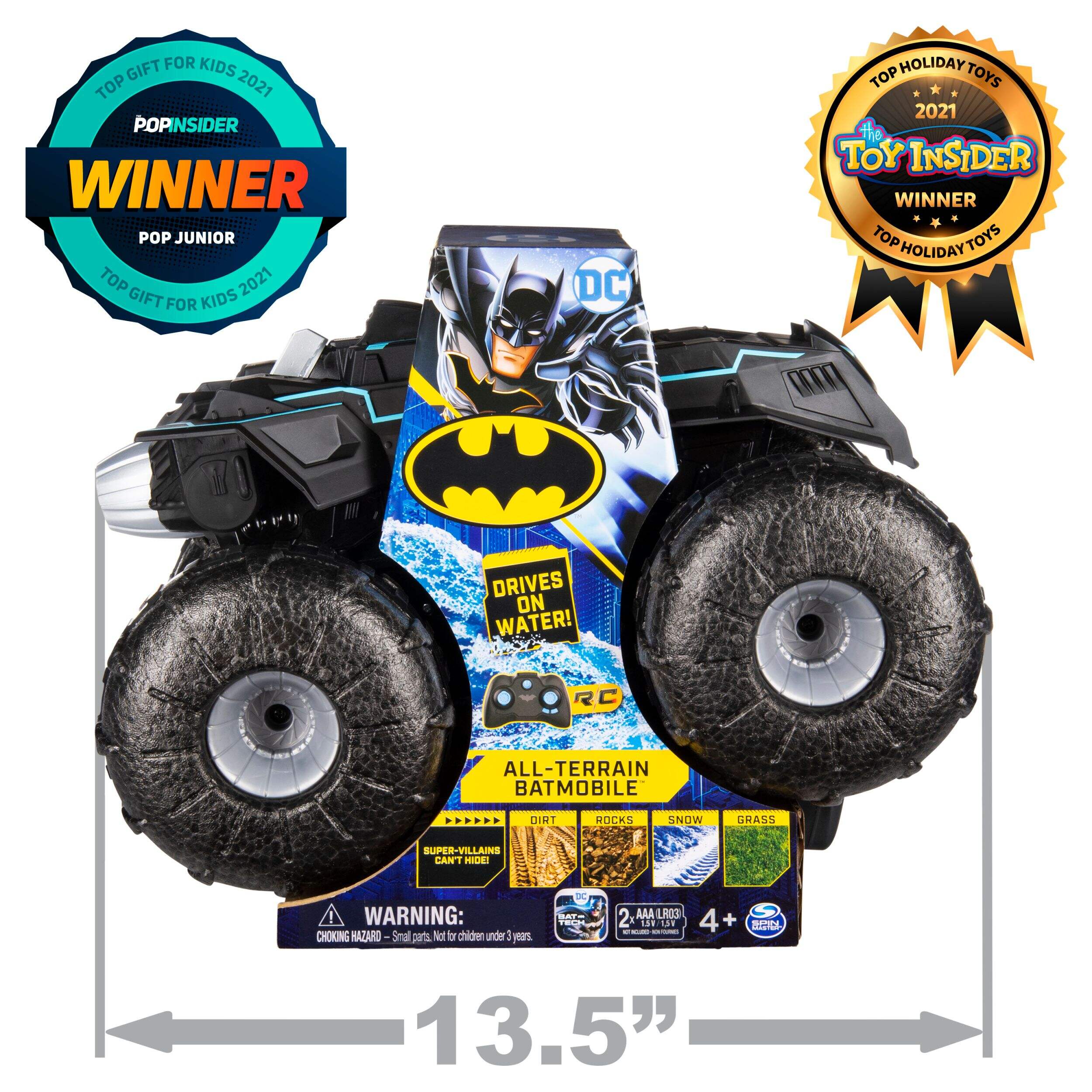 • DRIVE ON WATER: Features water-resistant design and custom performance tires, All-Terrain Batmobile powers through water with ease! You can drive from land to water and keep on going!
