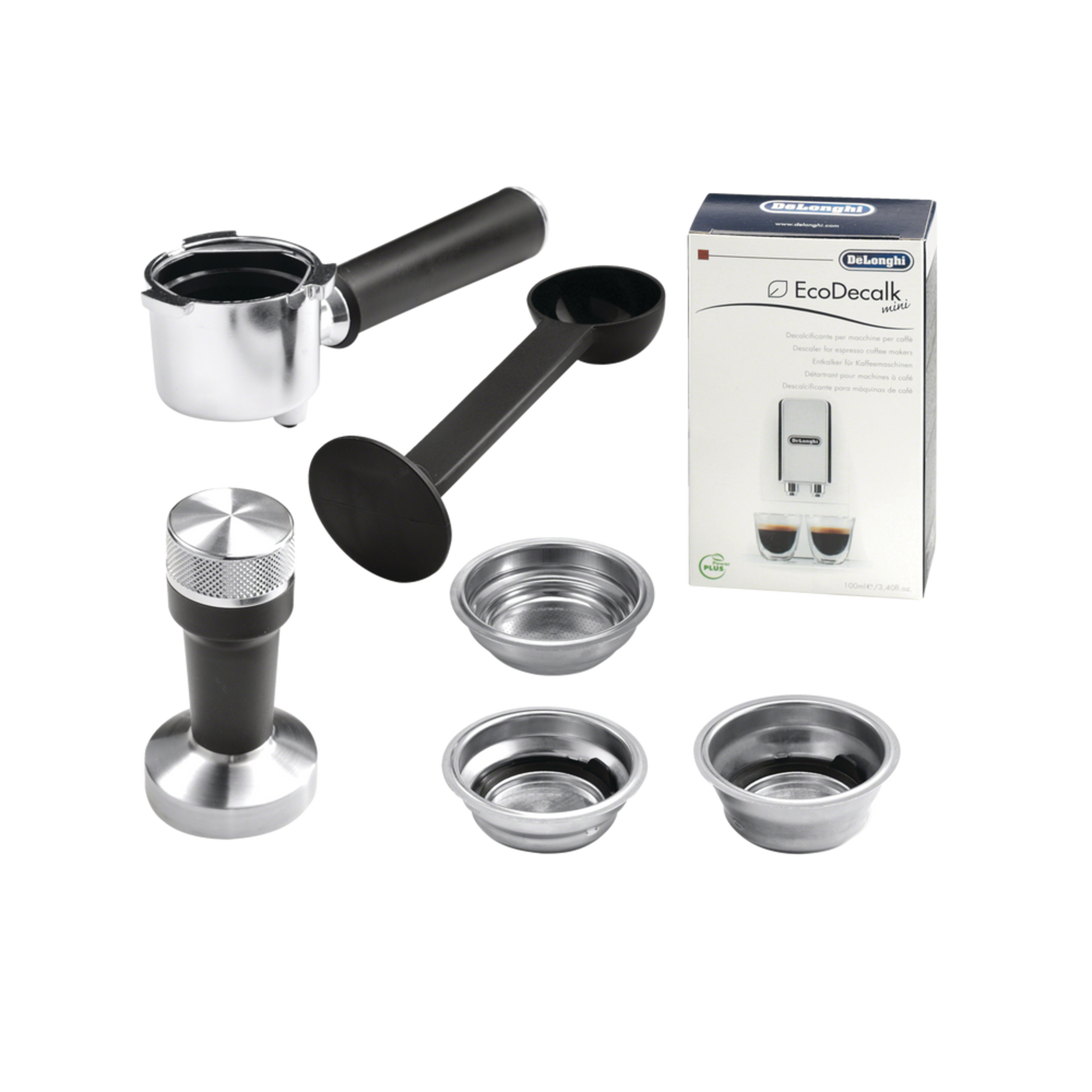 Professional tamper and a large filter basket accommodates up to 18 g (0.63 oz) of ground coffee