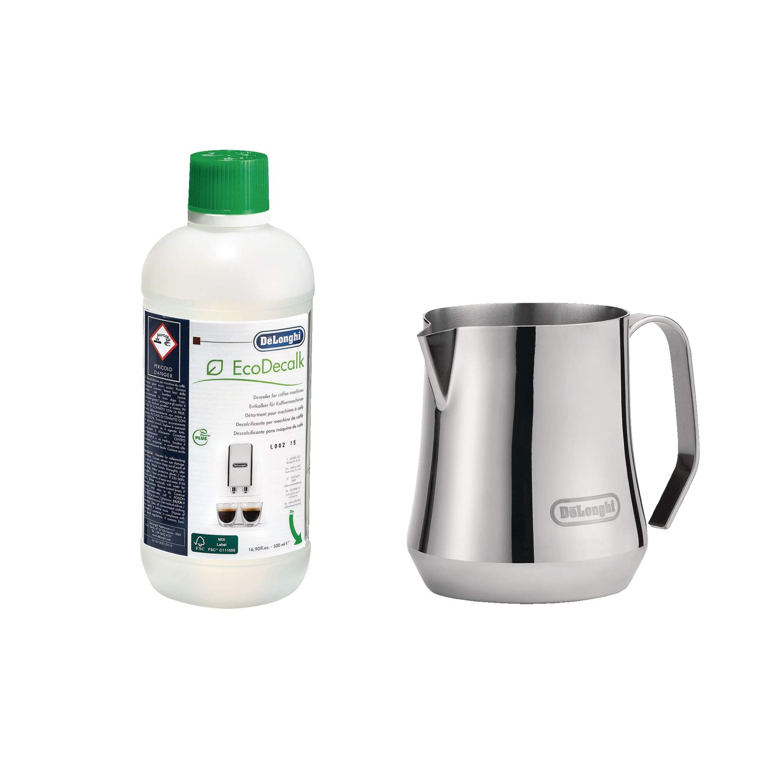 DeLonghi Brushed stainless steel milk frothing jug (12 oz/350 ml) is suitable for all milk types. Finished in a luxurious brushed stainless steel, this little jug is the perfect accessory to use when steaming or frothing milk because you can feel the temperature on the underside of the jug whilst frothing.