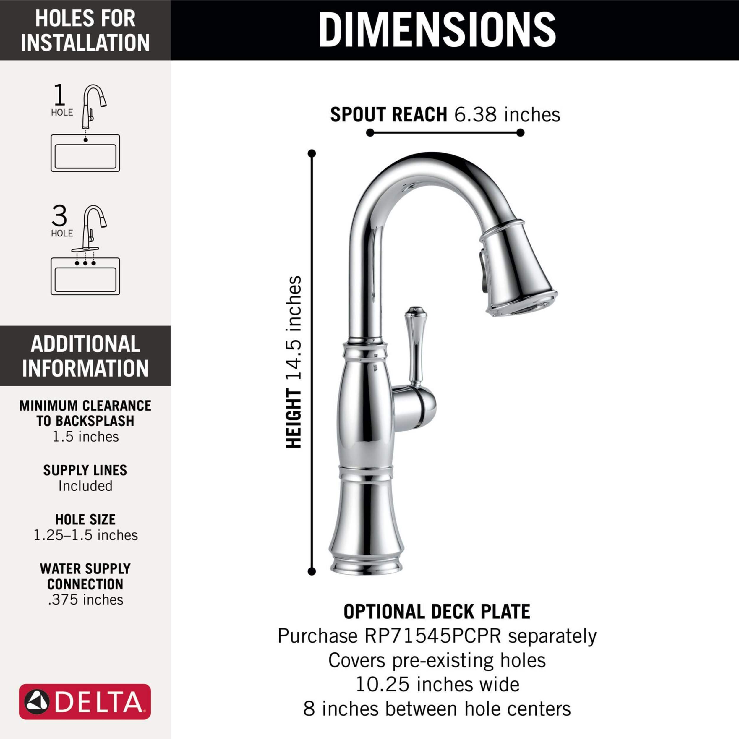 1 or 3-hole 8" (20.3 cm) installation