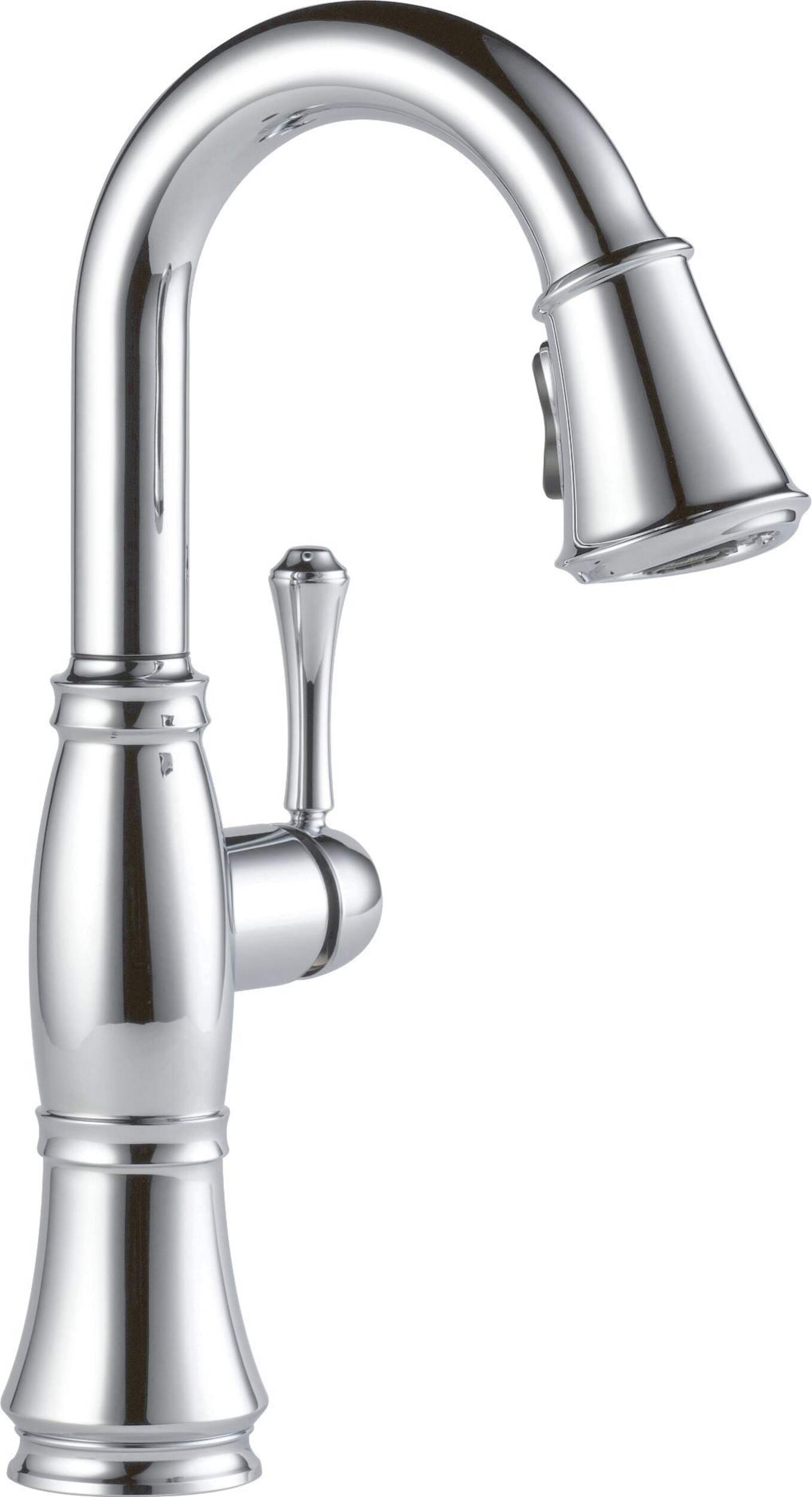 Delta 1-Handle Pull-Down Bar/Prep Faucet Lumicoat with MagnaTite® Docking uses a powerful integrated magnet to snap your faucet spray wand precisely into place and hold it there so it stays docked when not in use and doesn’t droop over time