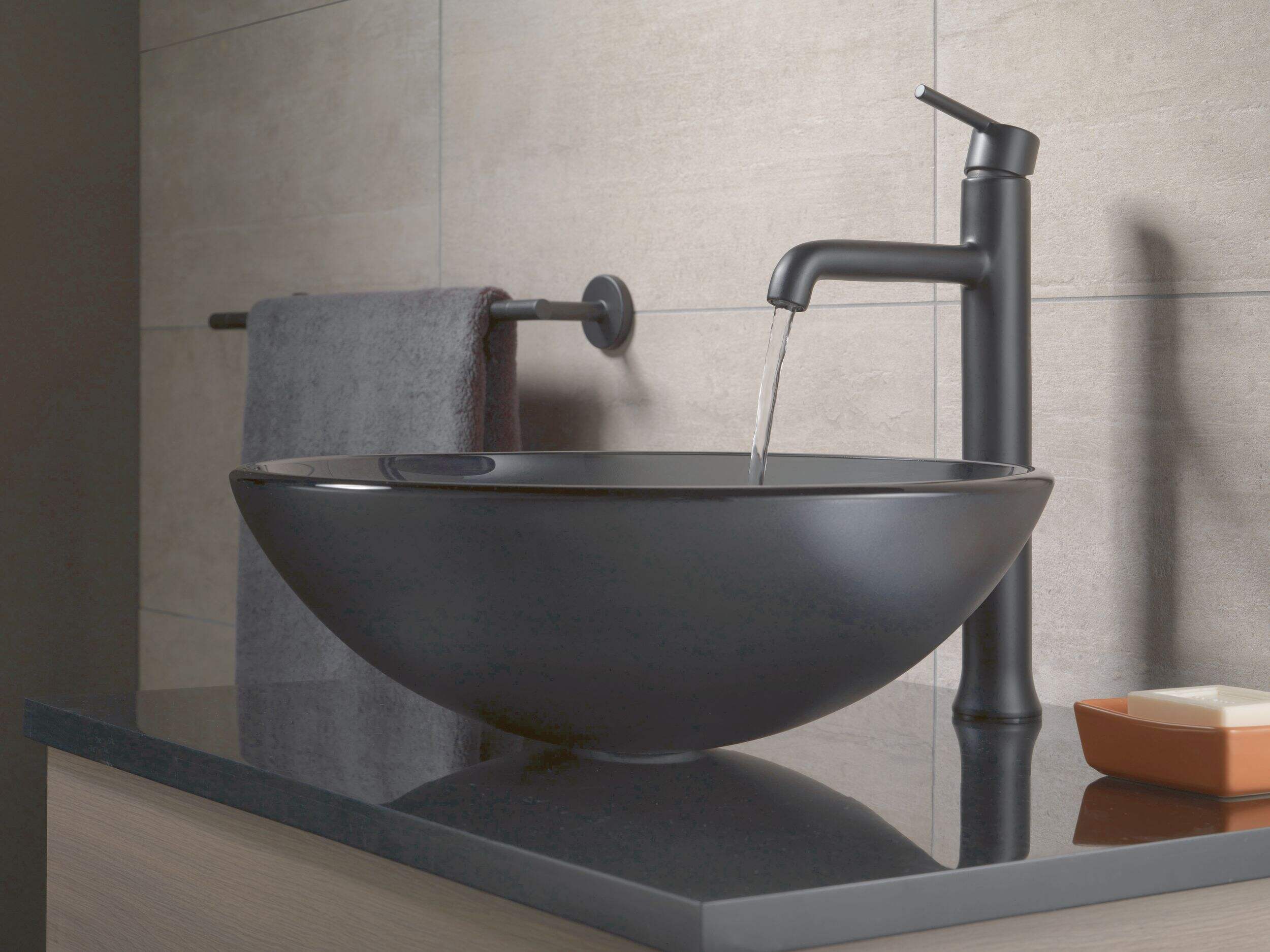 Delta 1-Handle Vessel Lavatory Faucet features a 1 or 3-hole 4" (10 cm) installation