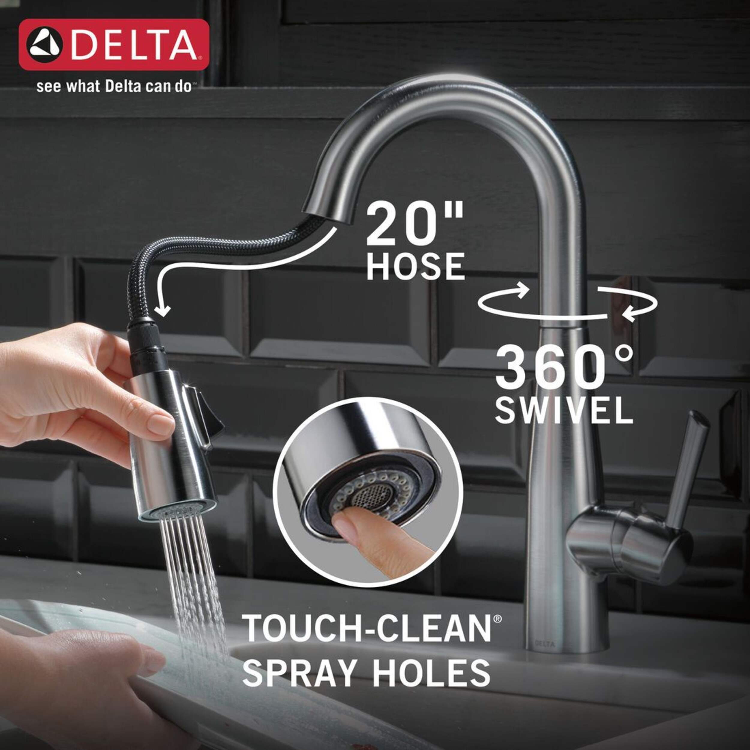 Delta® MagnaTite® Docking uses a powerful integrated magnet to pull your faucet spray wand precisely into place and hold it there so it stays docked when not in use. Delta® faucets with DIAMOND™ Seal Technology perform like new for life with a patented design which reduces leak points, is less hassle to install and lasts twice as long as the industry standard*. Kitchen faucets with Touch-Clean® Spray Holes allow you to easily wipe away calcium and lime build-up with the touch of a finger. You can install with confidence, knowing that Delta faucets are backed by our Lifetime Limited Warranty. *Industry standard is based on ASME A112.18.1 of 500,000 cycles.