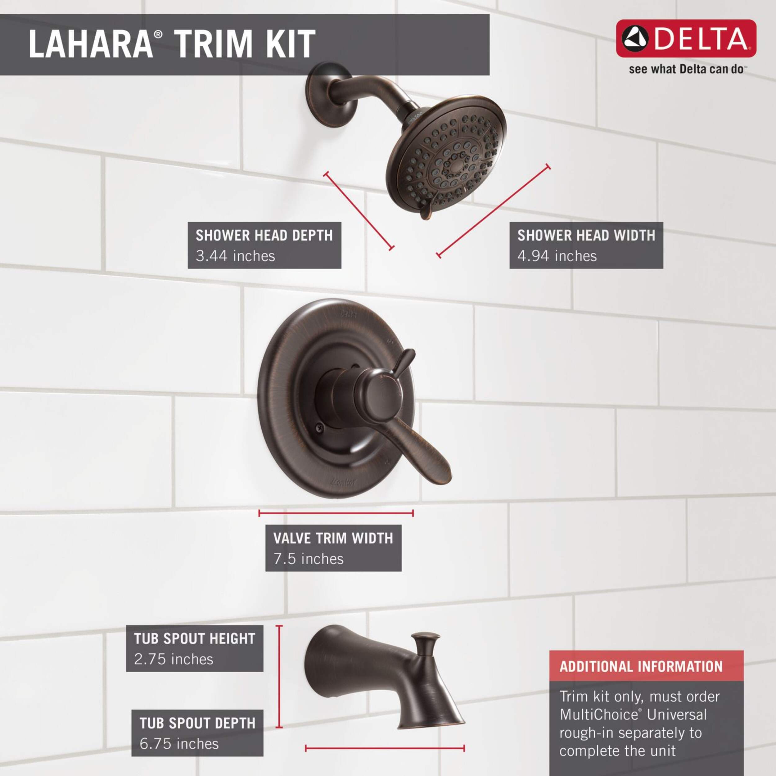 Delta Lahara® Tub & Shower Trim features an elegant, curved design that provides a decorative look throughout the bath