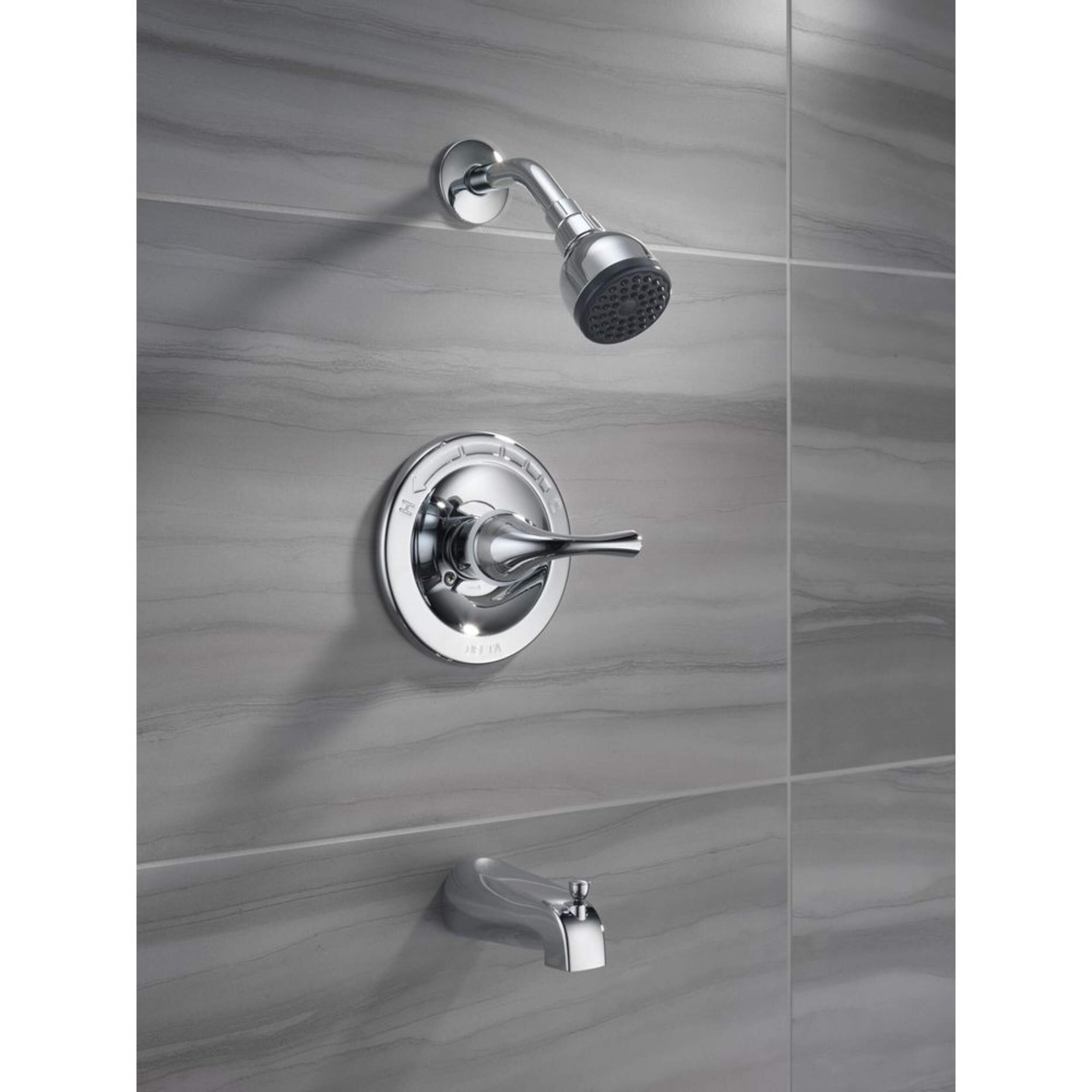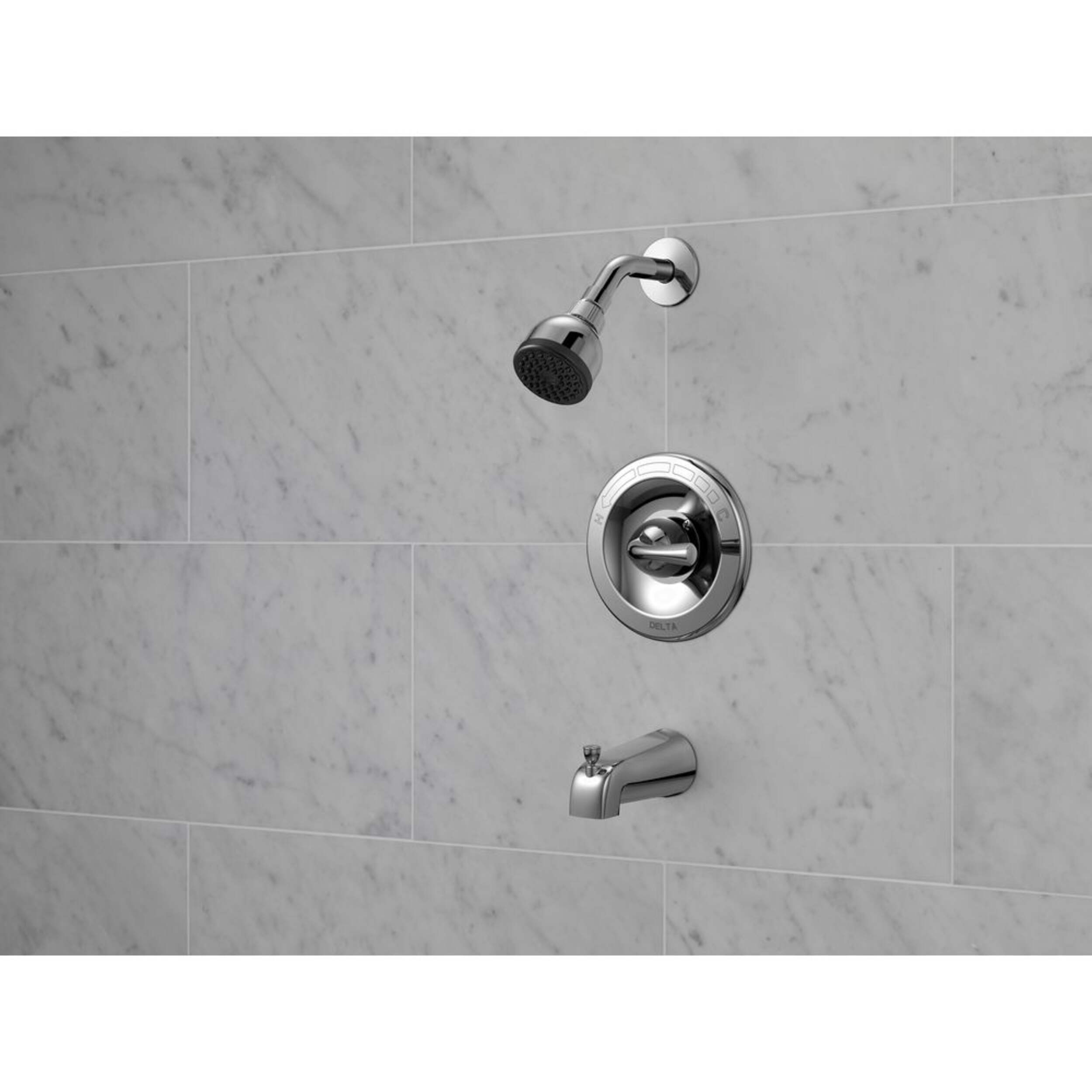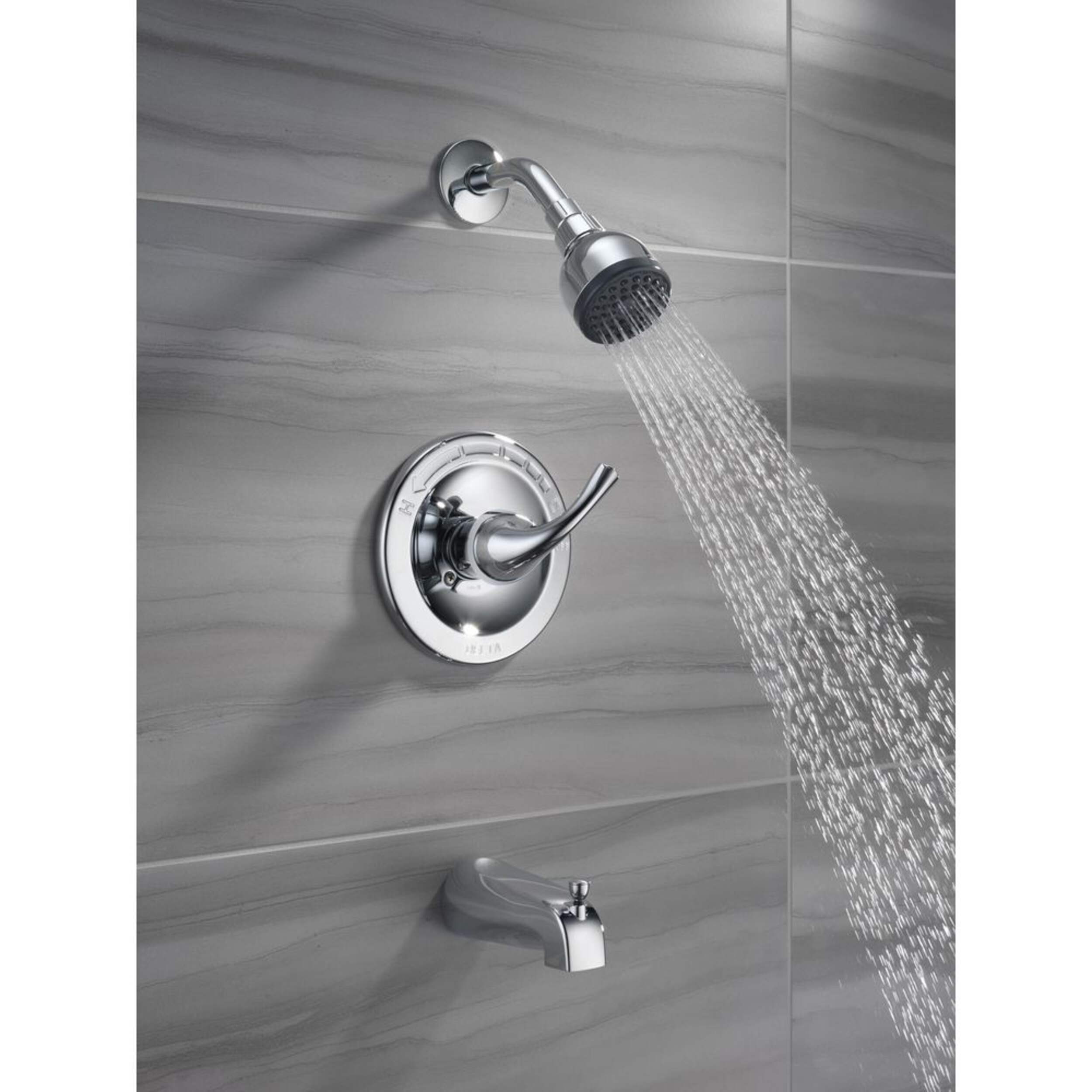The Delta Faucet Principals Single Handle Pressure Balanced Bathtub & Shower Trim Kit features clean curves and a clean chrome finish that enhances any bathroom décor. Its versatile design complements both contemporary and vintage styles. Designed for efficiency, this trim kit transforms your daily routine into a luxurious experience while promoting water conservation. It's a stylish and practical trim kit that reflects your personal taste and elevates your space.