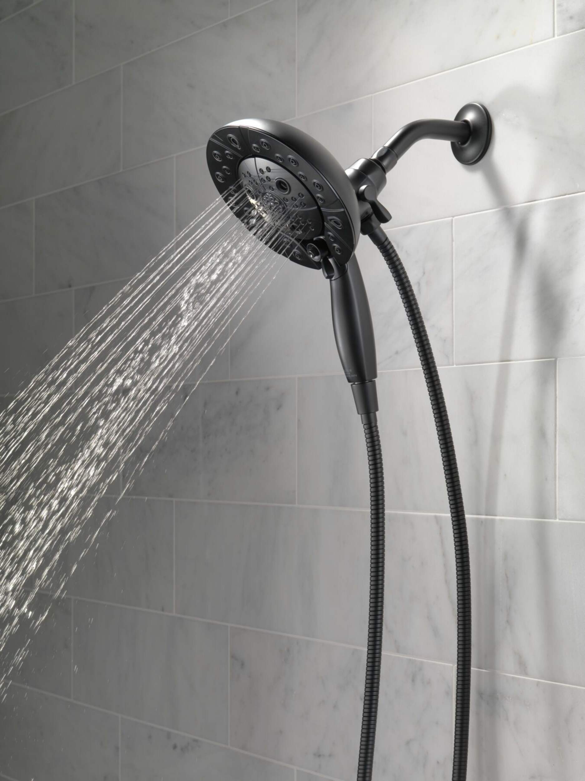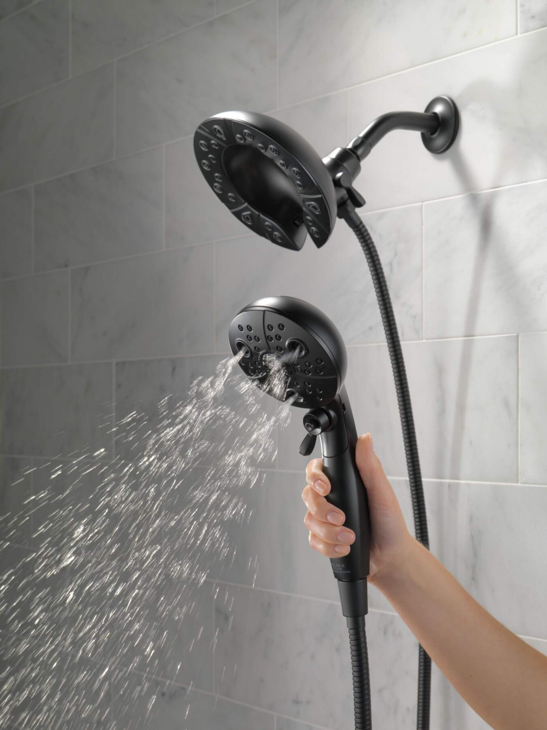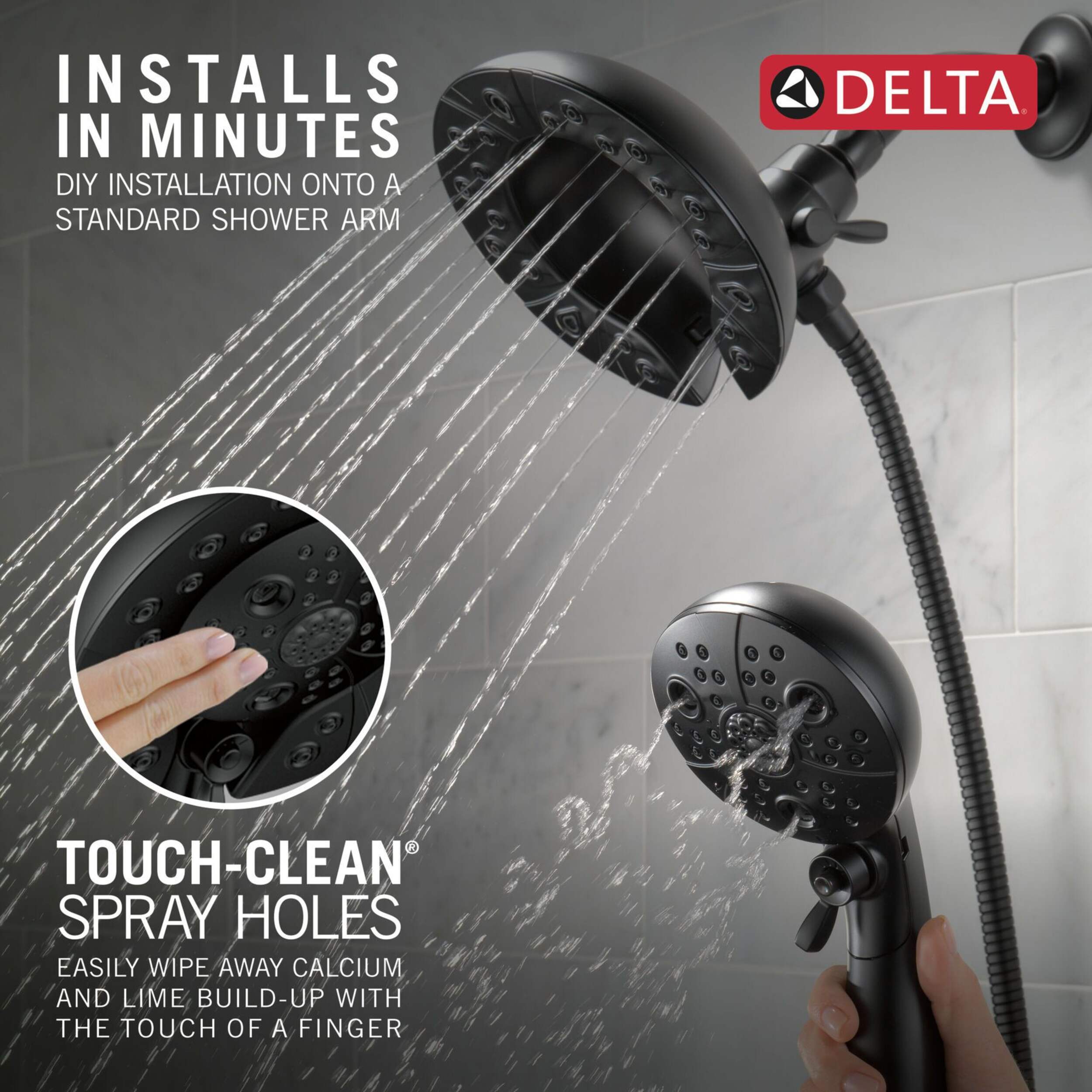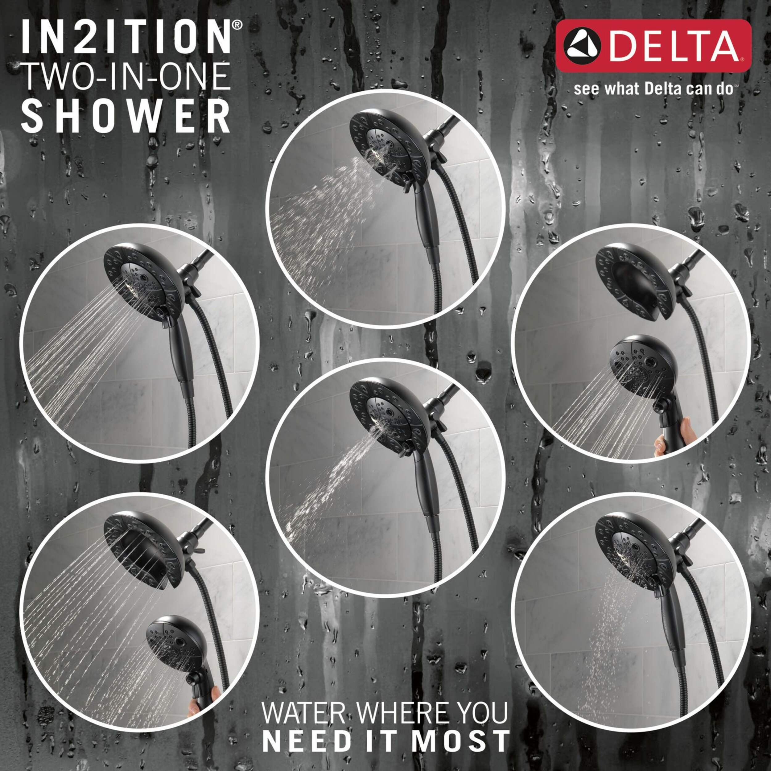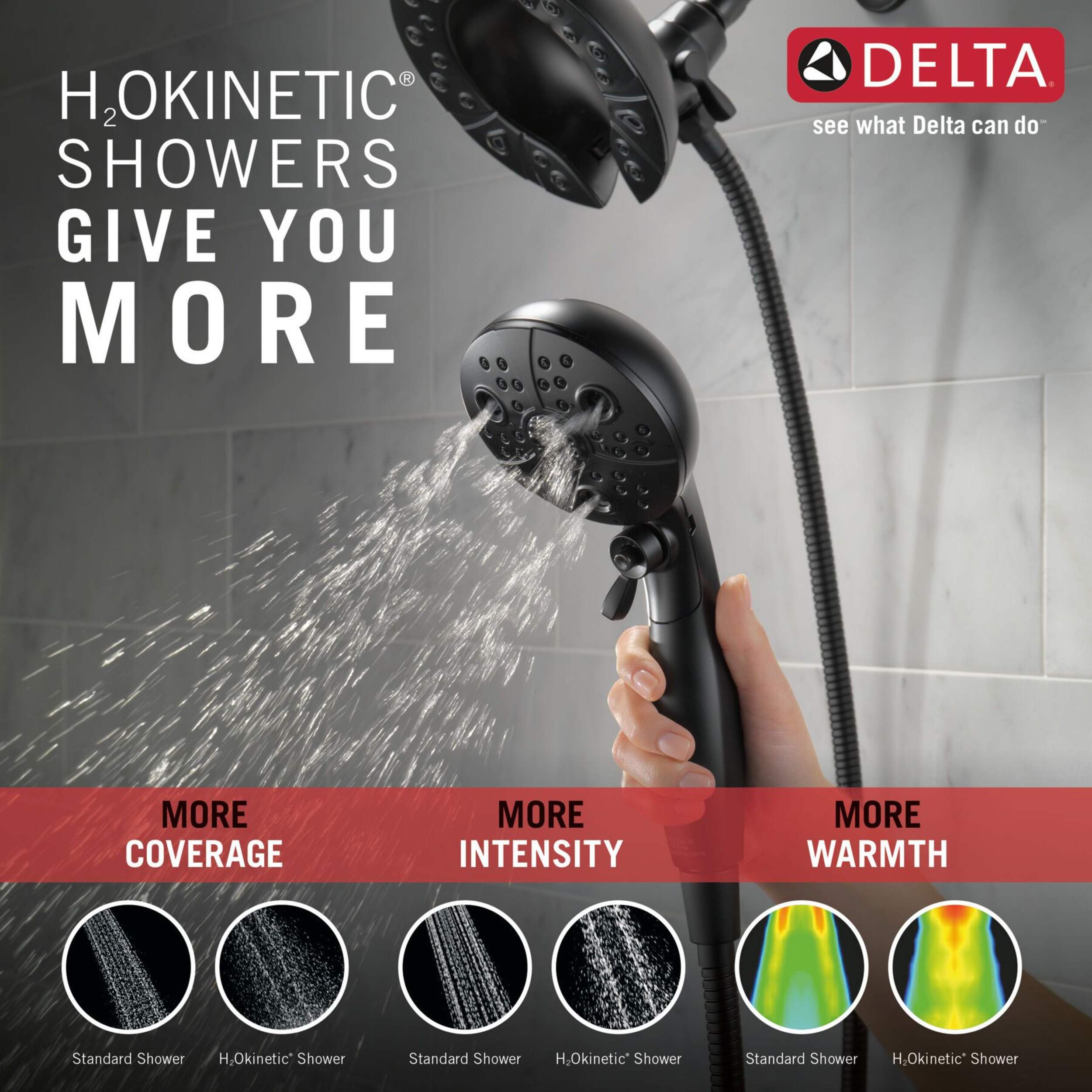 Delta H2Okinetic In2ition 5-Setting Round 2-in-1 Shower Set gets water where you need it most using the integrated shower head and hand shower separately or together